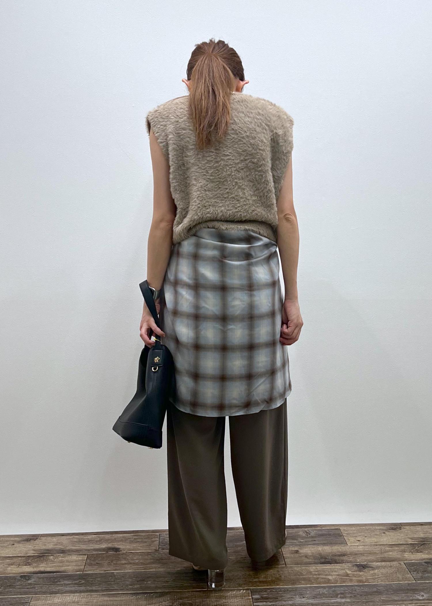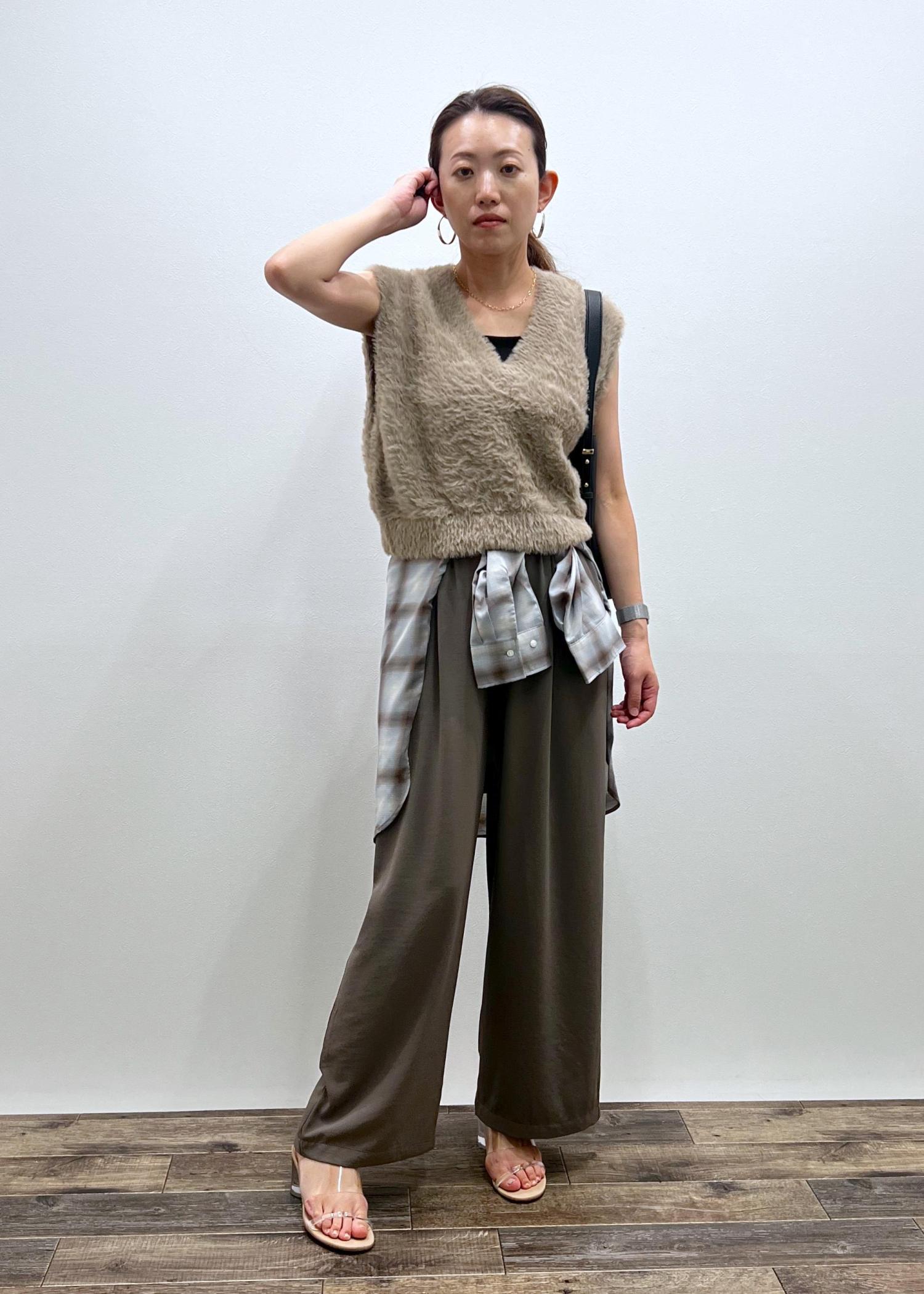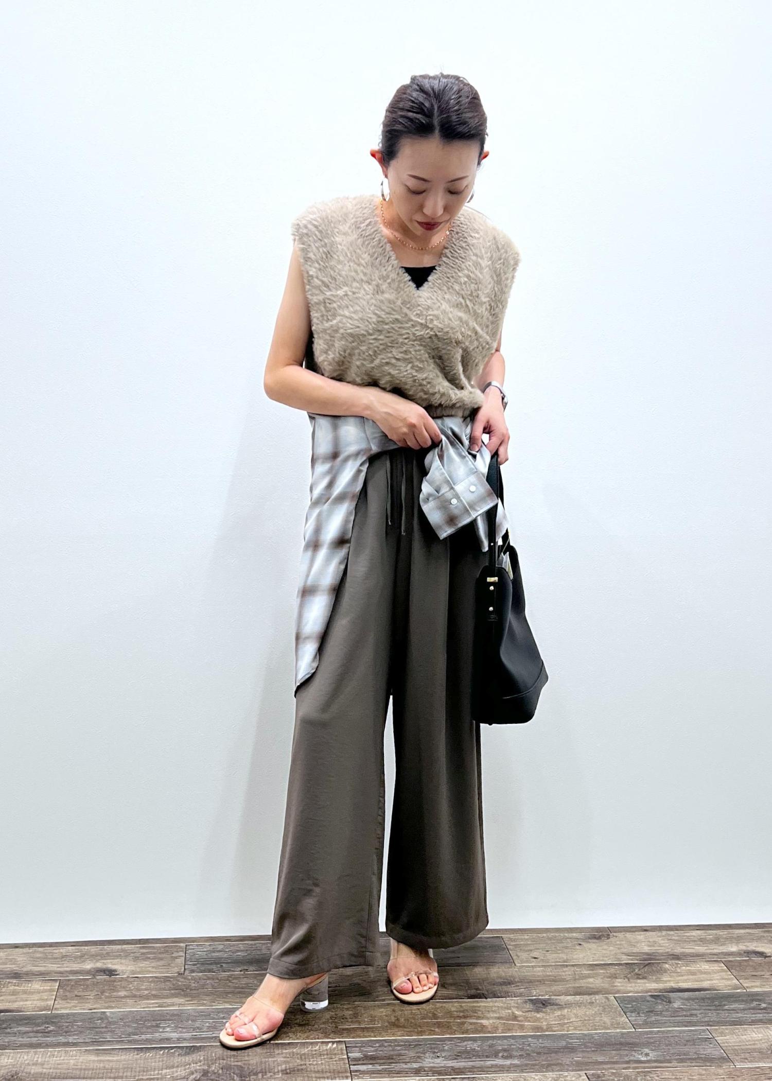 ジョーゼット素材でシワになりにくく季節を問わず履いていただけます。