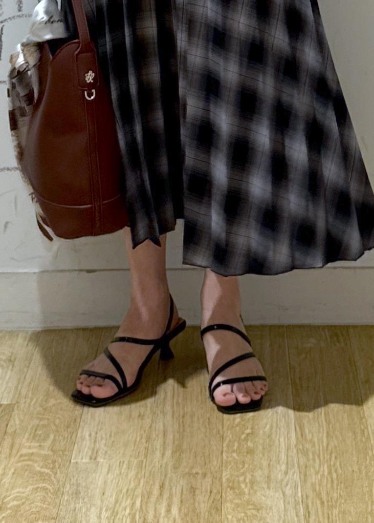 ROPÉ PICNIC PASSAGEナローストラップキトゥンヒールサンダルブラック / L¥5,489レビュー華奢なストラップで女性らしい足元になります。かかと部分のストラップはゴム入りで脱ぎ履きをサポートしてくれます。