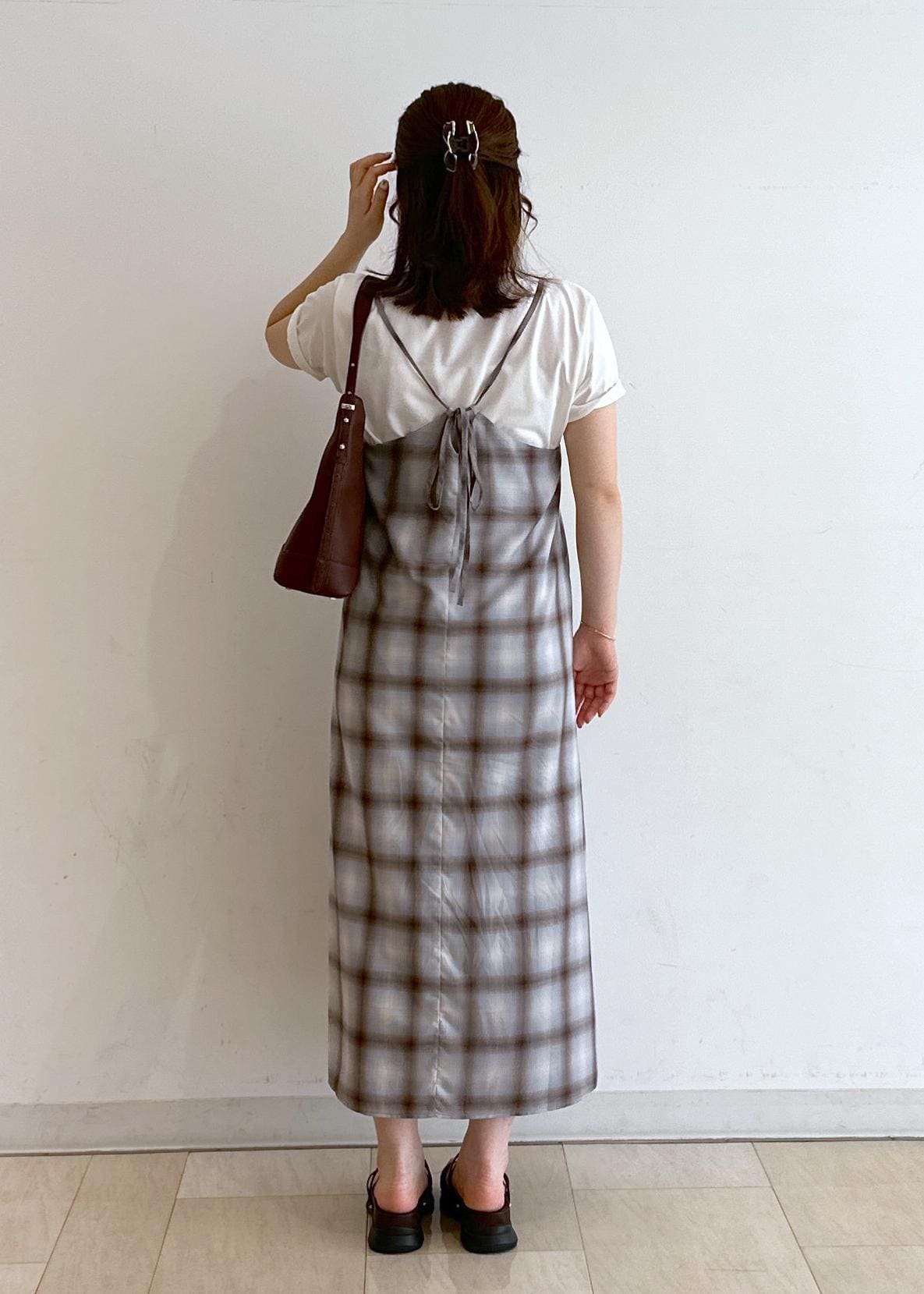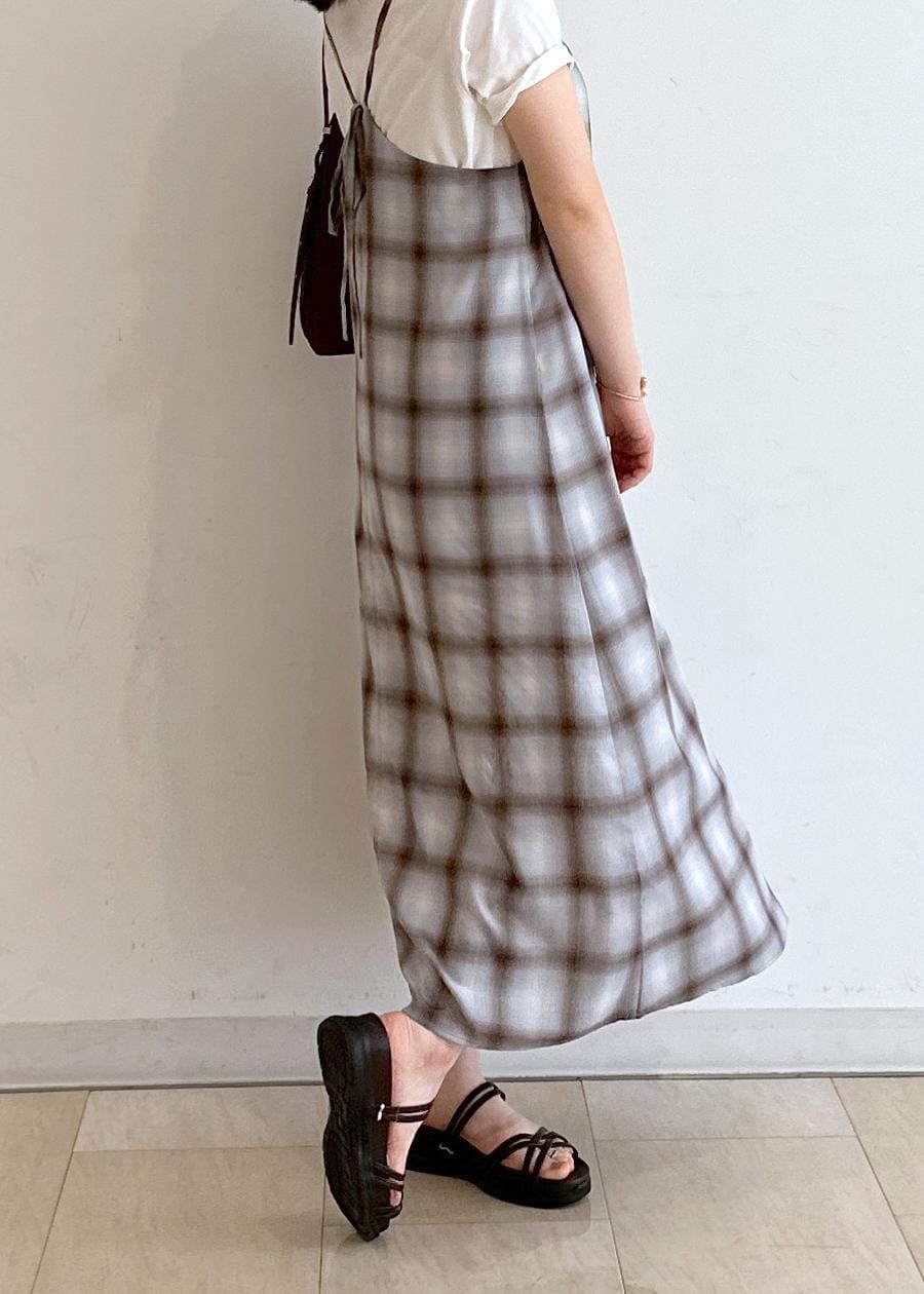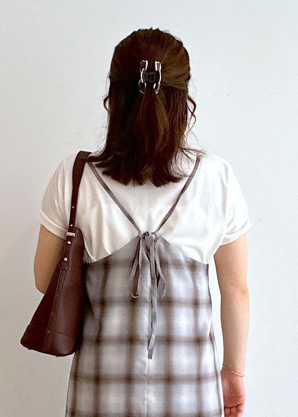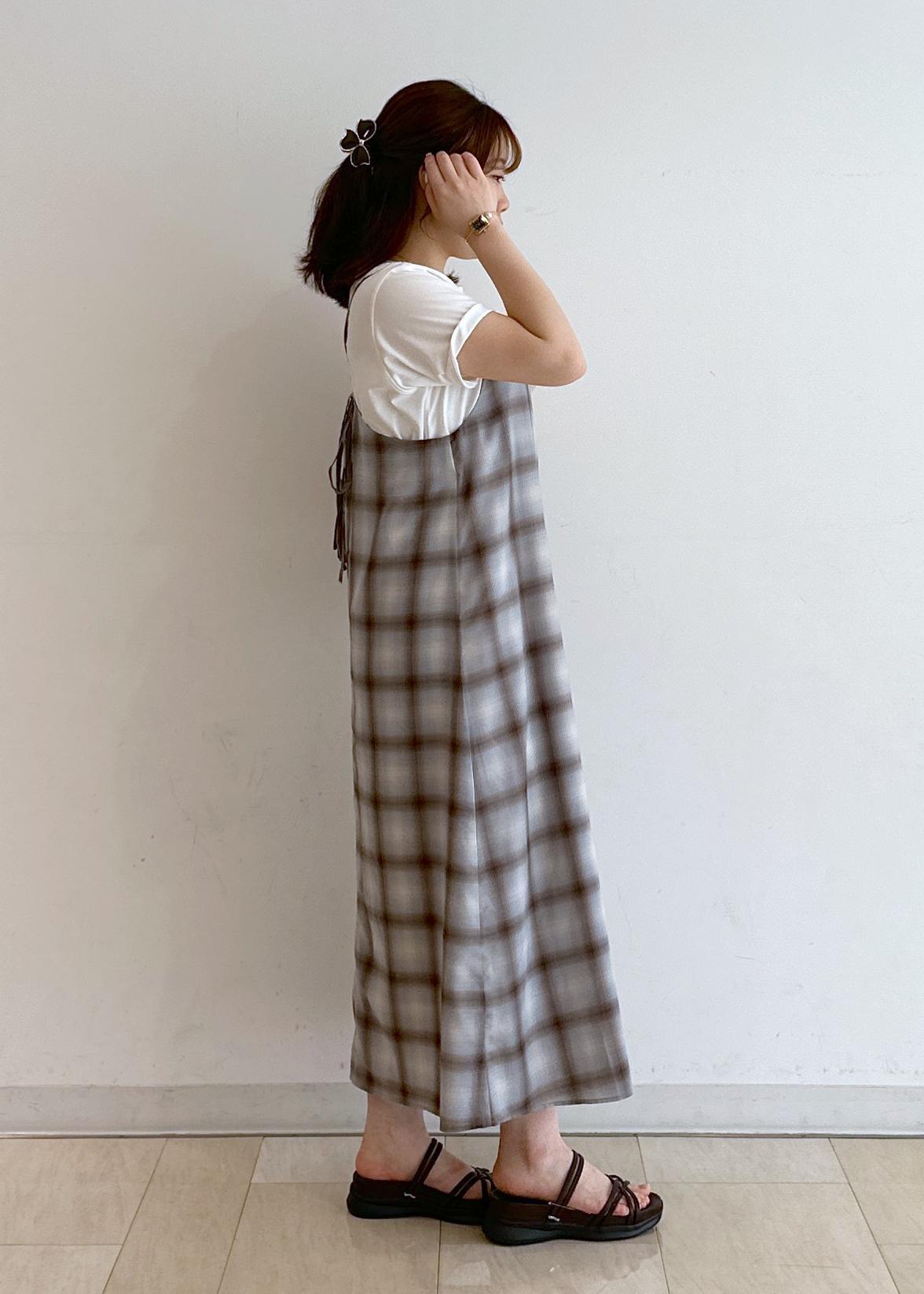 爽やかなキャミワンピースにブラウンのアイテムを組み合わせることで可愛すぎない大人の雰囲気も出してくれます♪