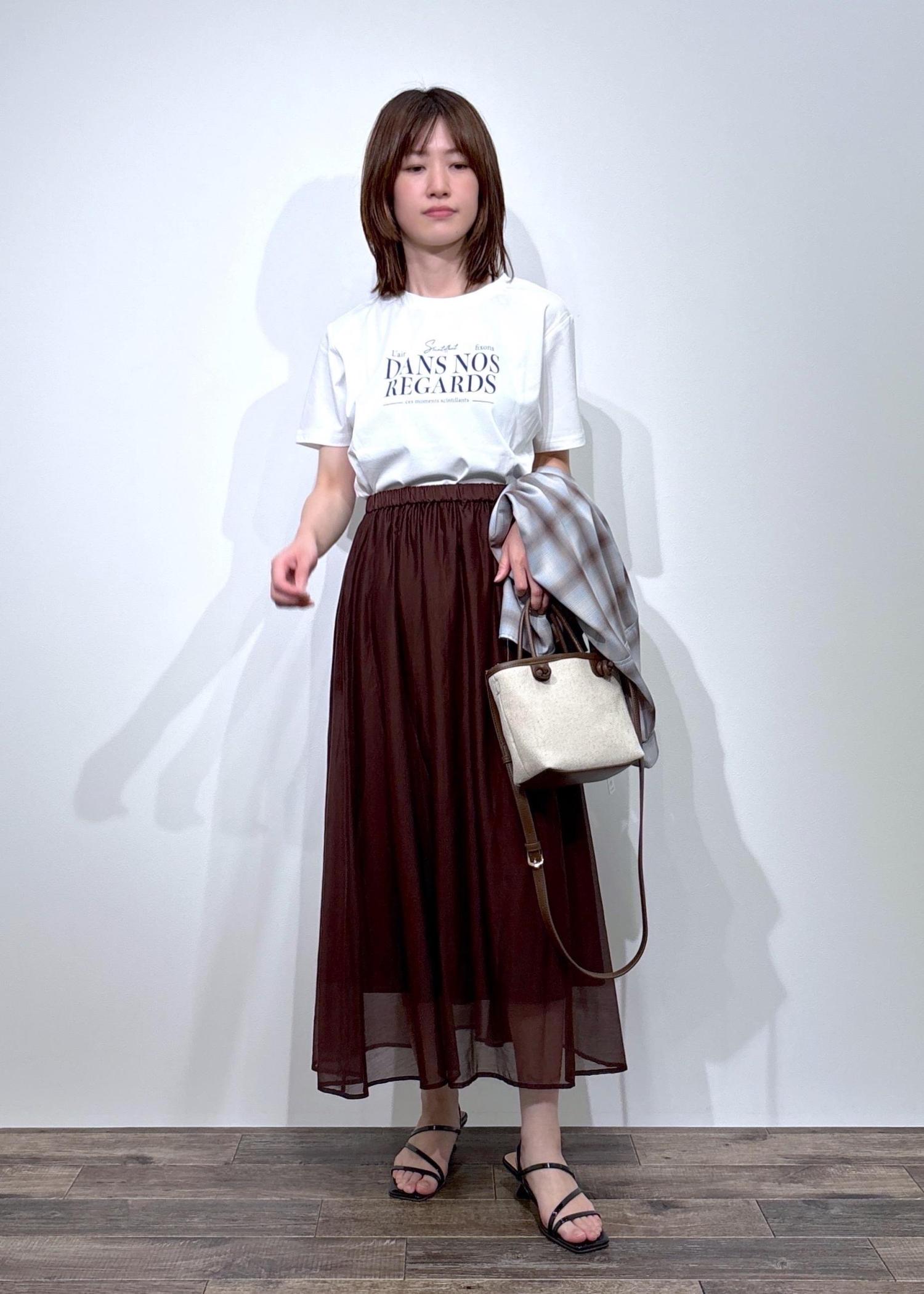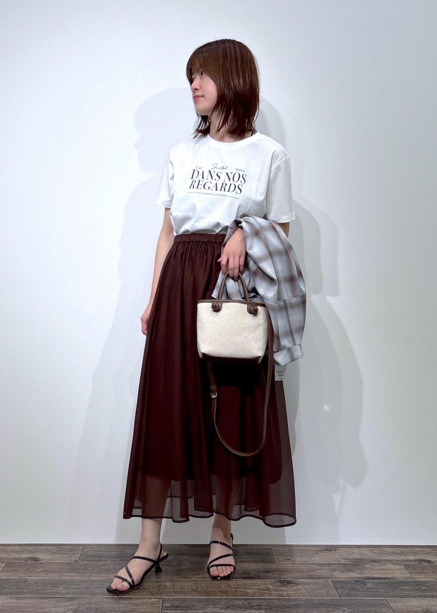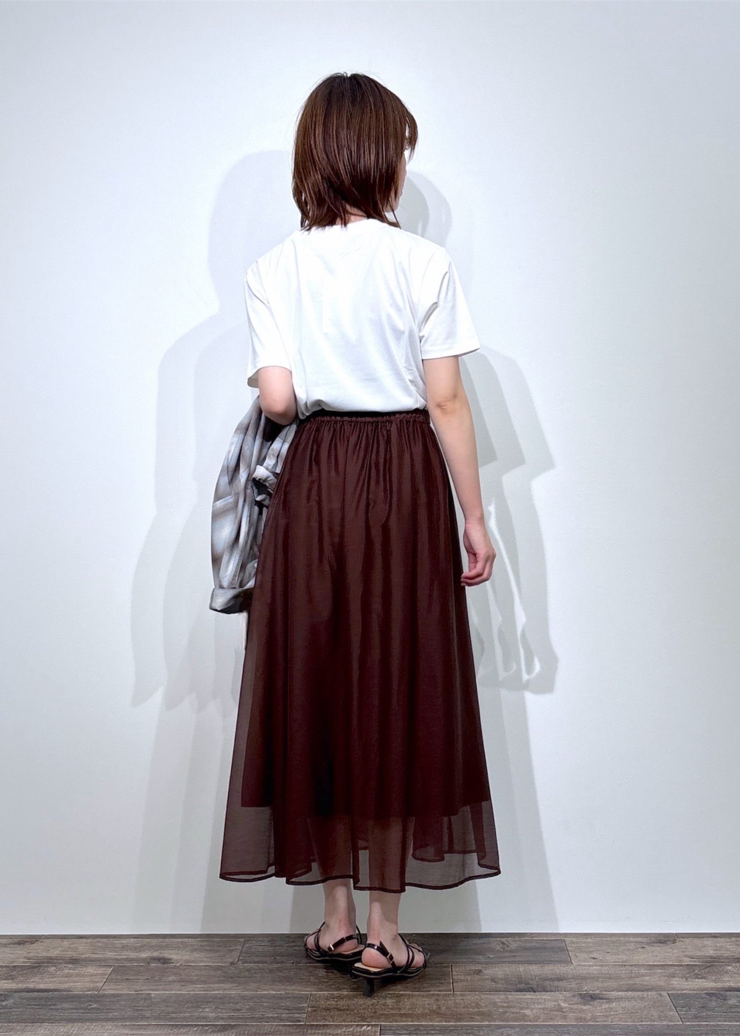 ROPÉ PICNICエアリーシアーギャザーロングスカートダークブラウン / 38¥6,490レビューウエストゴムで楽な履き心地です。ボリューミーになり過ぎず軽い素材感で、丈はくるぶしが見える長さでした。