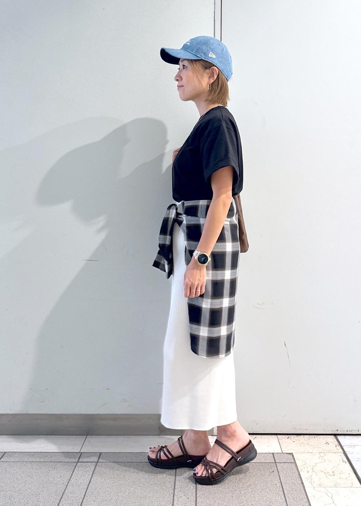着丈は足首が見える長さで、低身長さんに嬉しスッキリとしたデザインです。