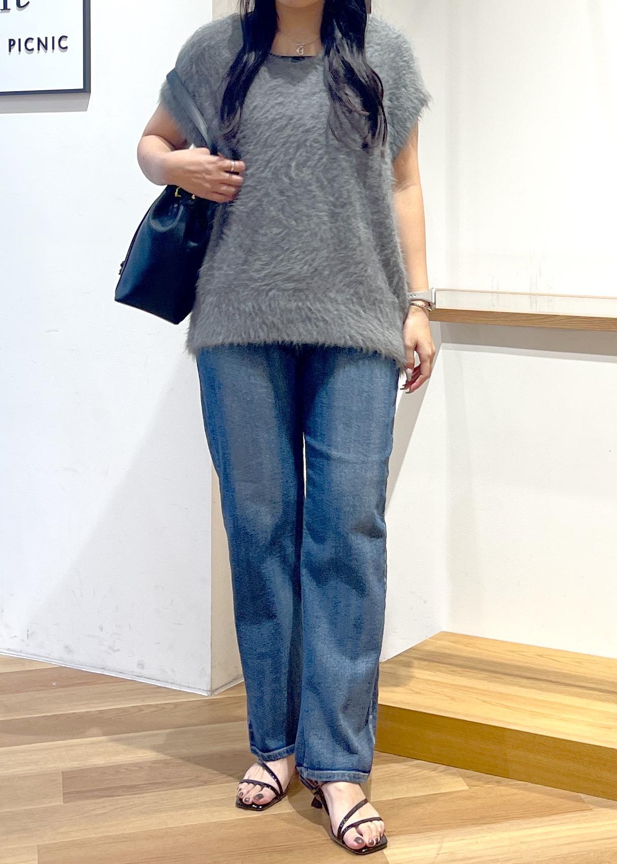 肌あたりの柔らかい毛足長めのフェザーニットなのでチクチク感なく着用できます◎