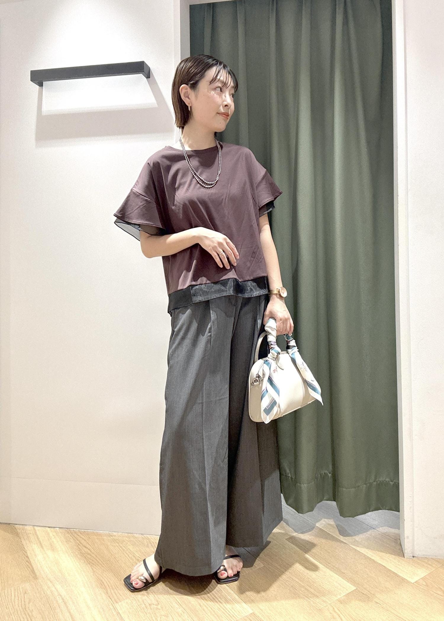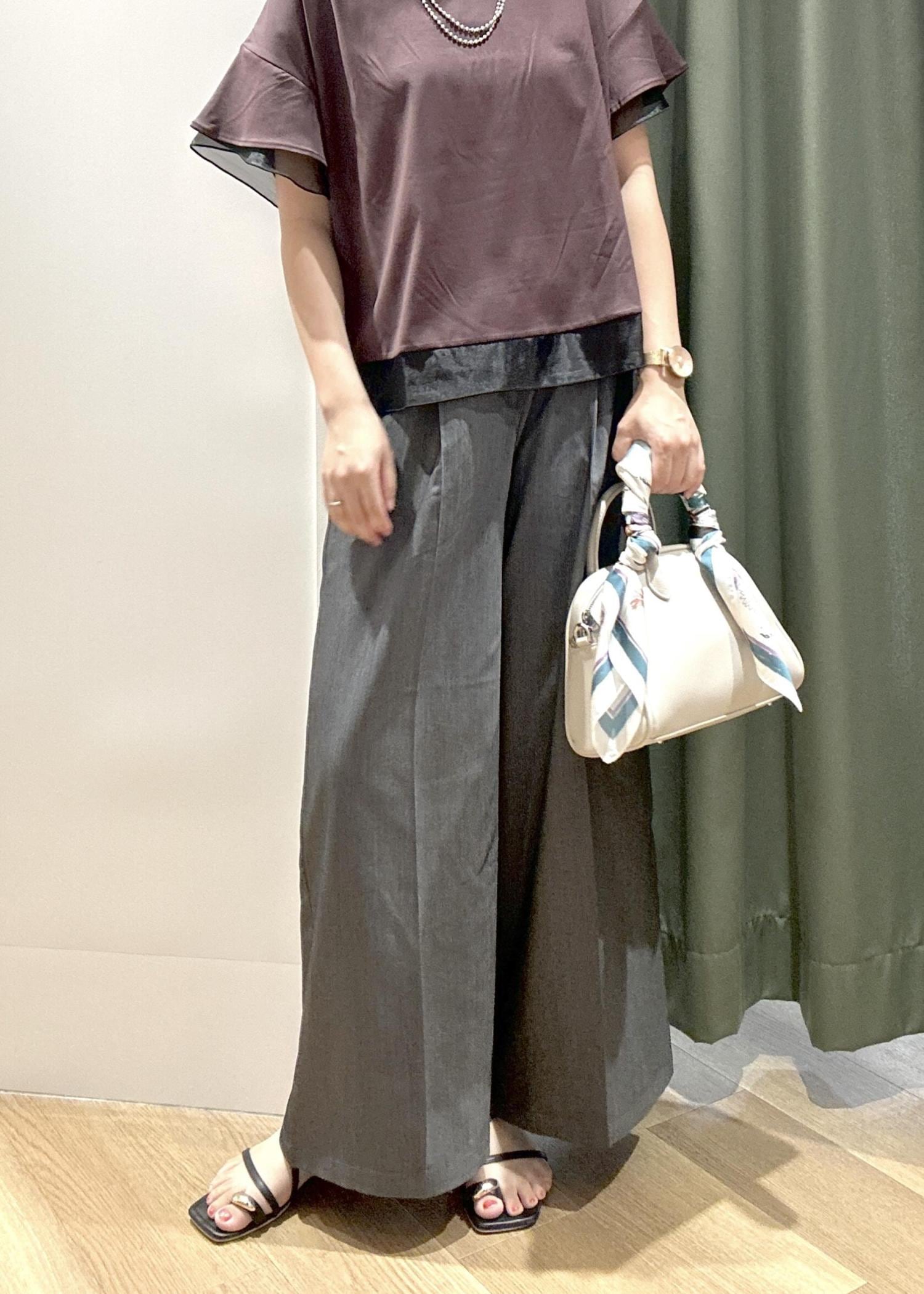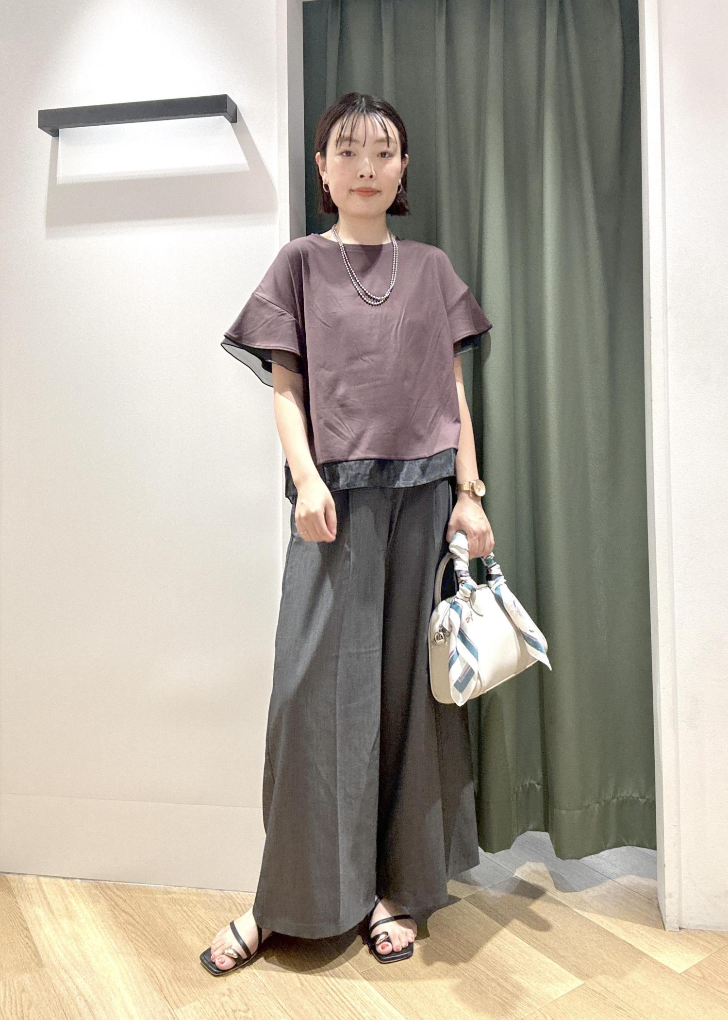レイヤードデザインのトップスと、スカーフがアクセントになります♪