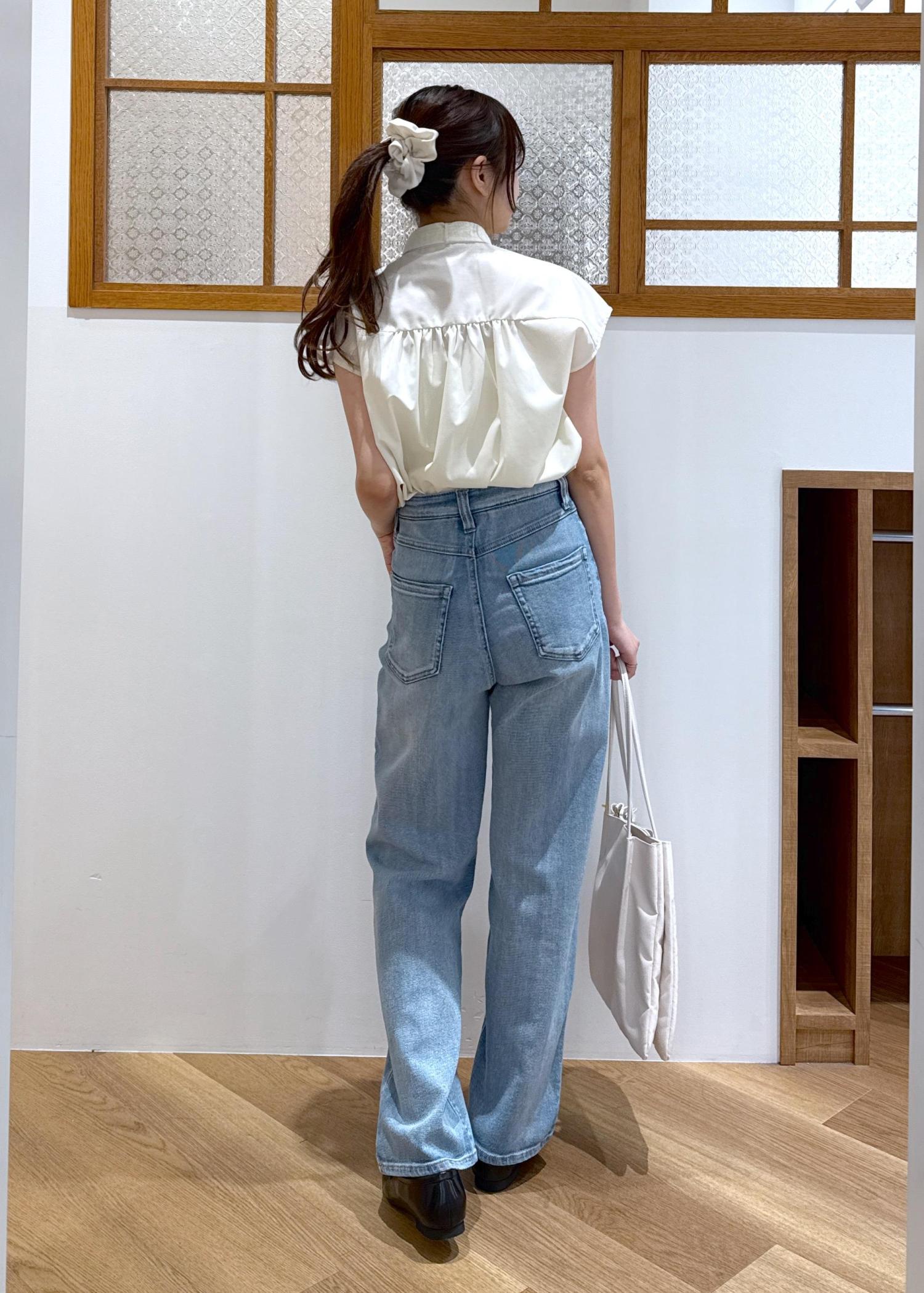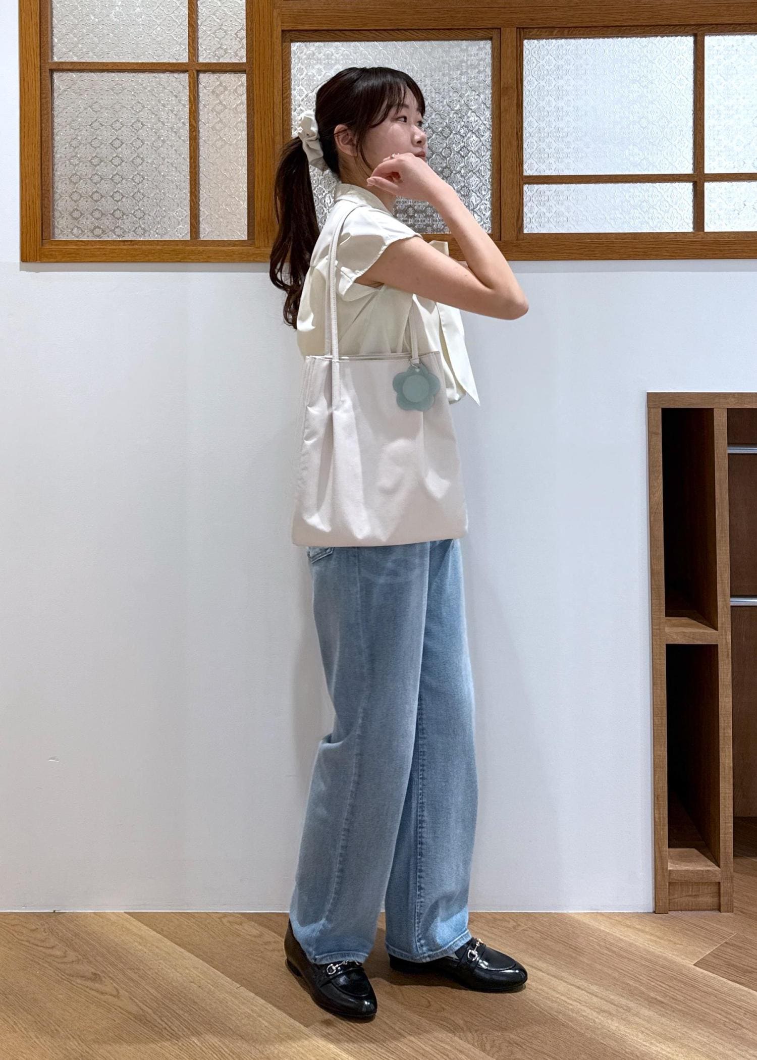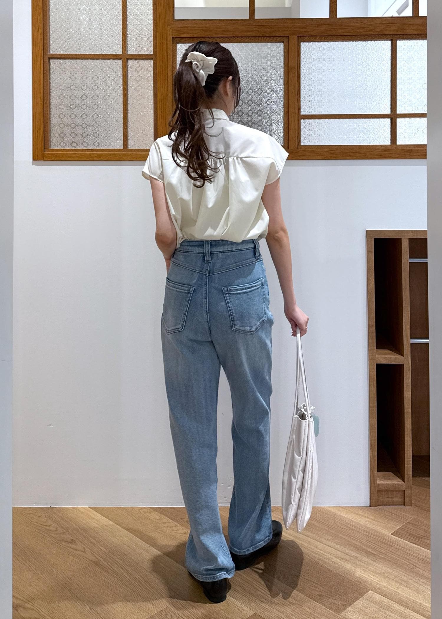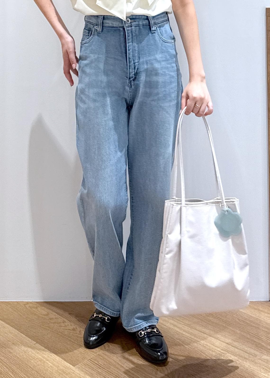 脚のラインを拾わないシルエットですが、ワイドすぎない裾の形なので細見えします。