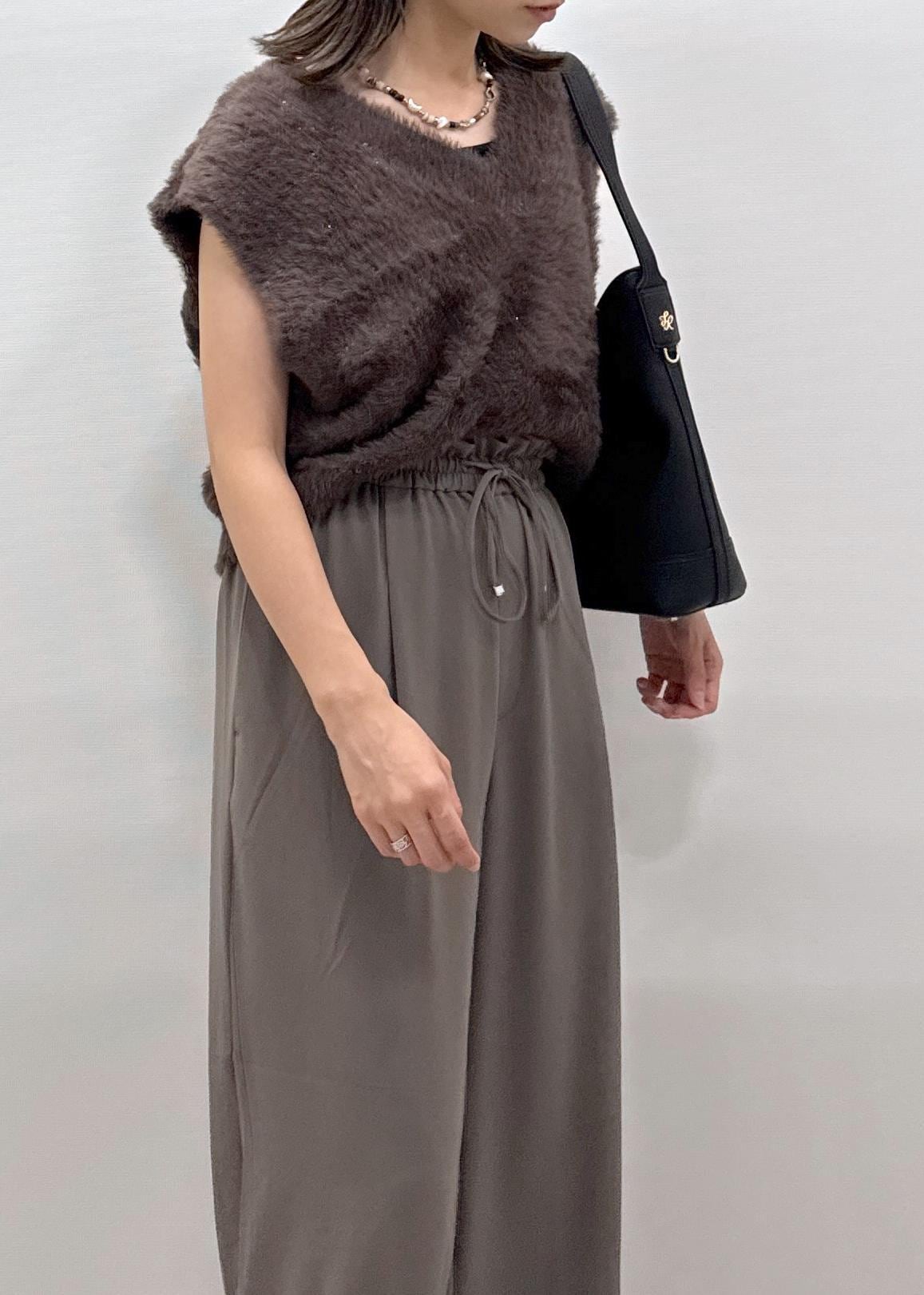 フェザー素材とカラーで秋を先取りしたコーデ☺︎