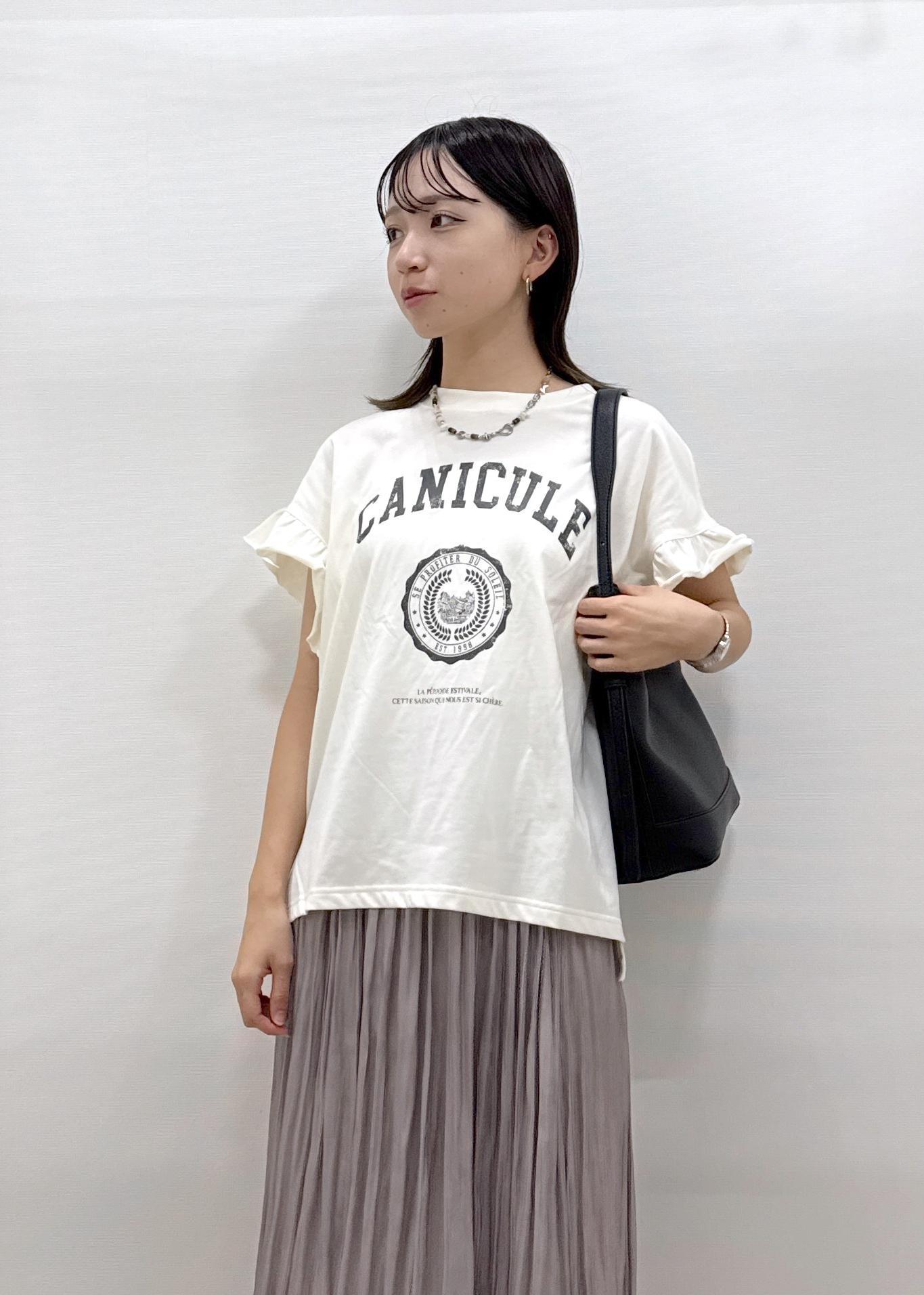 袖フリルカレッジロゴTシャツ