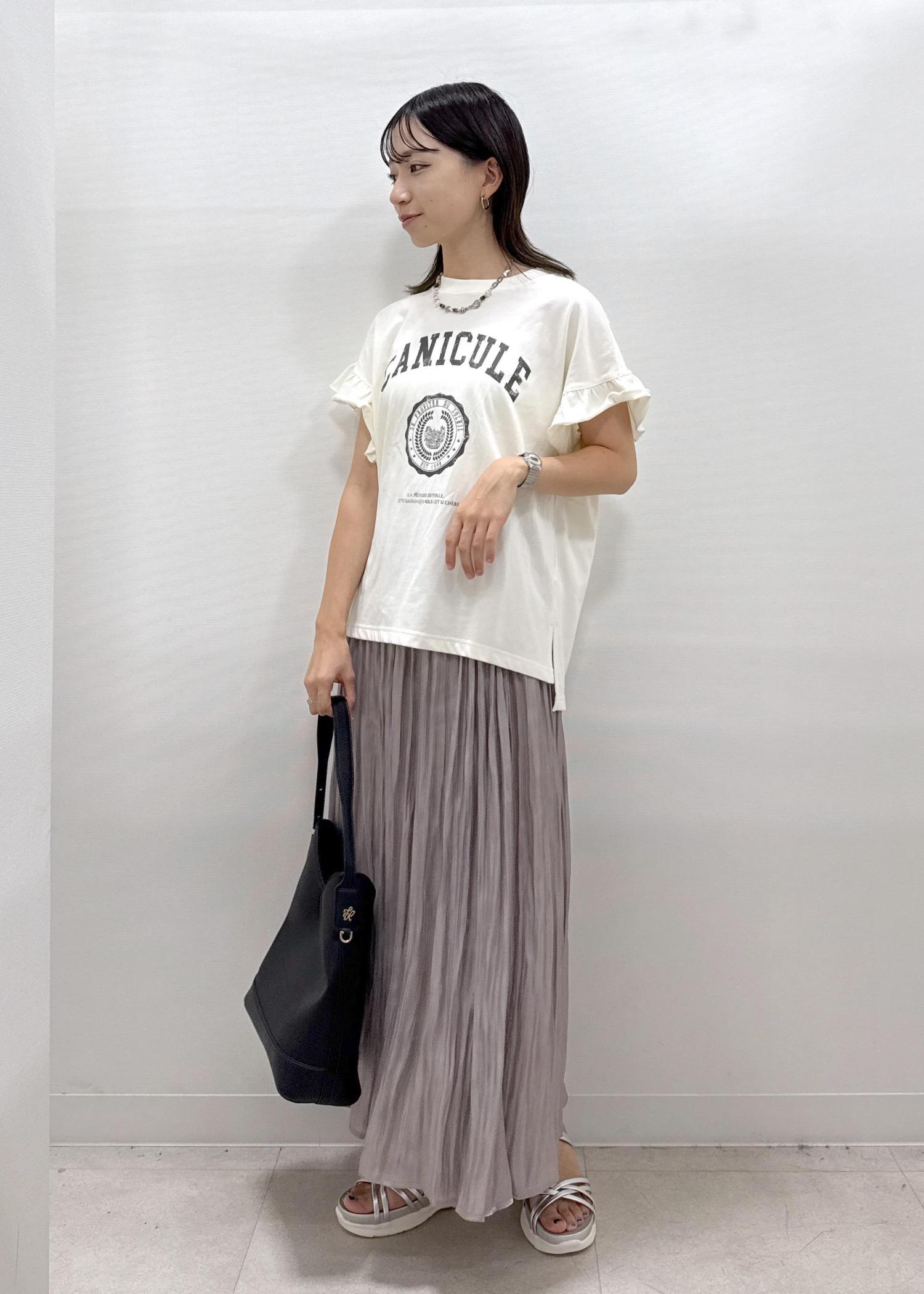 カジュアルな印象のTシャツにスカートを合わせたレディライクコーデ☺︎