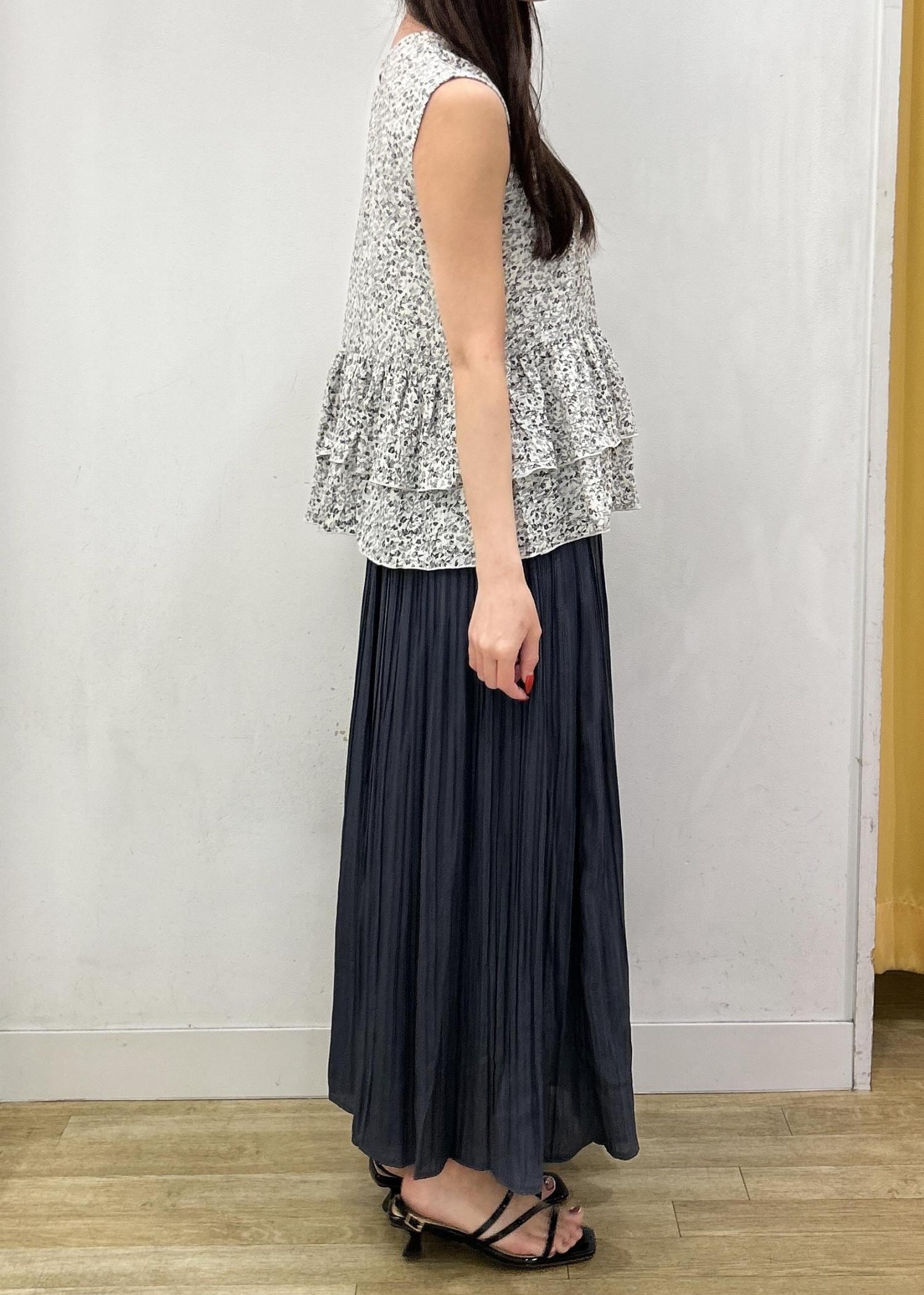 ゼロスリーブがスッキリ見えでペプラムデザインが綺麗なシルエット。