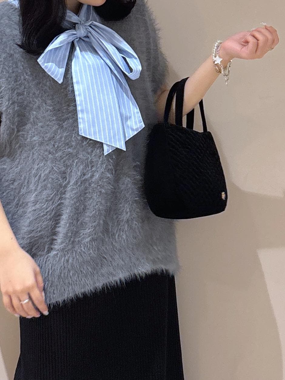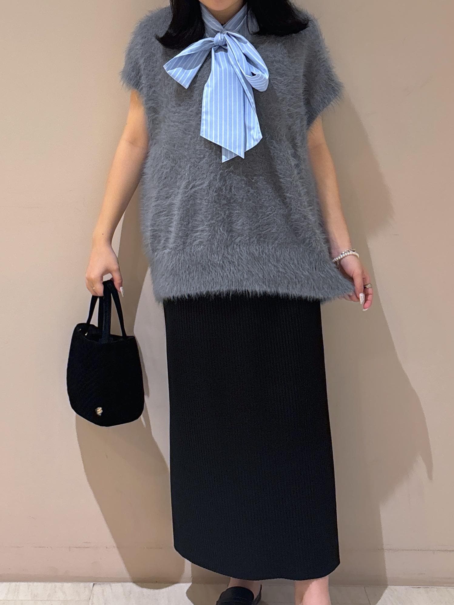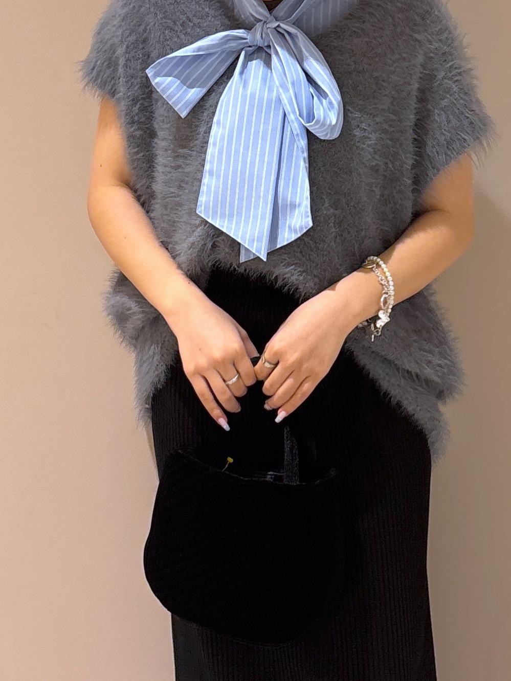 リボンがアクセントなブラウスに、秋らしいファーベストを