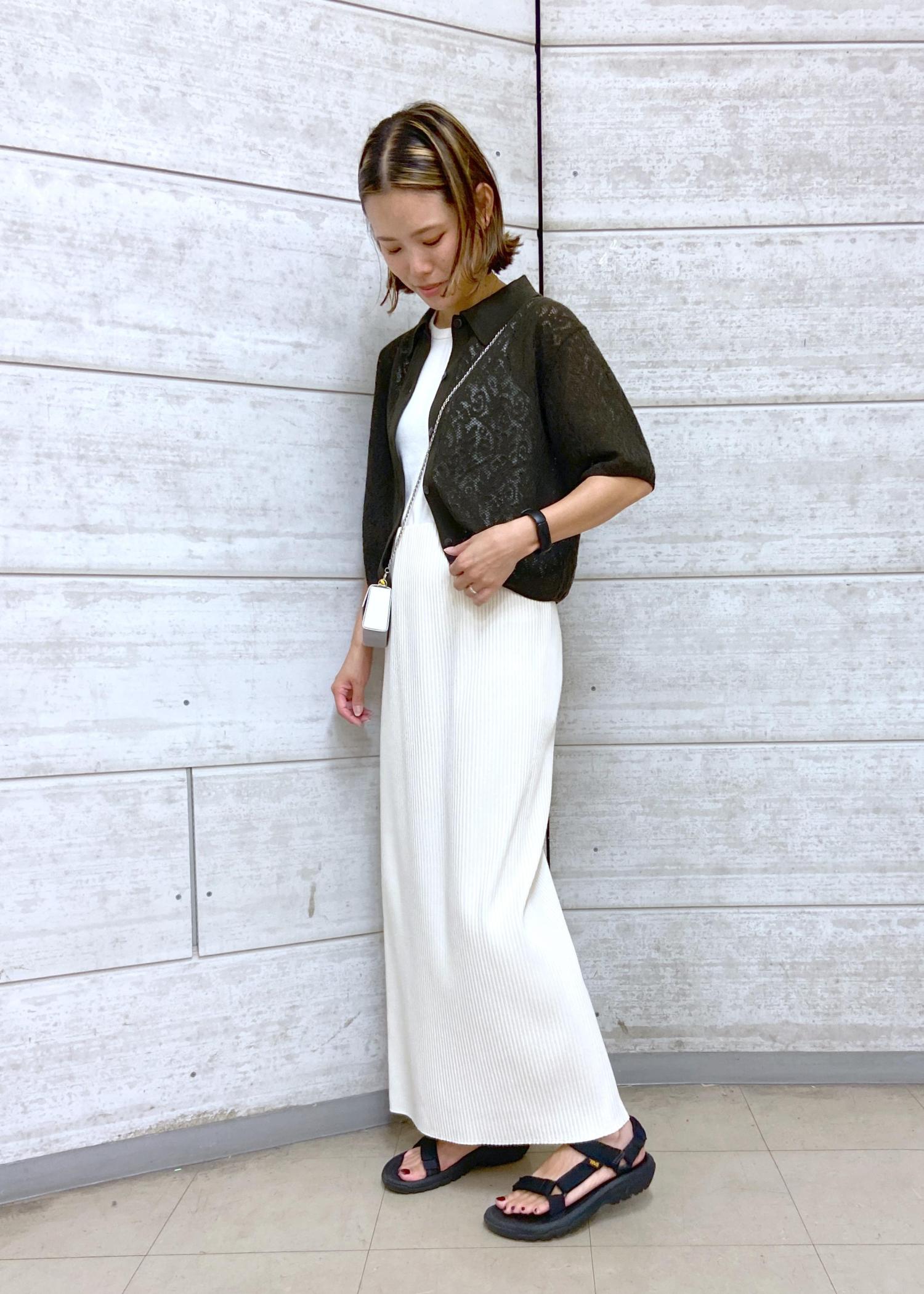 カジュアルだと、オーバーサイズのジャケットやTシャツと合わせるのがオススメです! -