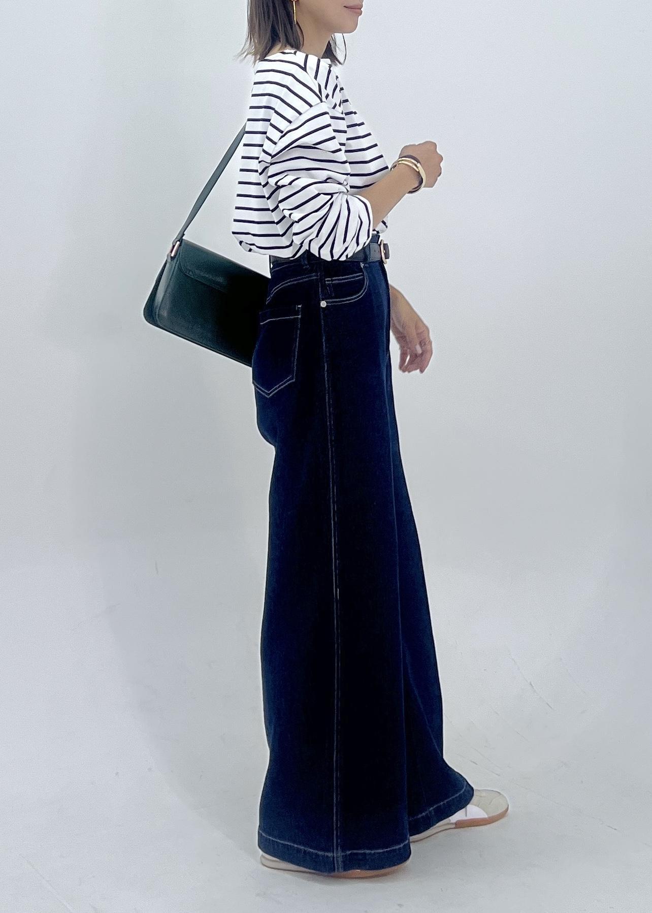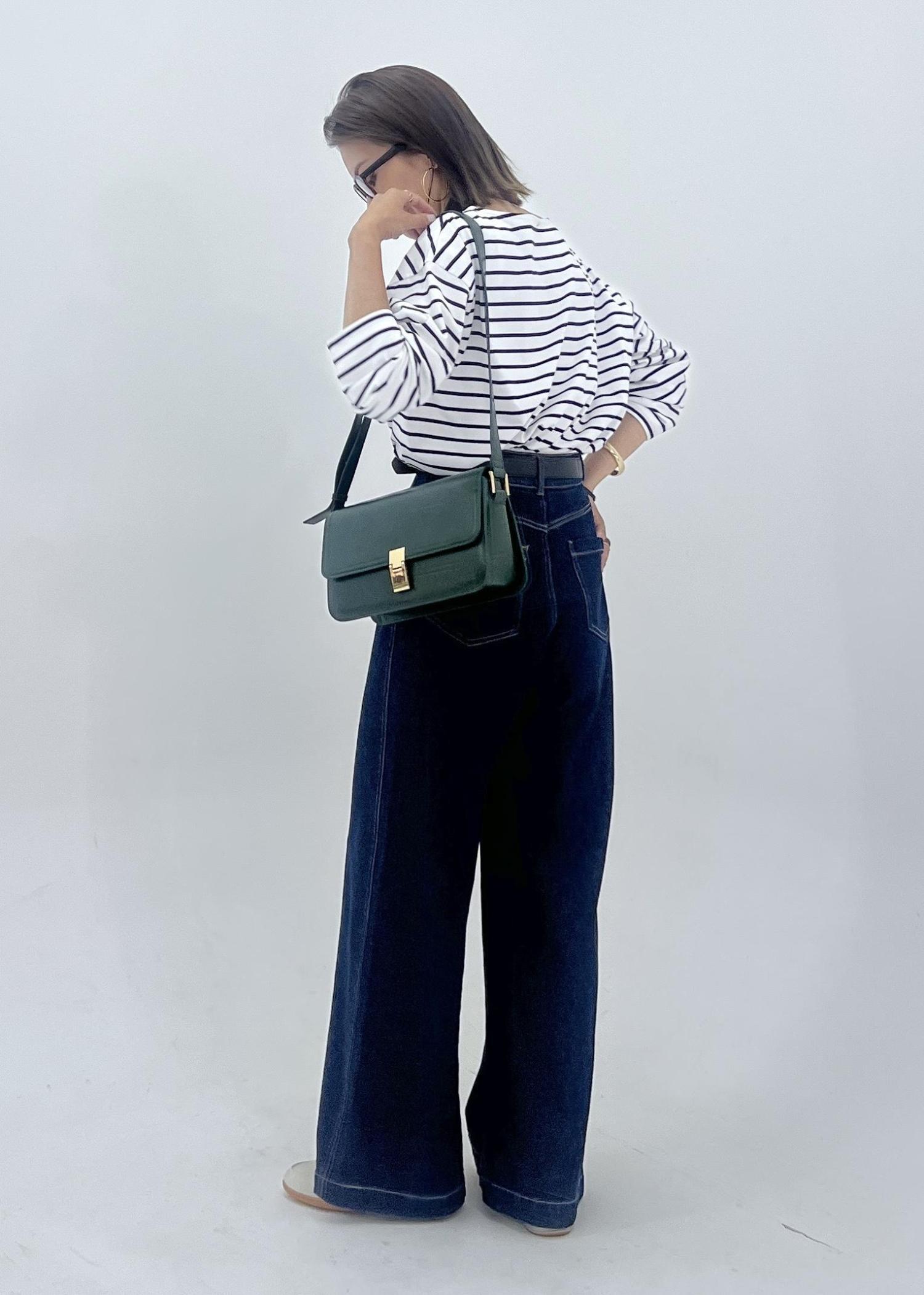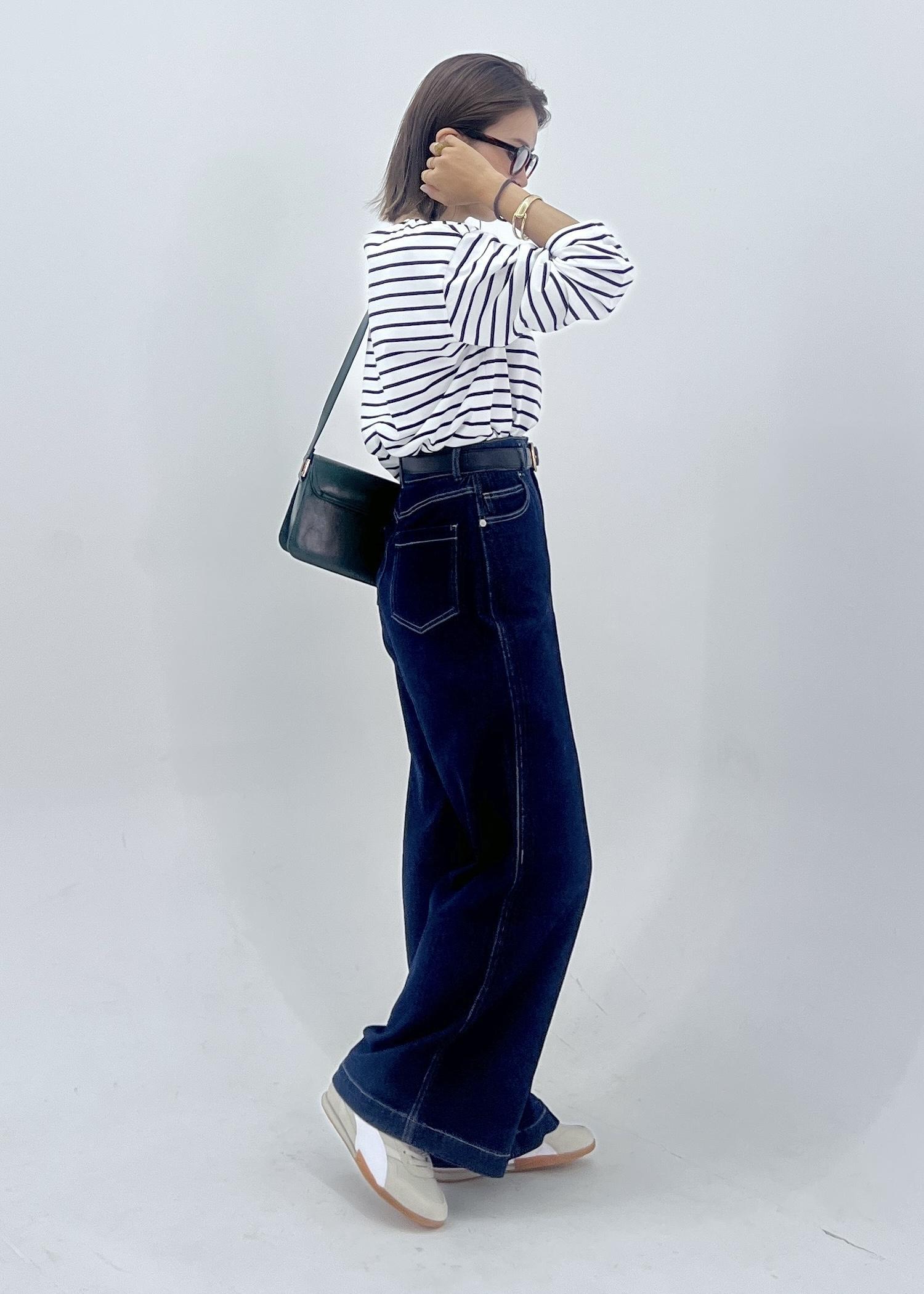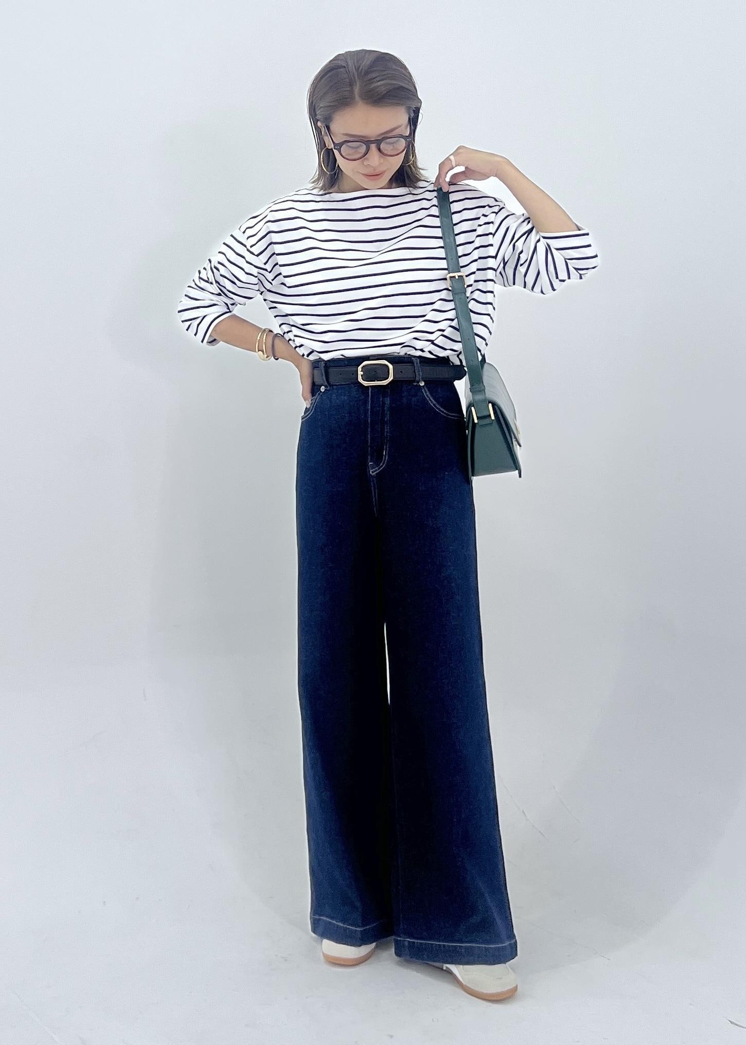 ワイドパンツにウエストインして、スッキリ感のあるスタイリングにしました。