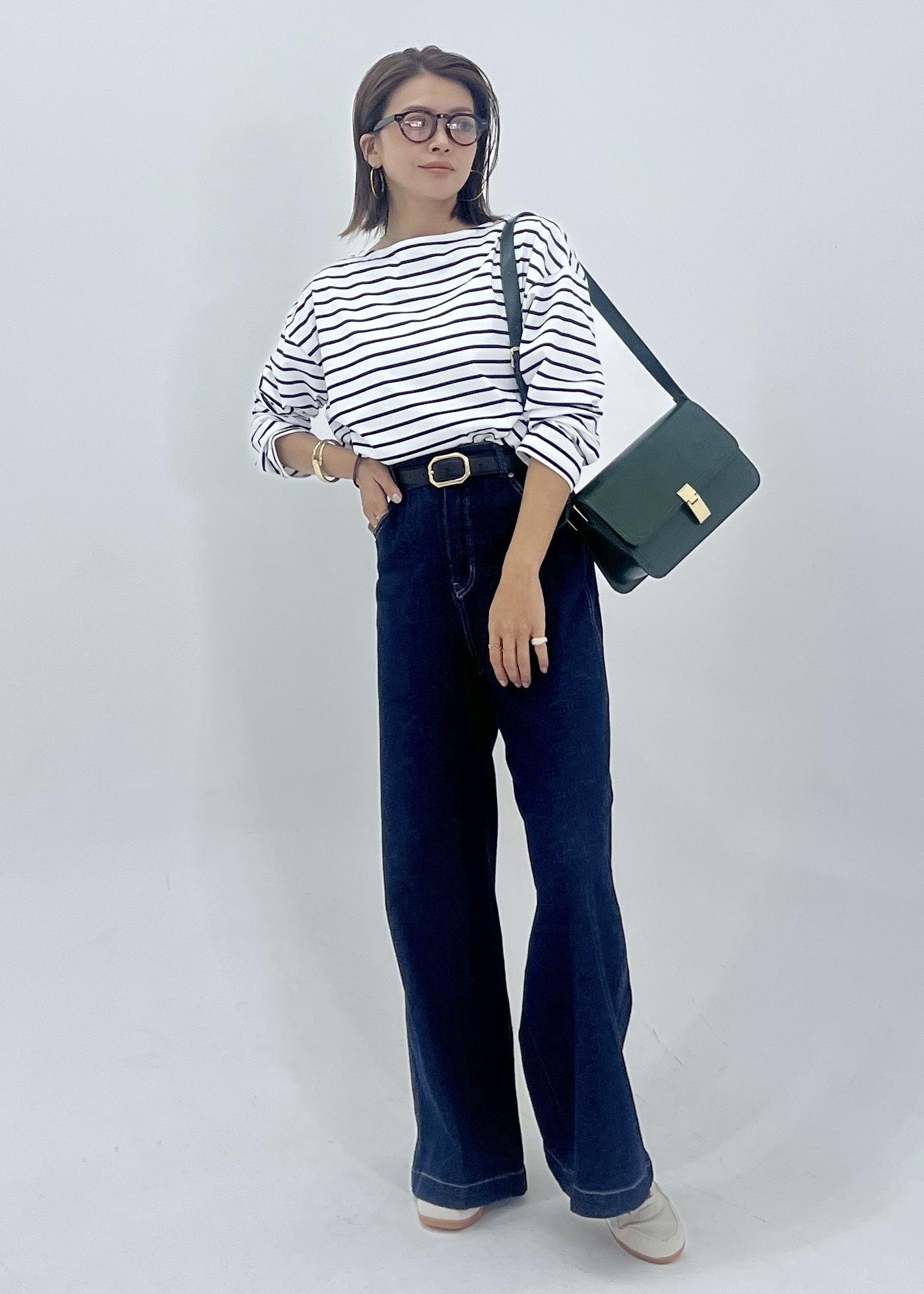 定番のボーダートップスは、1枚あると季節の変わり目に着回しできて便利なアイテム。