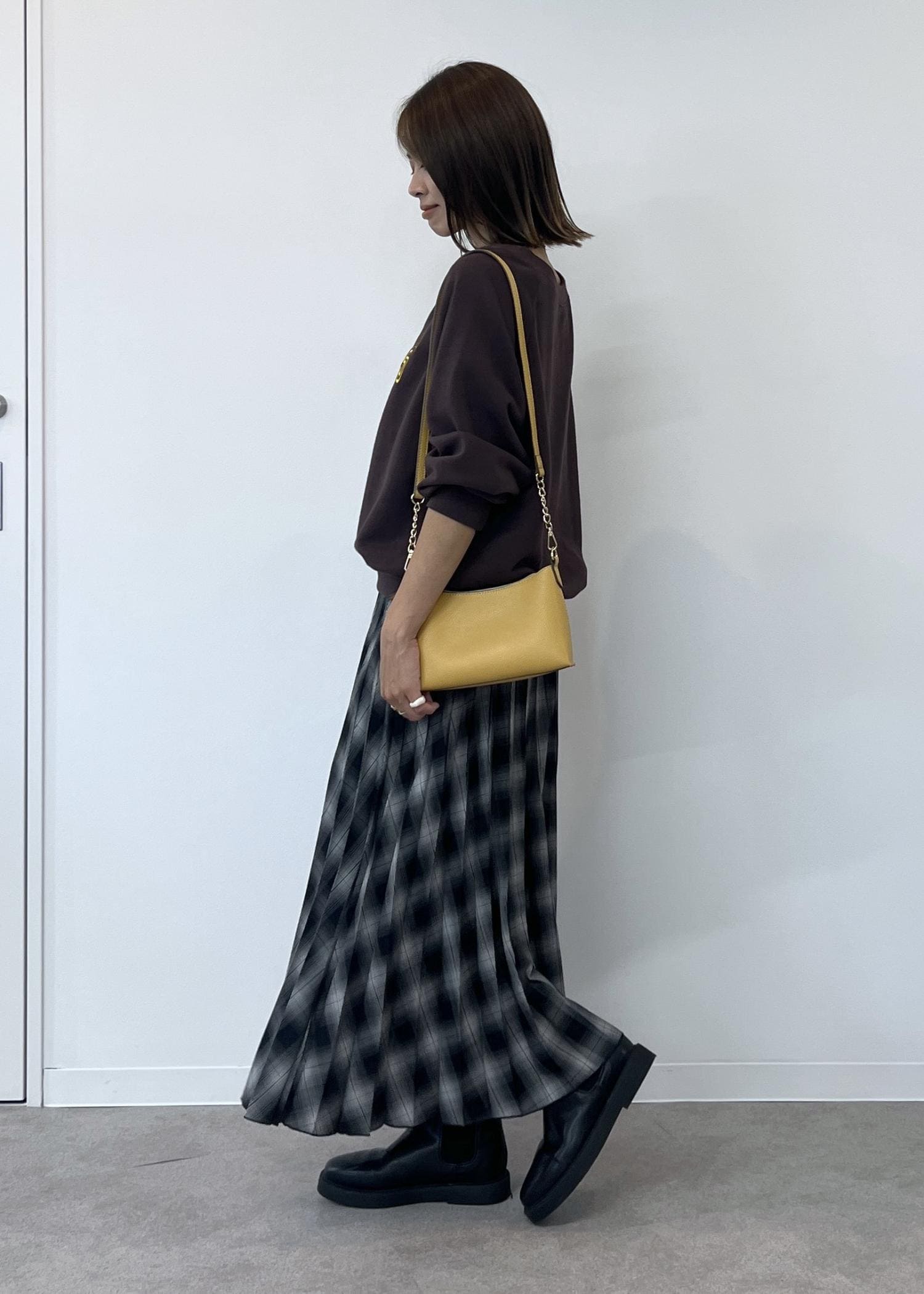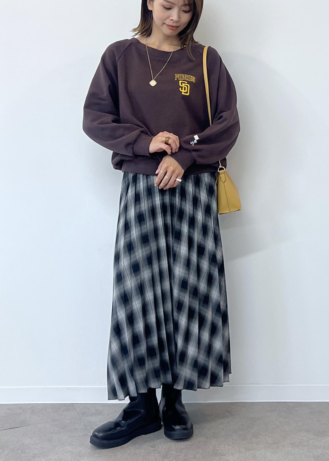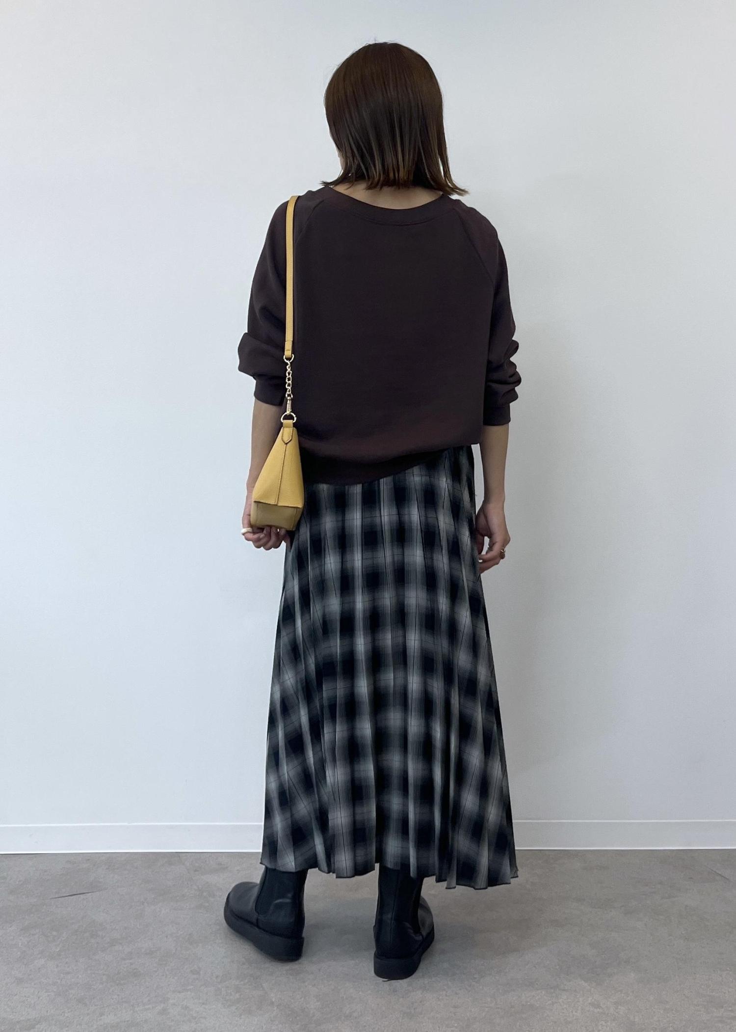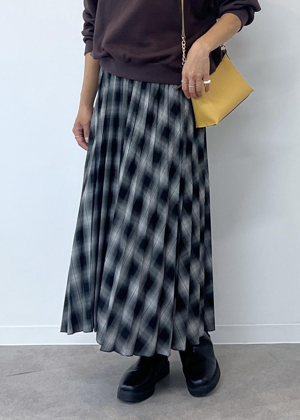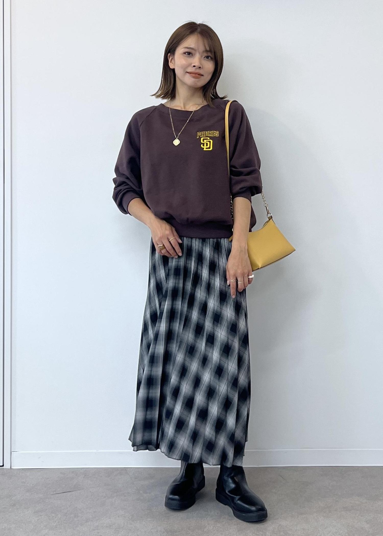 チェック柄のスカートでカジュアルでも女性らしさのあるスタイリングにしました。