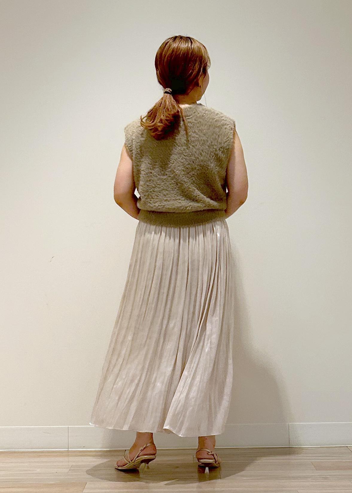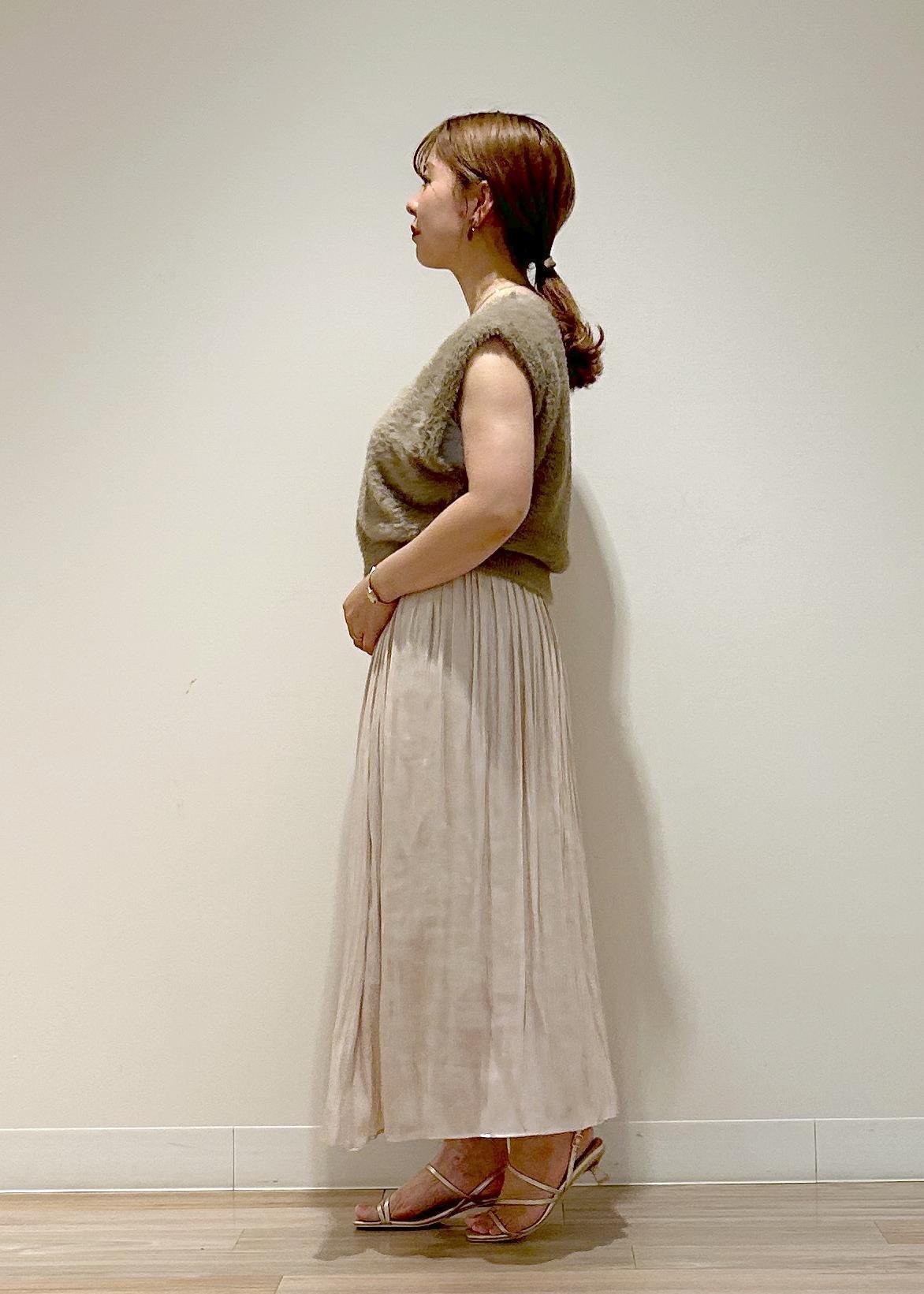 まだまだ暑いですが、新作のフェザーニットベストを使って、今の時期から着れるサマーコーデを組んでみました。