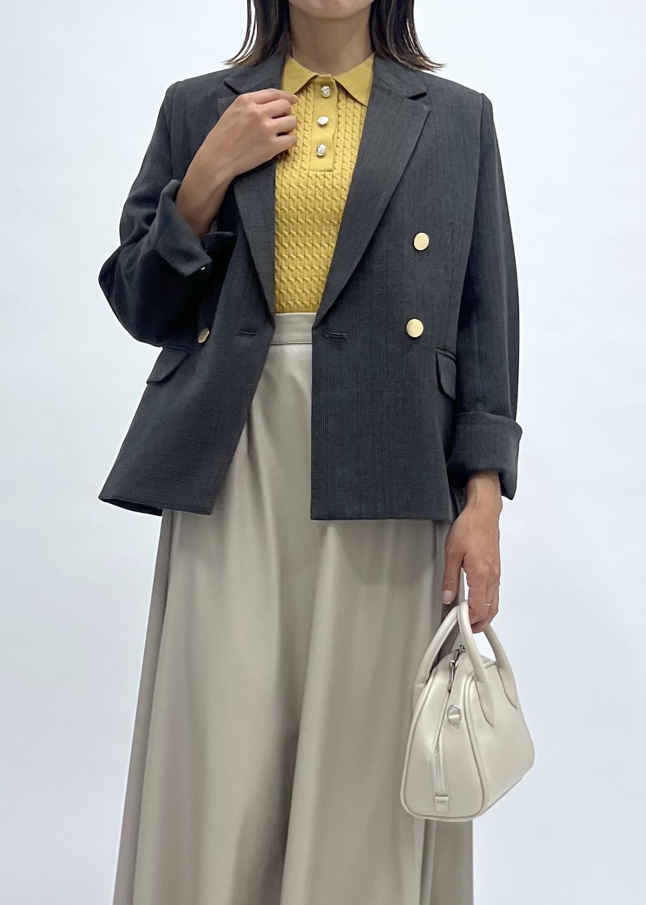 オンオフ両方で着回しできるジャケットは、細かいチェック柄で秋冬らしい装いに。