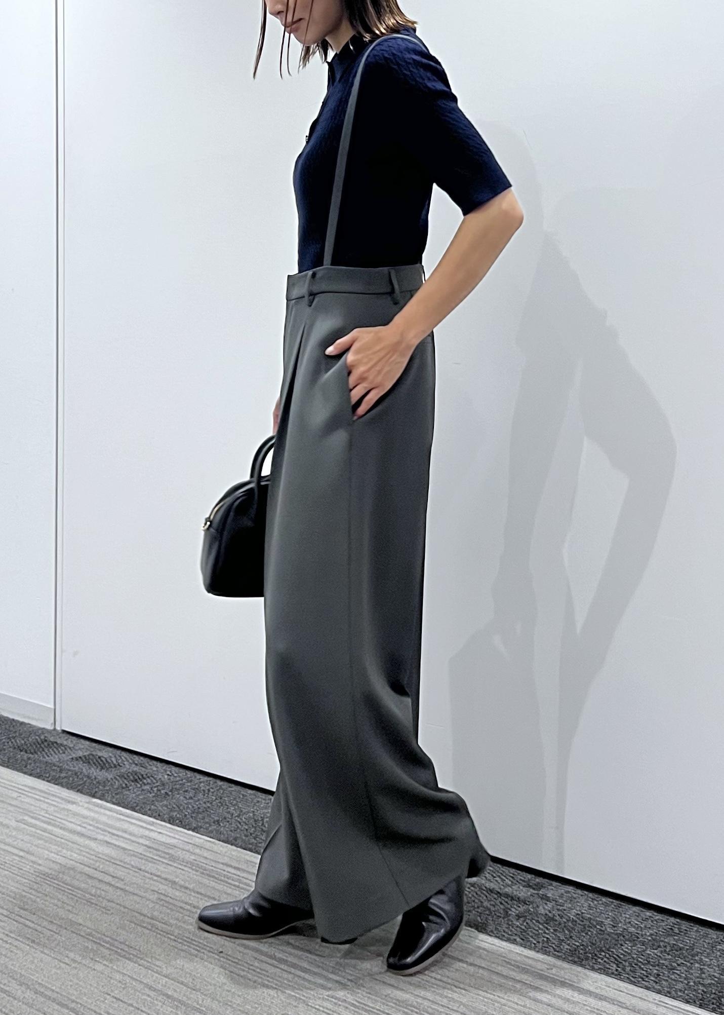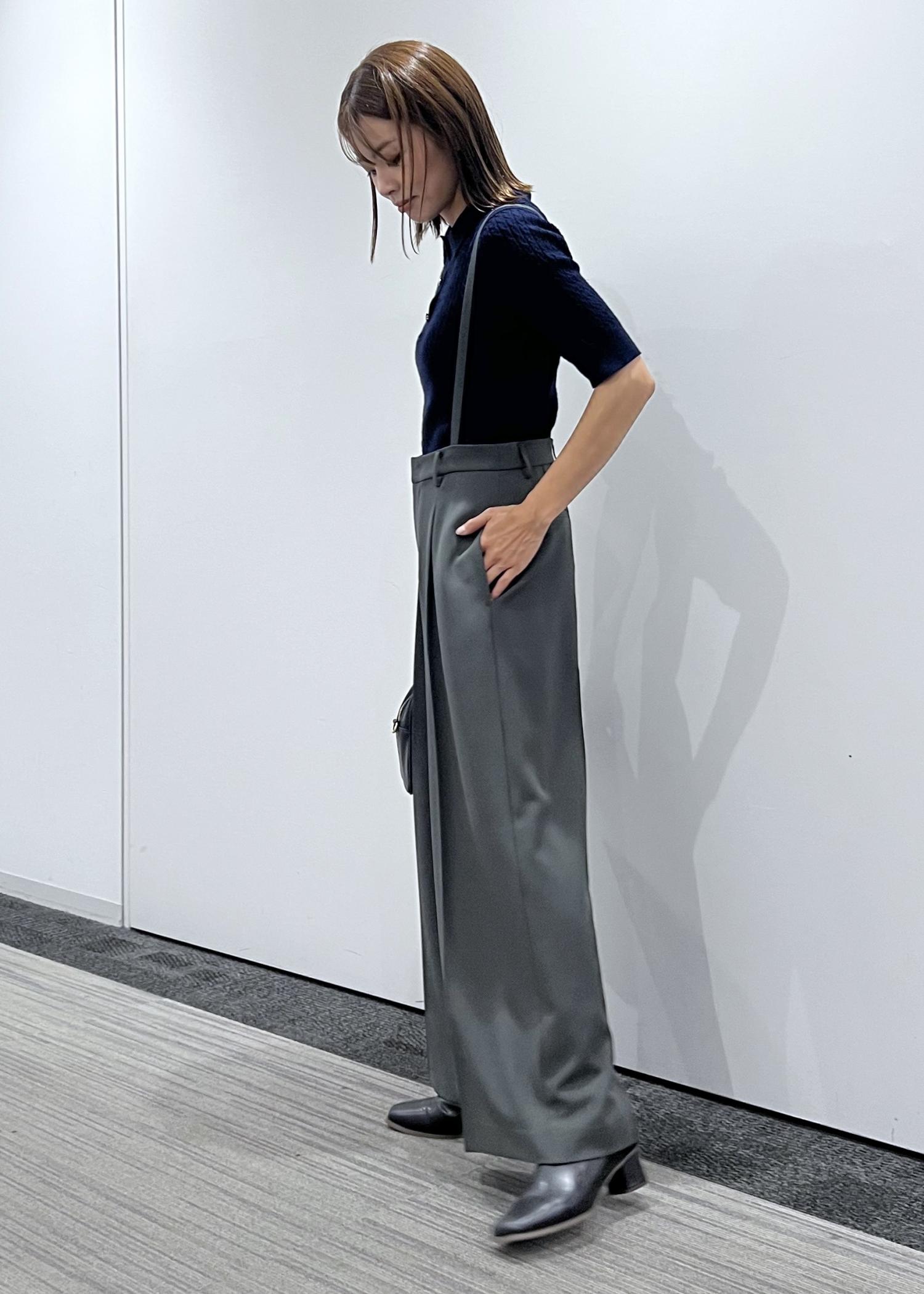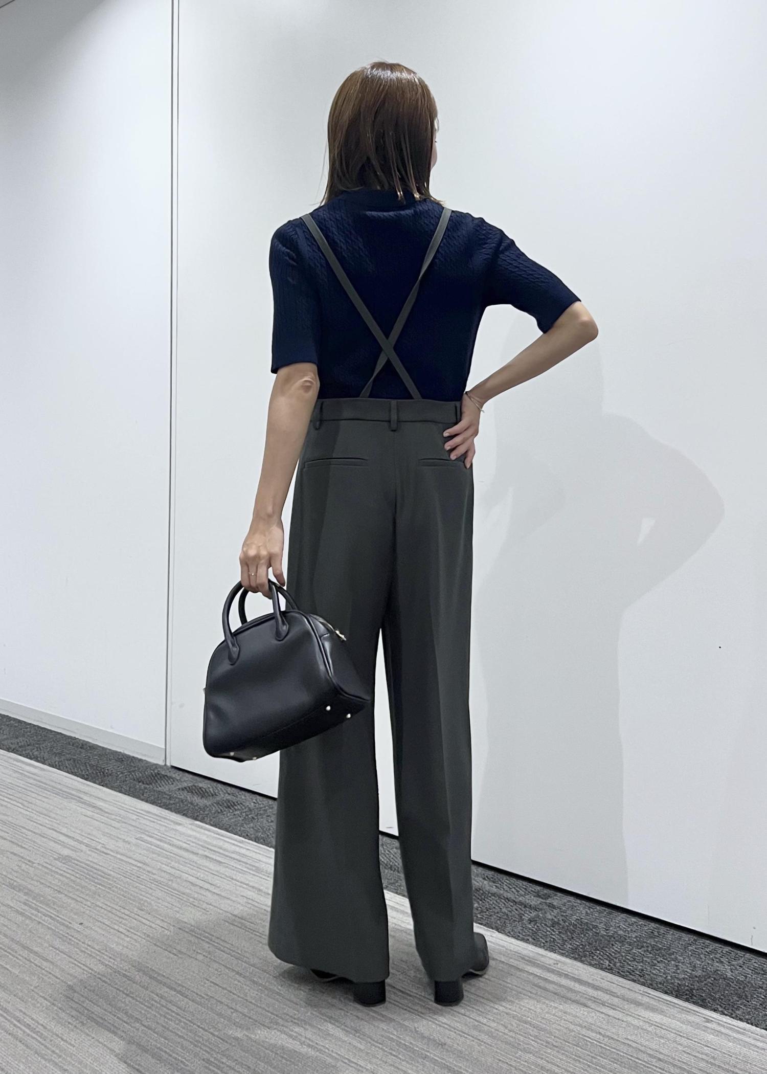 サスペンダー付きのワイドパンツを合わせて、きれいめカジュアルなスタイリングにしました。