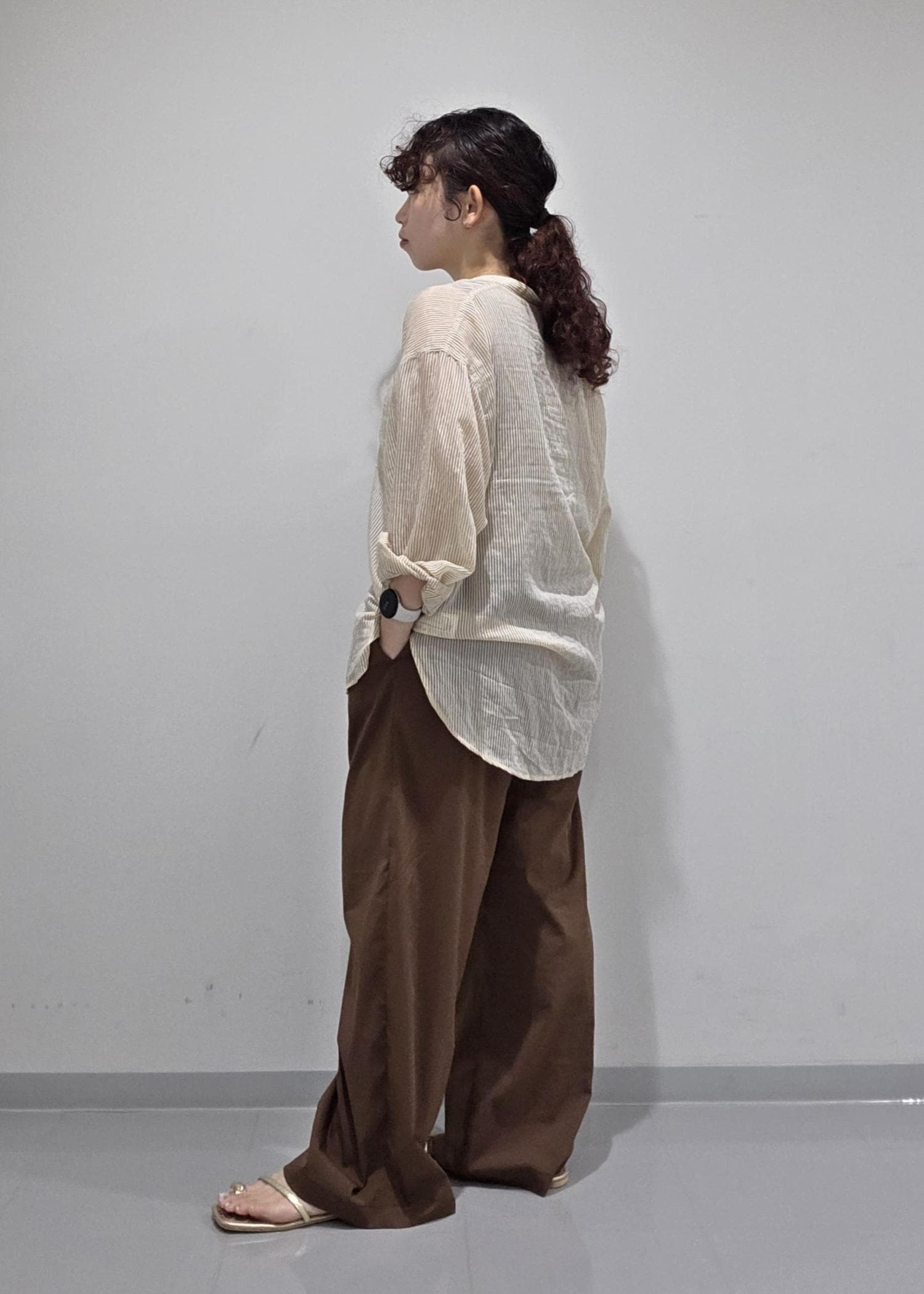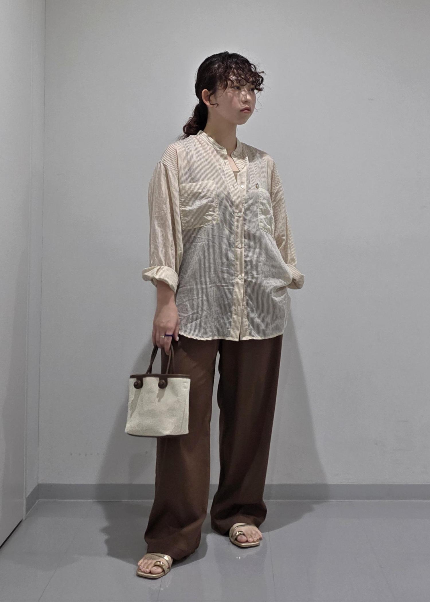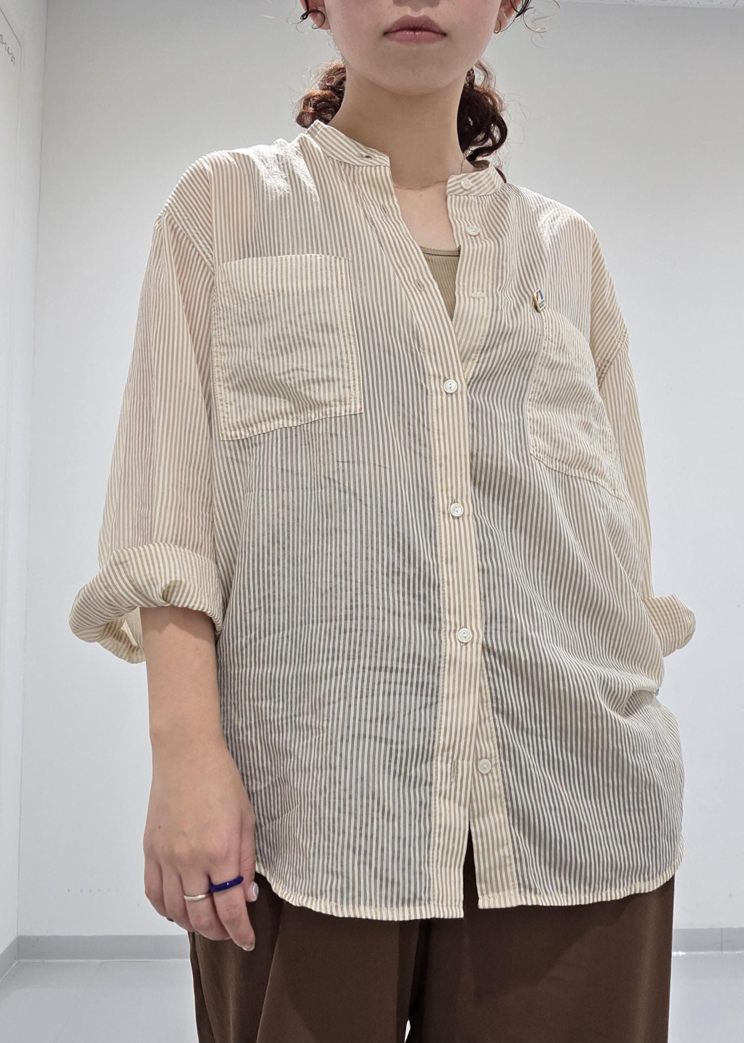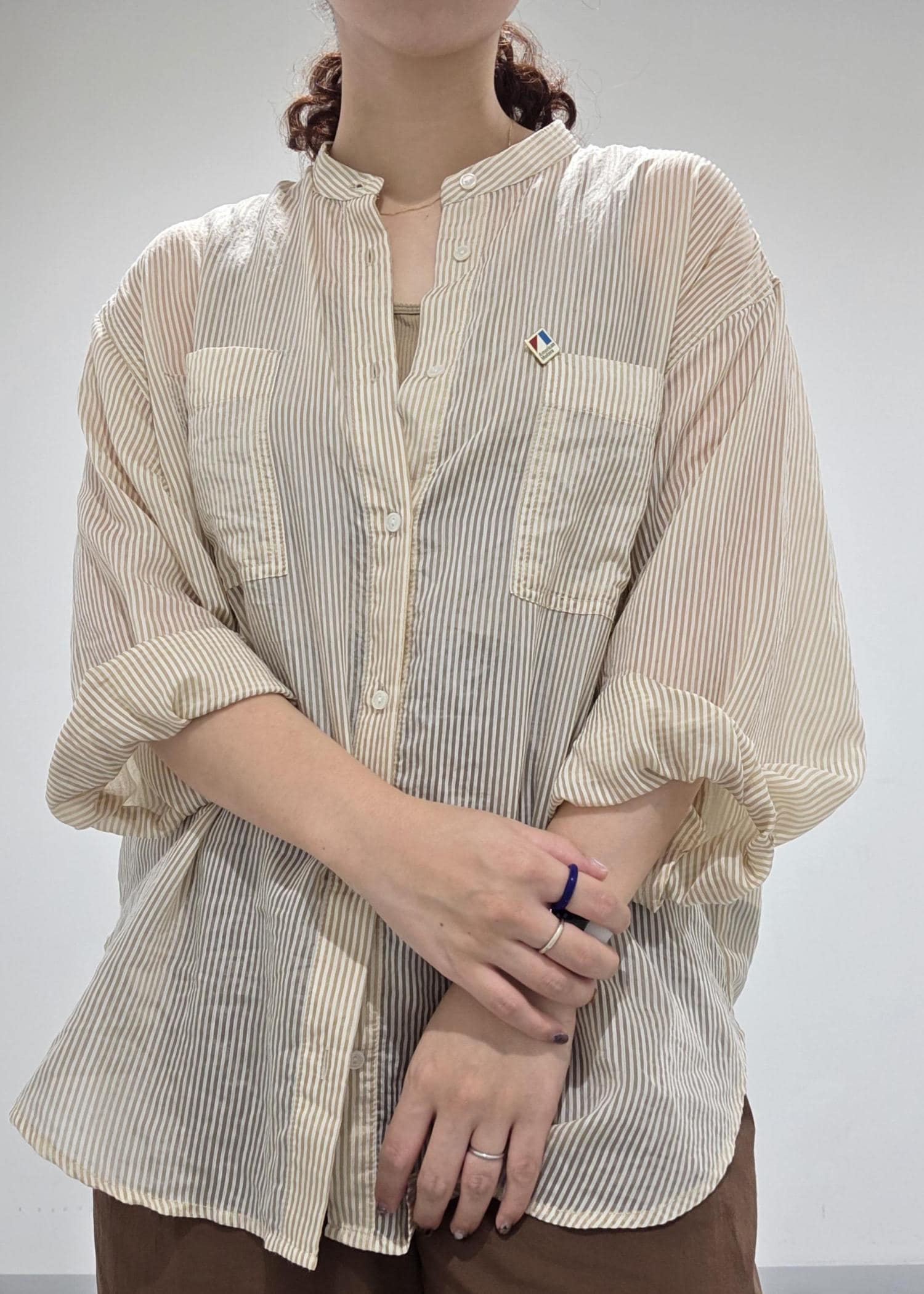 アウトレットROPÉ PICNIC着丈が選べるバンドカラーストライプシアーシャツベージュ系 / 38T¥3,842レビュー透け感のある長め丈のストライプシャツ。