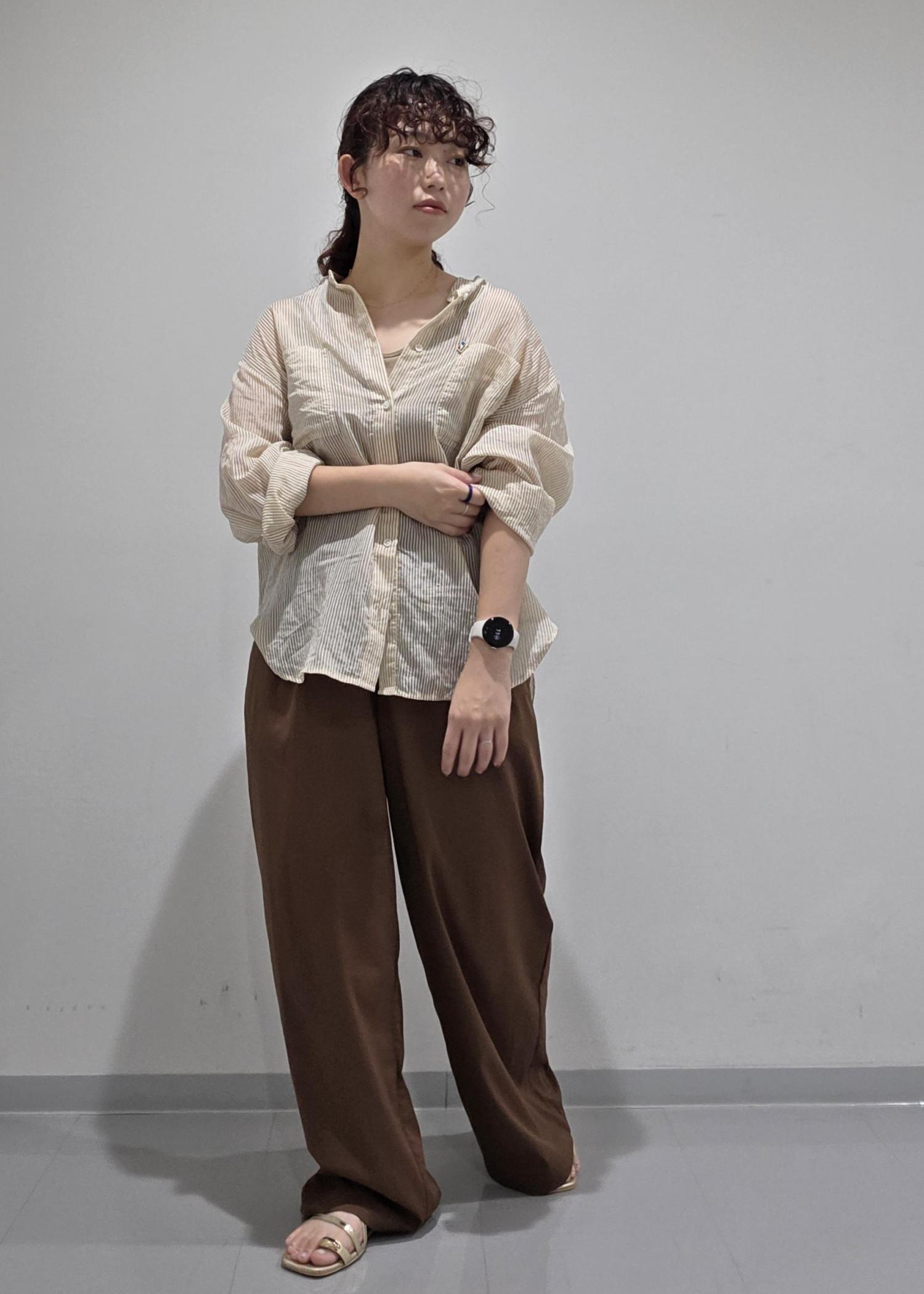 おしりまで隠れる長さですが、程よく透けるので低身長さんでも重くならずにスタイリングできます。
