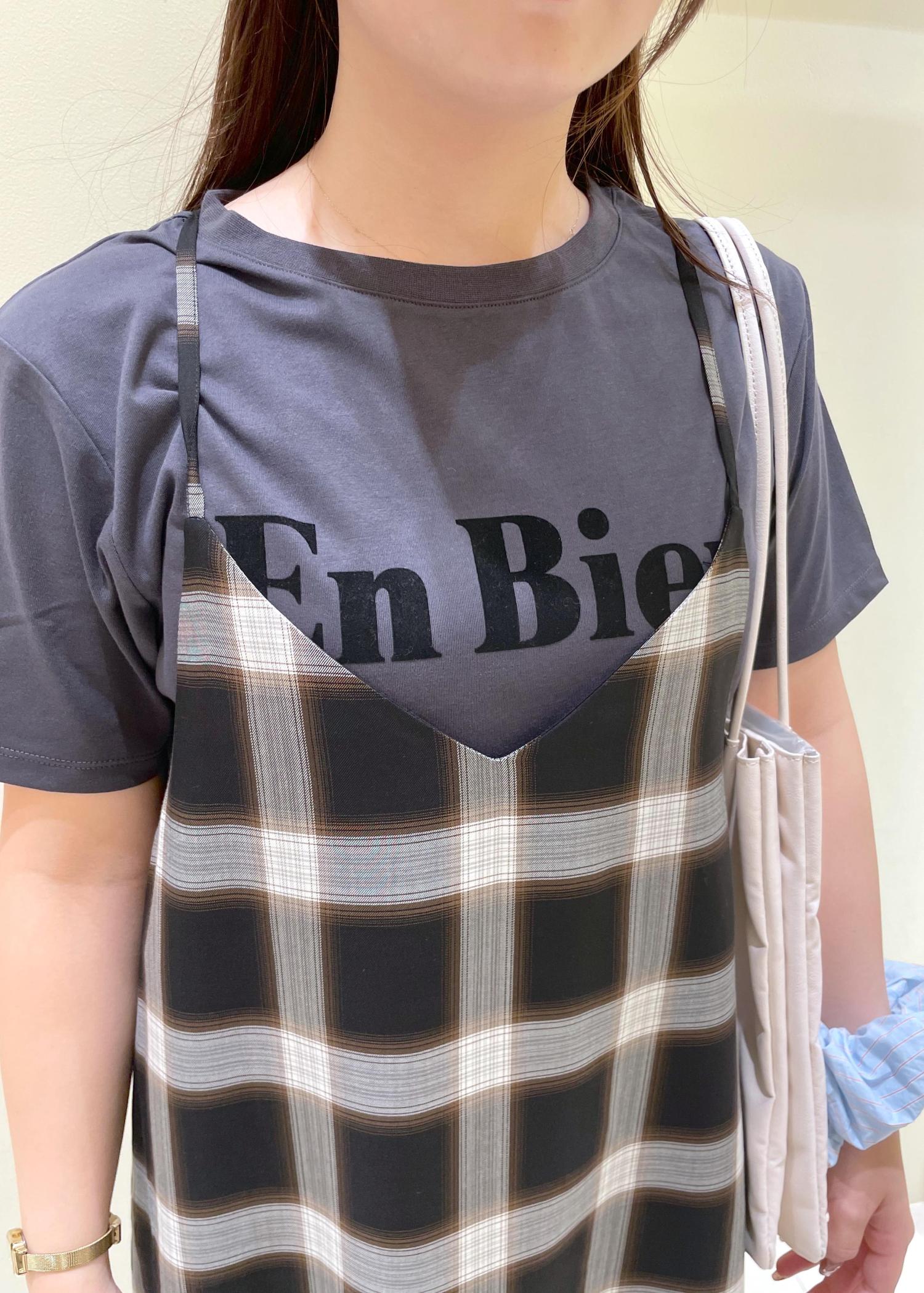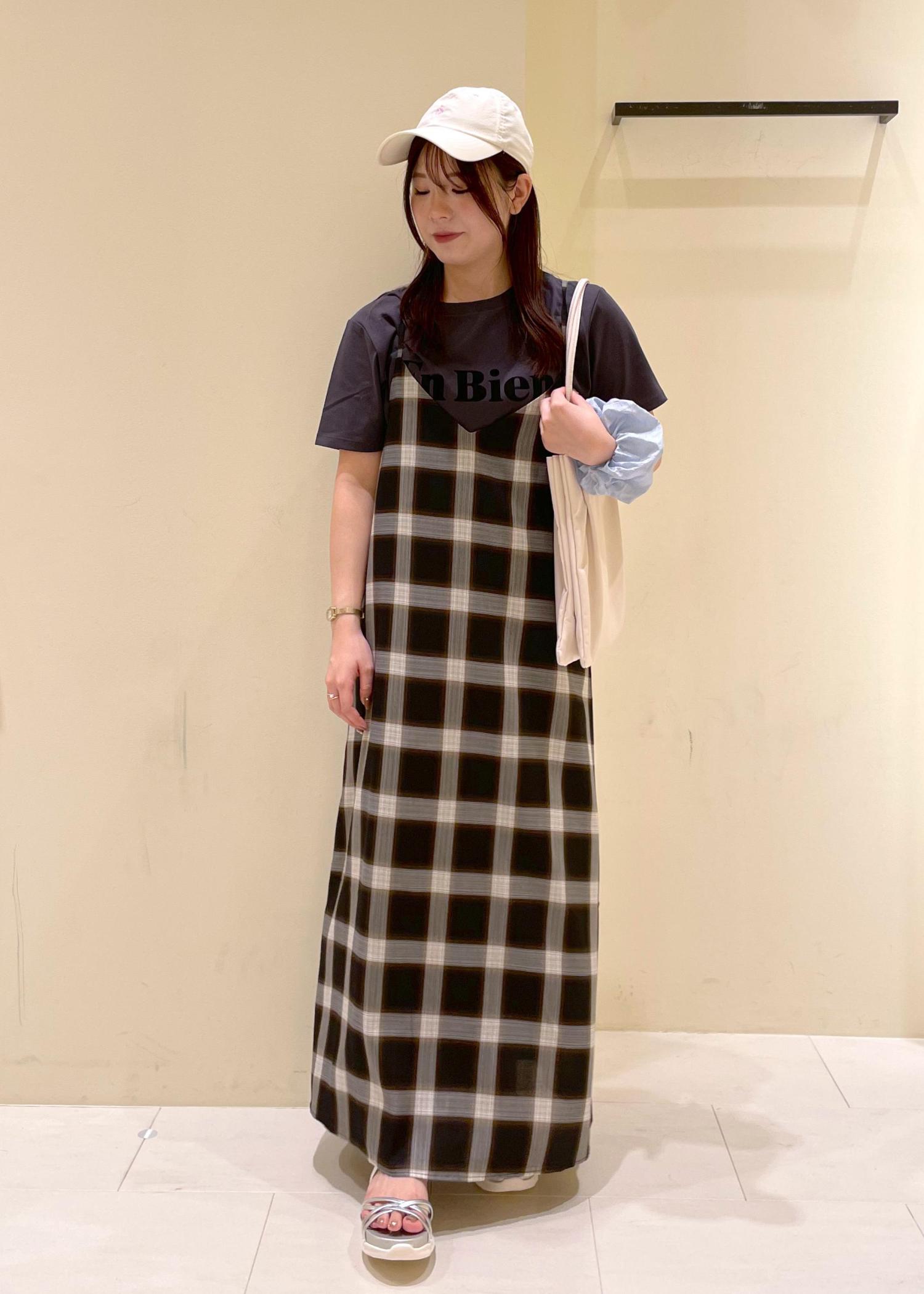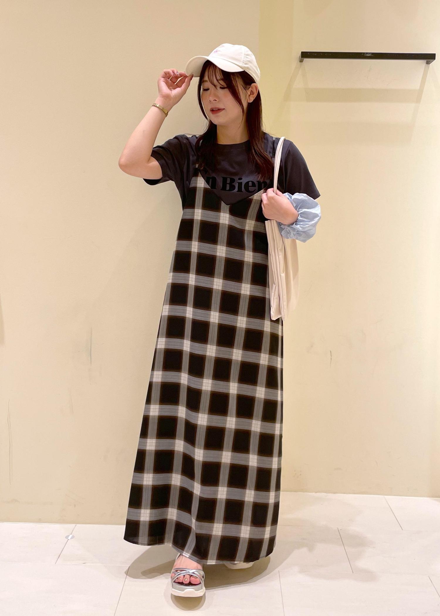 Tシャツとキャミワンピの大人カジュアルコーデです。