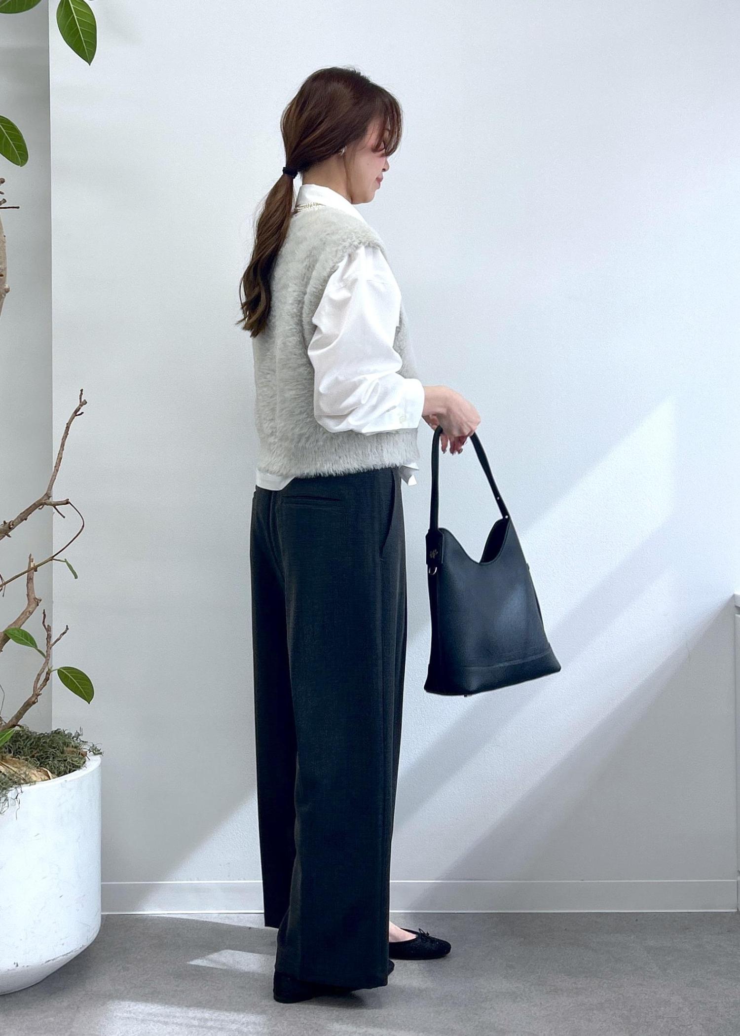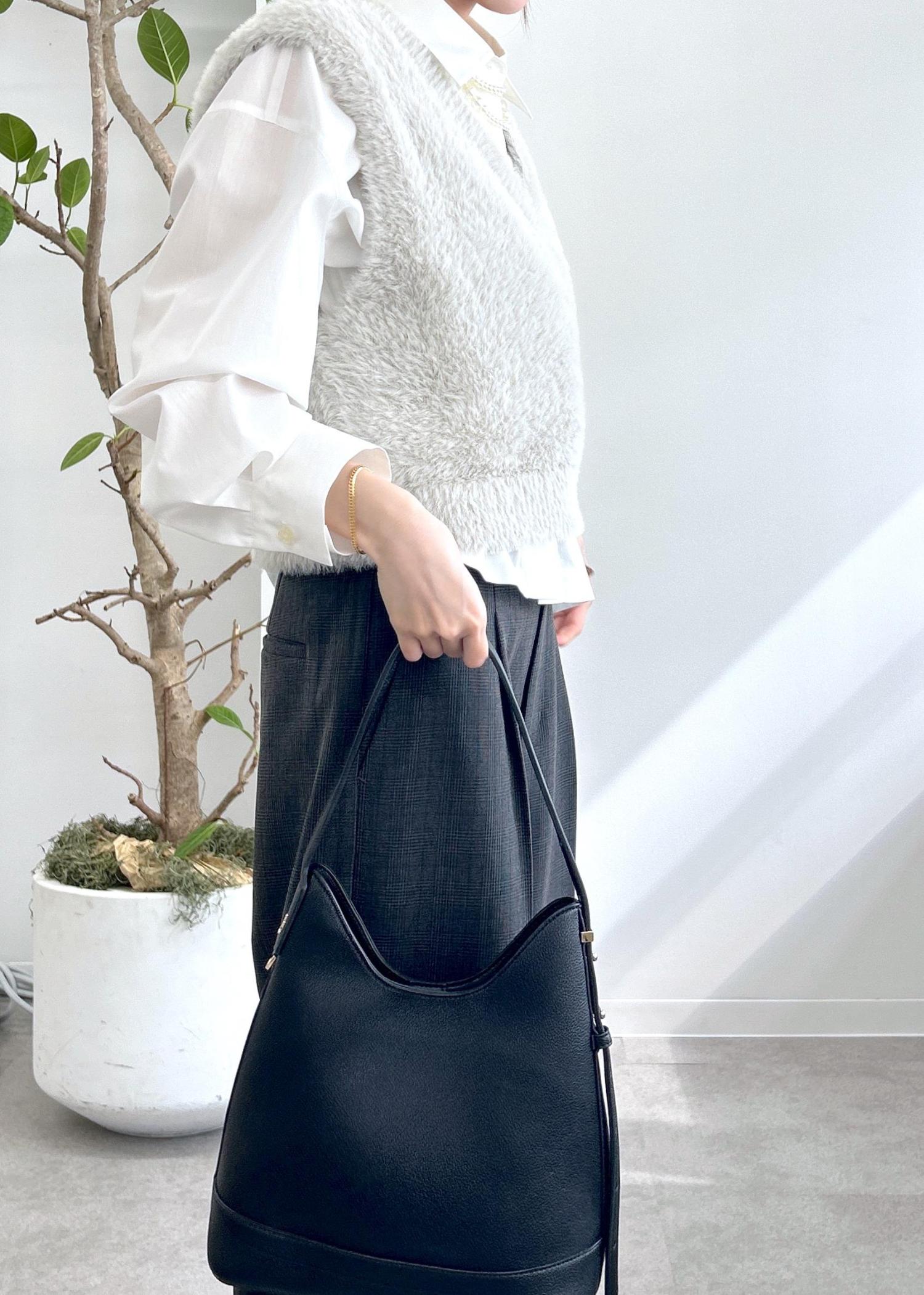 形がワイド過ぎず綺麗めスタイルにも使いやすいアイテムです。 -