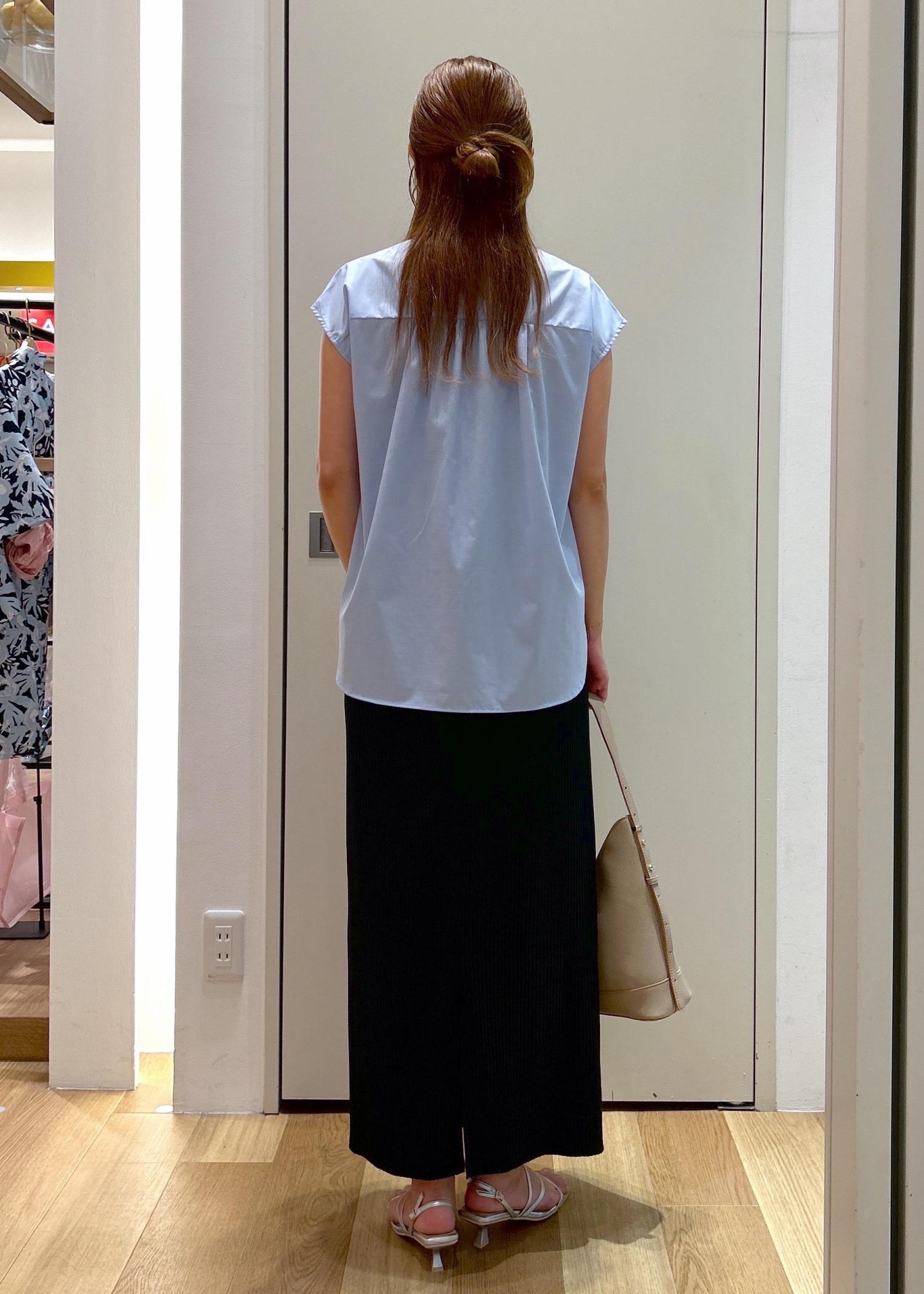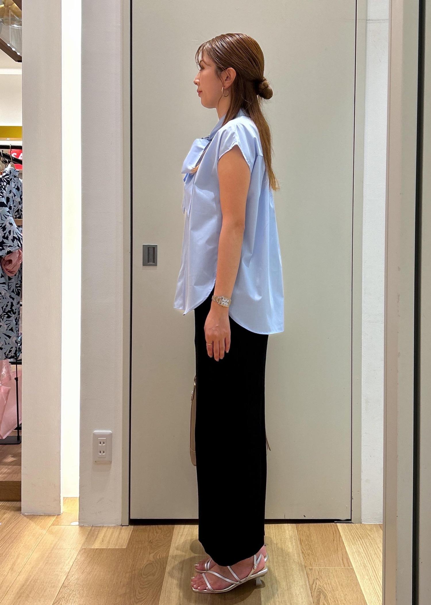 ハリのあるブラウスはシワになりにくくサラッとしてるので涼しくおしゃれに着こなせます◎
