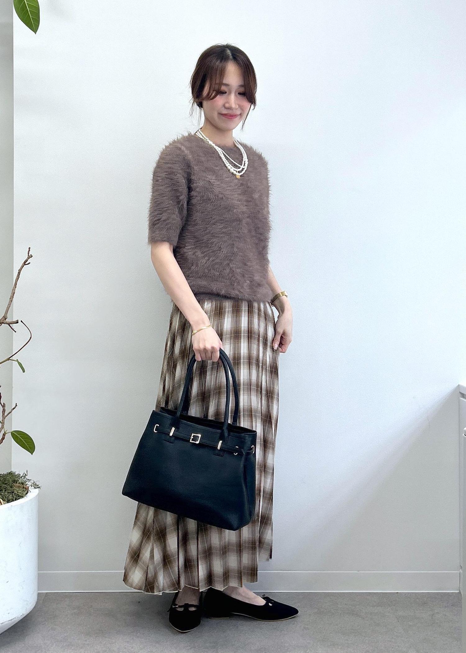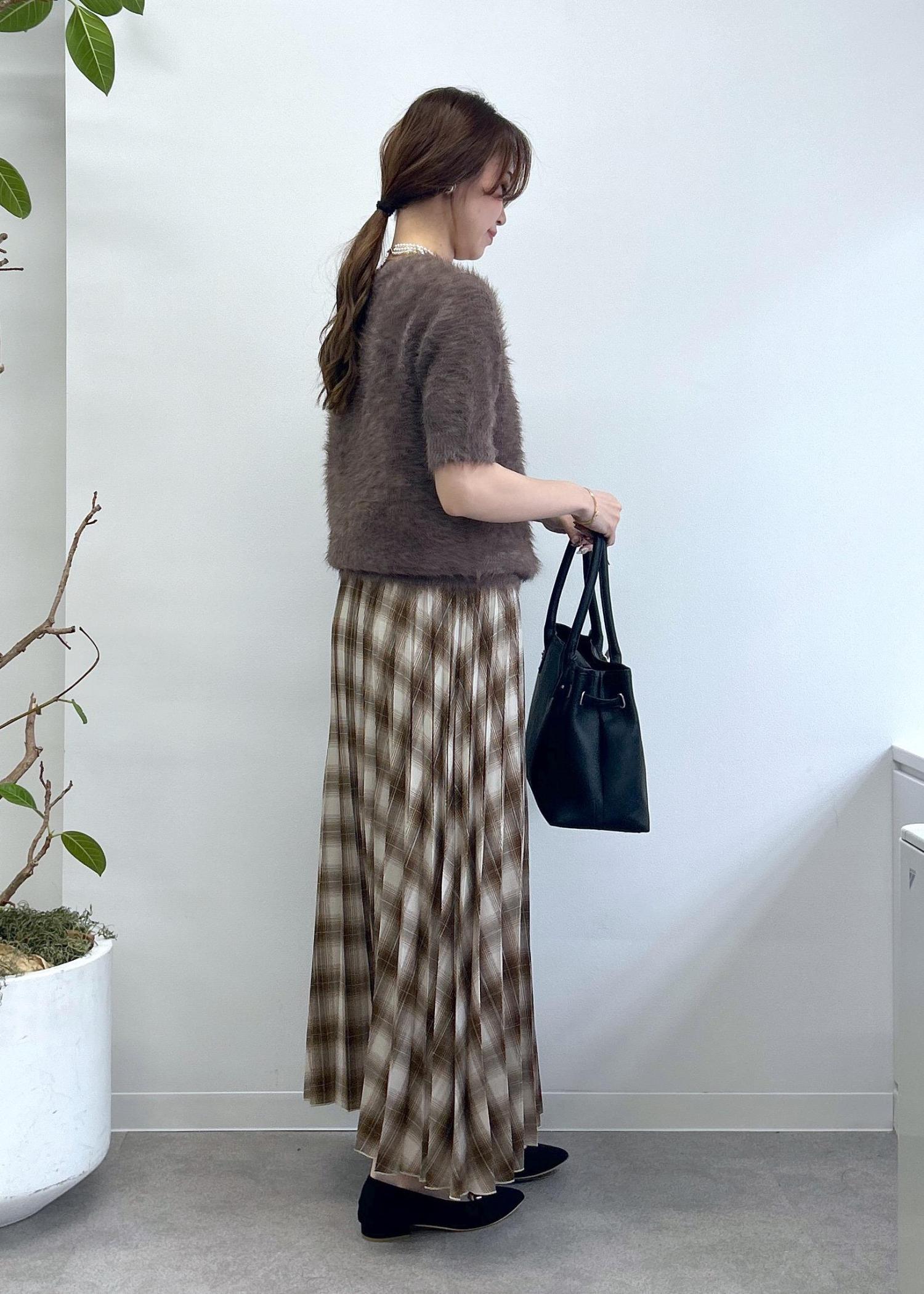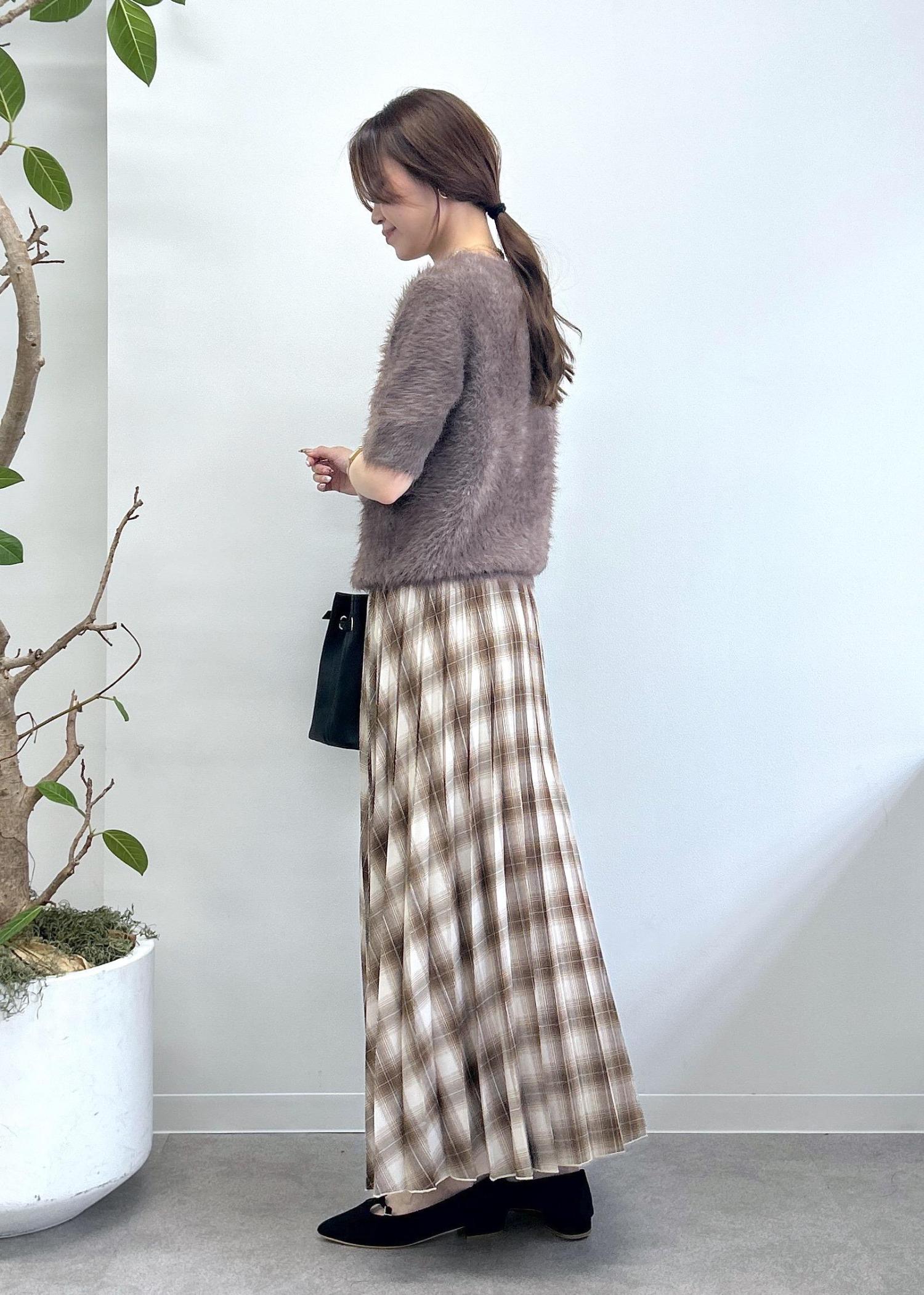 チェックの秋らしいスカートにシャギーニットで可愛さも取り入れた秋スタイリングにしました。
