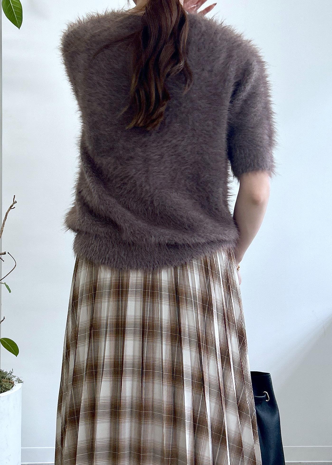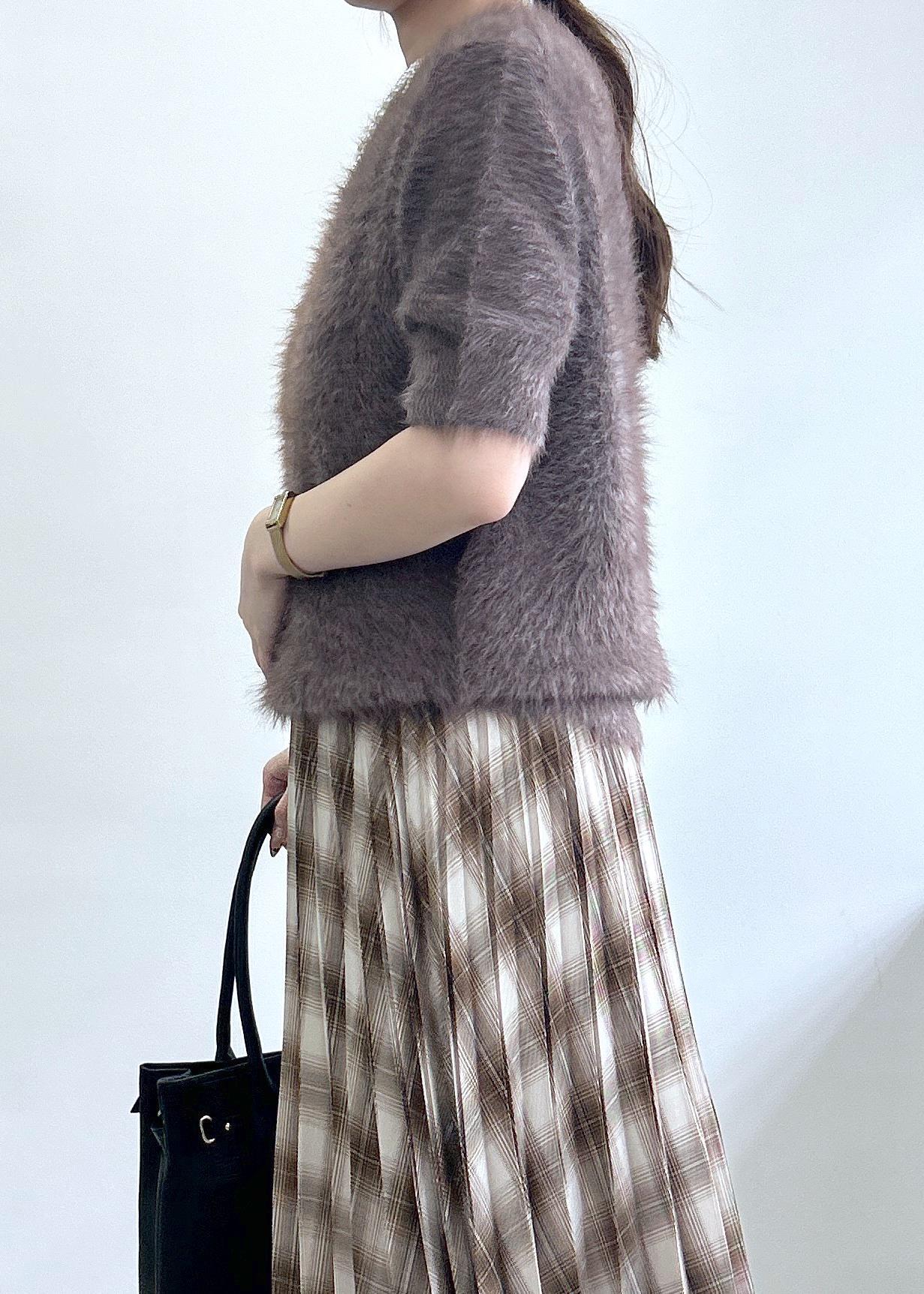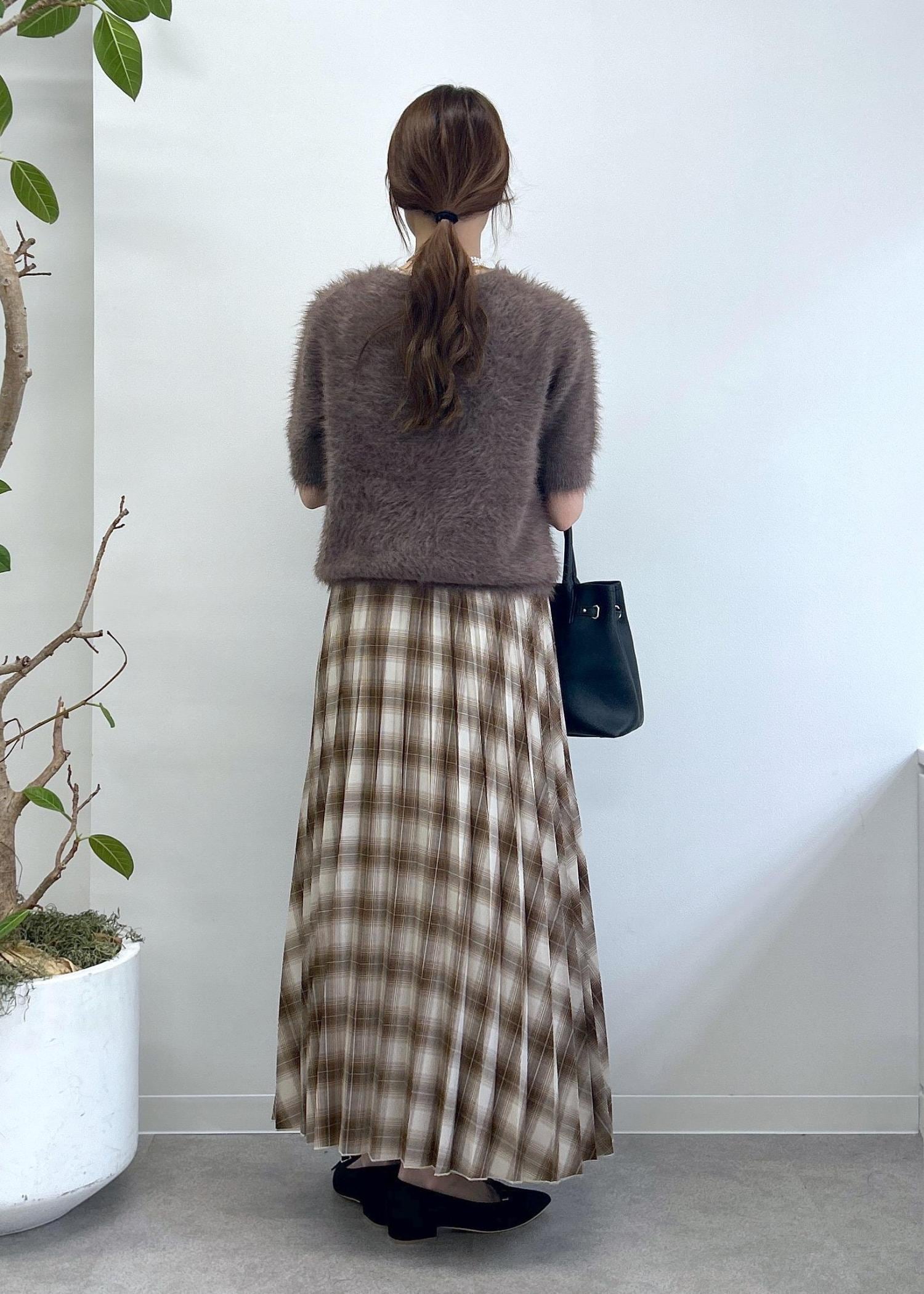 チェックの秋らしいスカートにシャギーニットで可愛さも取り入れた秋スタイリングにしました。