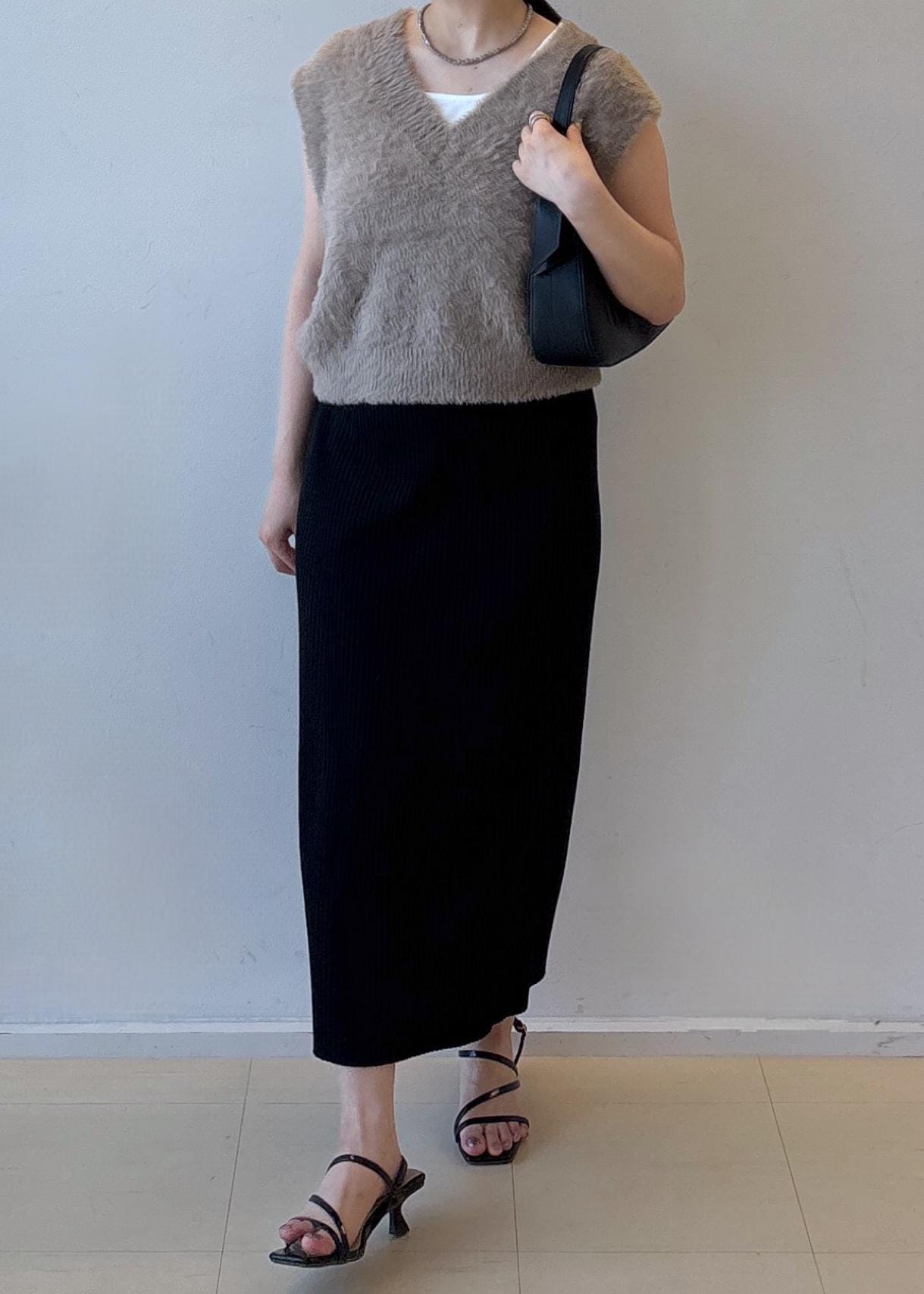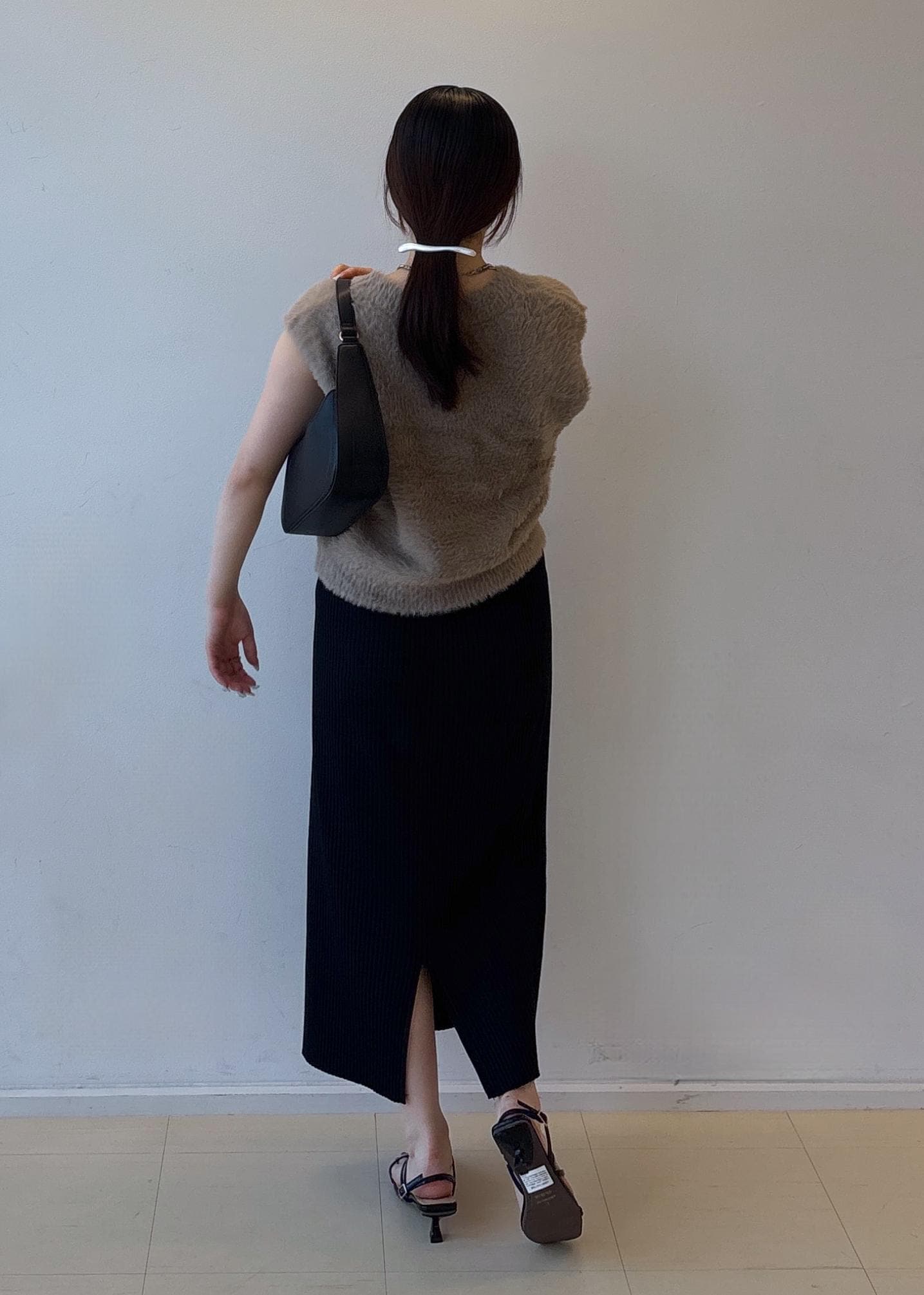 ベストのふんわり感とスカートのタイトなシルエット、そして落ち着いた色合いのコントラストが絶妙。大人の女性にぴったりな、“頑張りすぎないおしゃれ”を意識しました♡