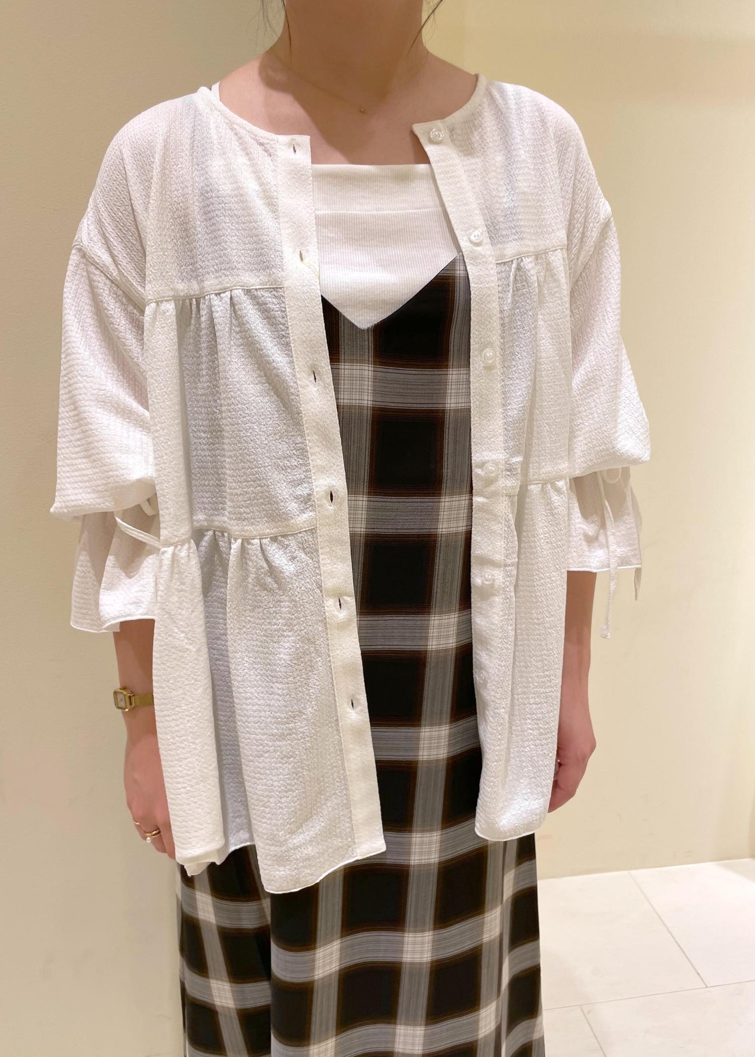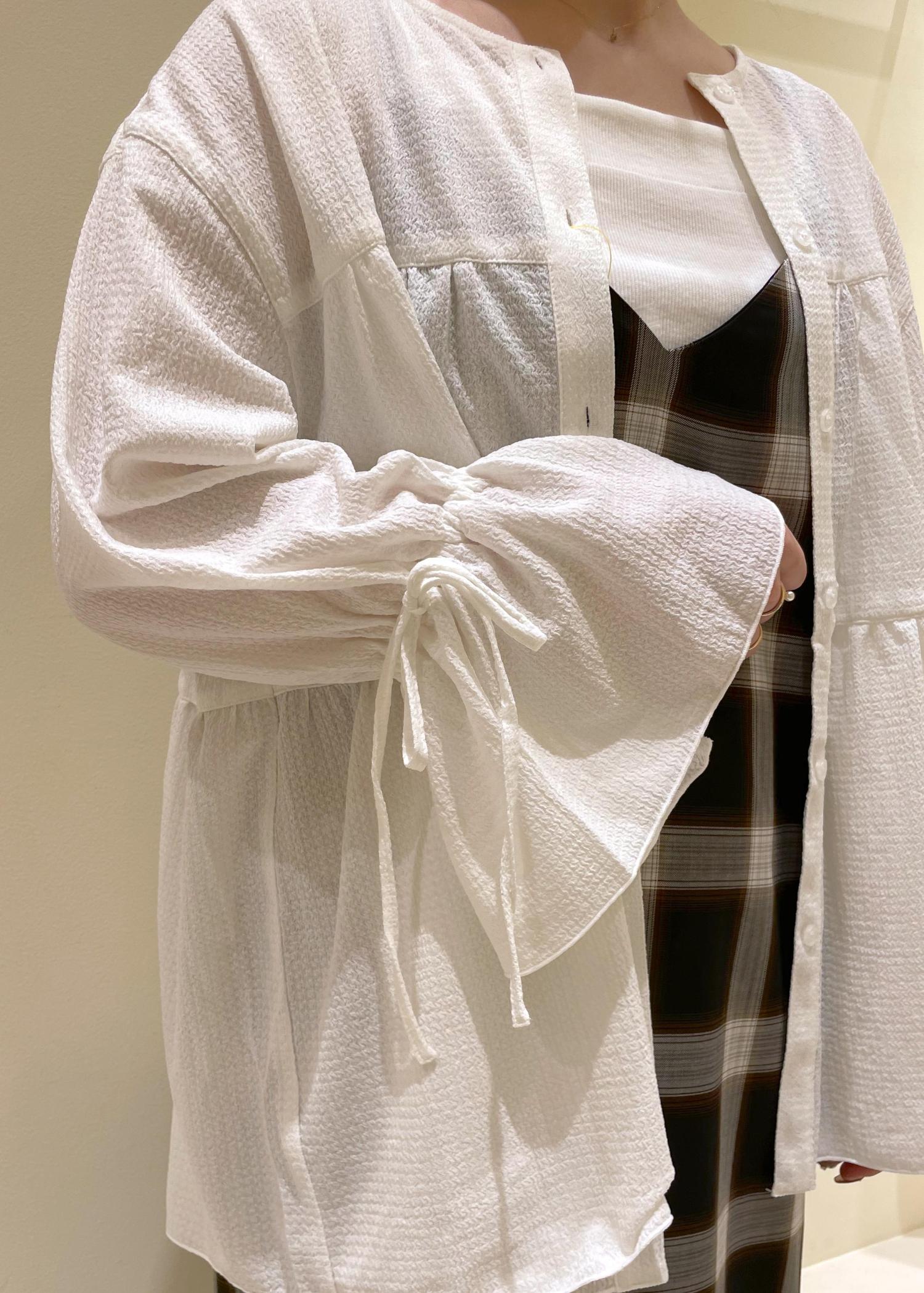 羽織りをプラスするだけで甘さのあるコーデにしてくれます!