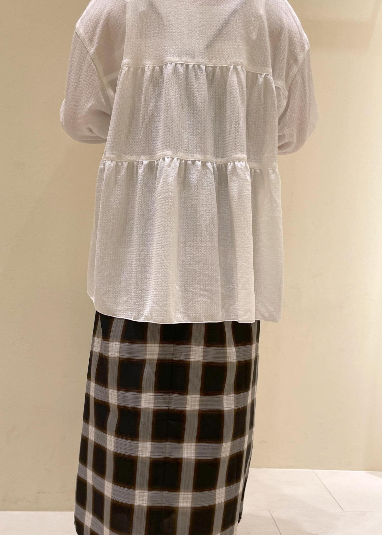 シワになりにくいイージーケア素材とティアードの切り替えデザインが可愛い羽織りです。