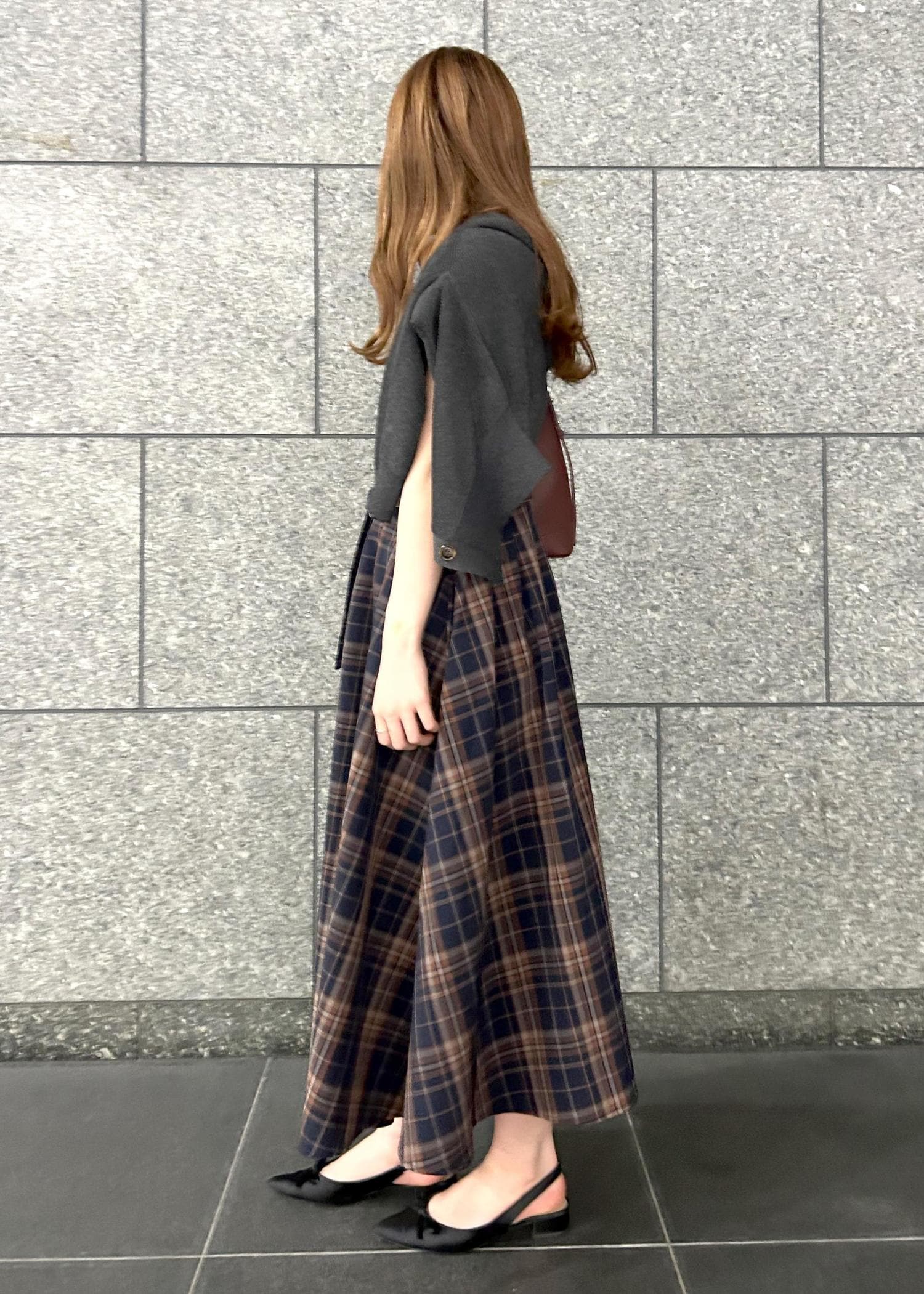 肩にカーディガンを掛けるだけで、さらに上品さがアップします!