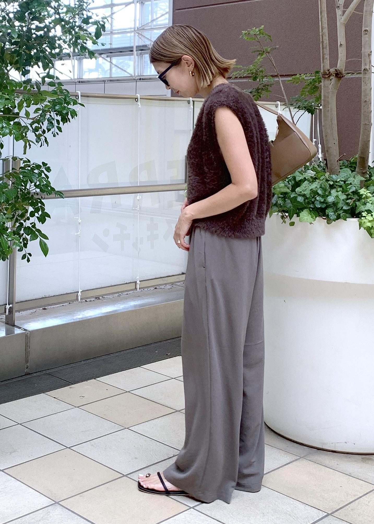 マットで透けにくいジョーゼット素材のイージーワイドパンツ。