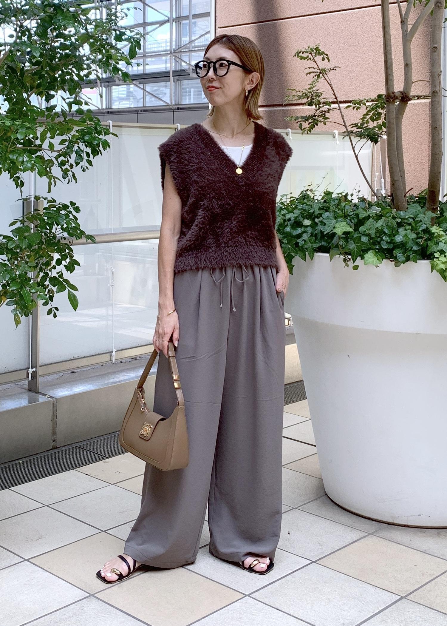 秋先取り!できる今から着られるふわふわのフェザーニットベスト。
