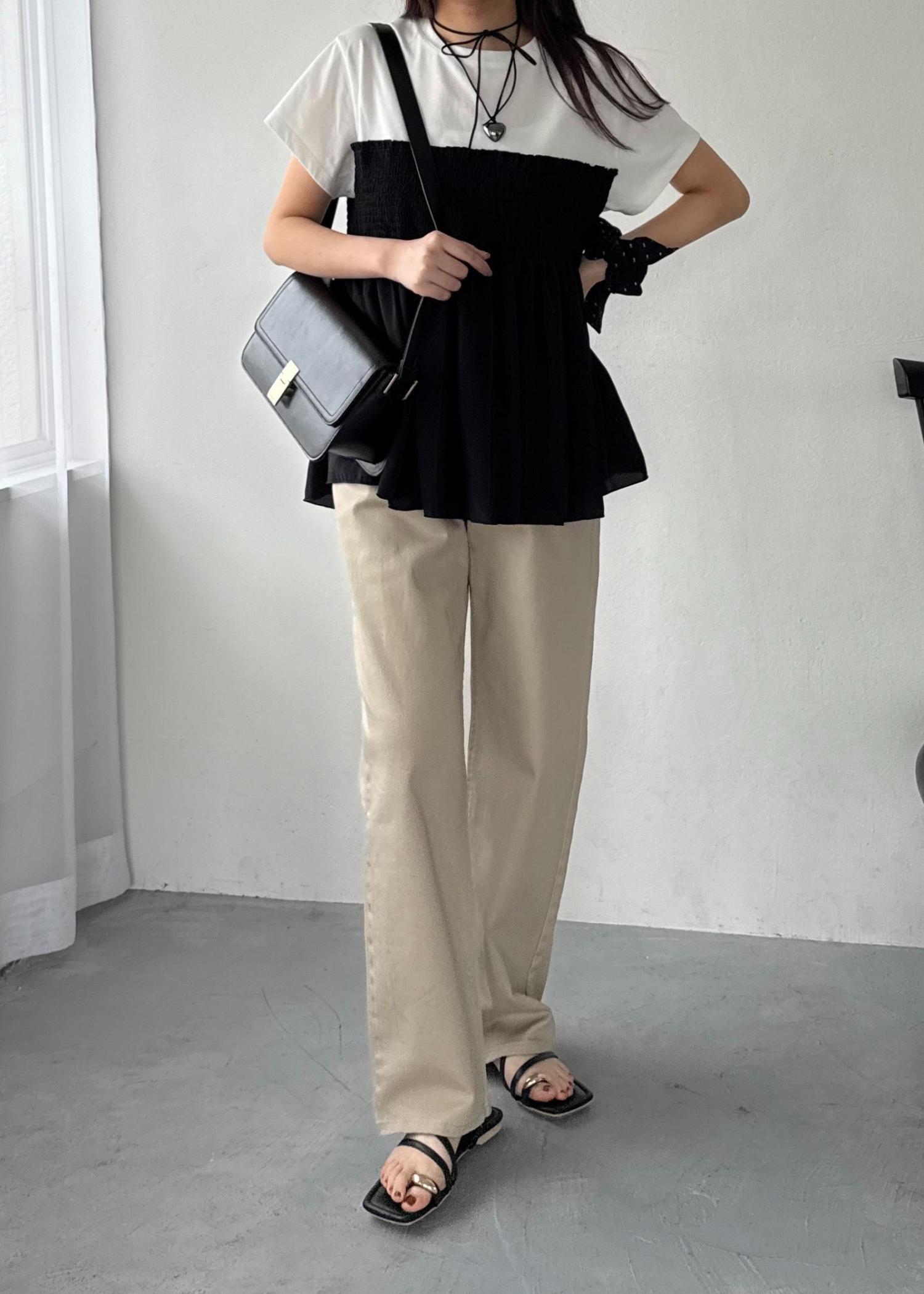裾が窄まっている形なのできれいめなトップスとも相性が良く、女性らしい雰囲気になります。