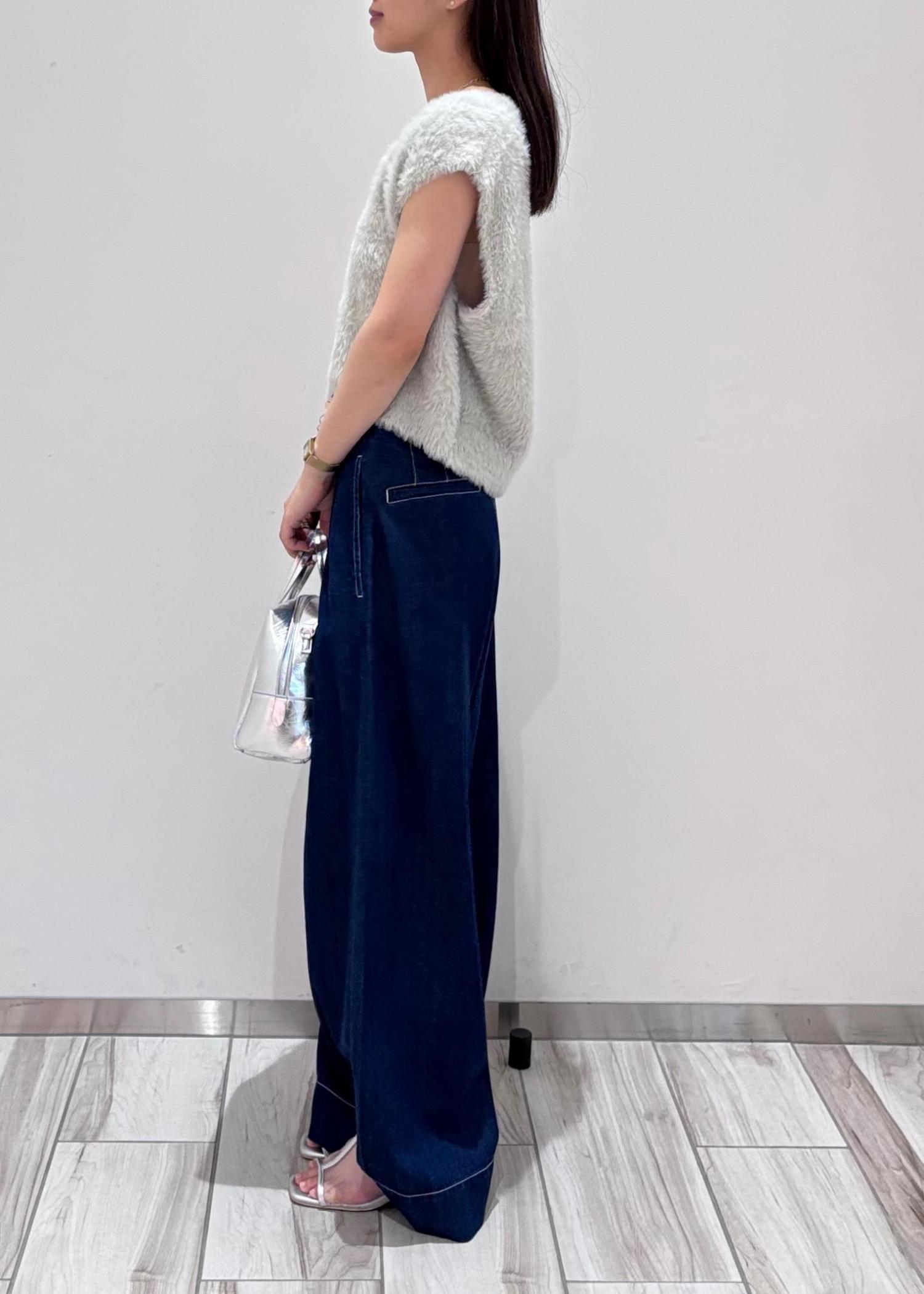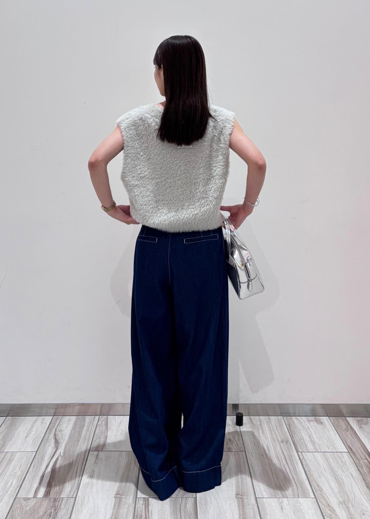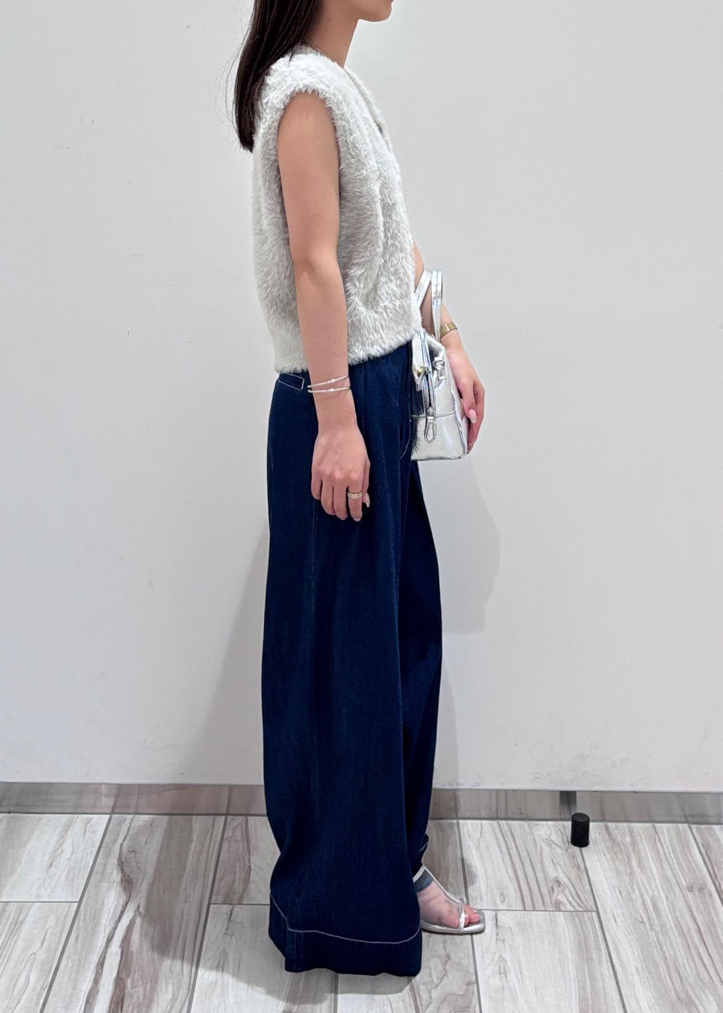 フェザーベスト×ワイドデニムで綺麗めカジュアル♪