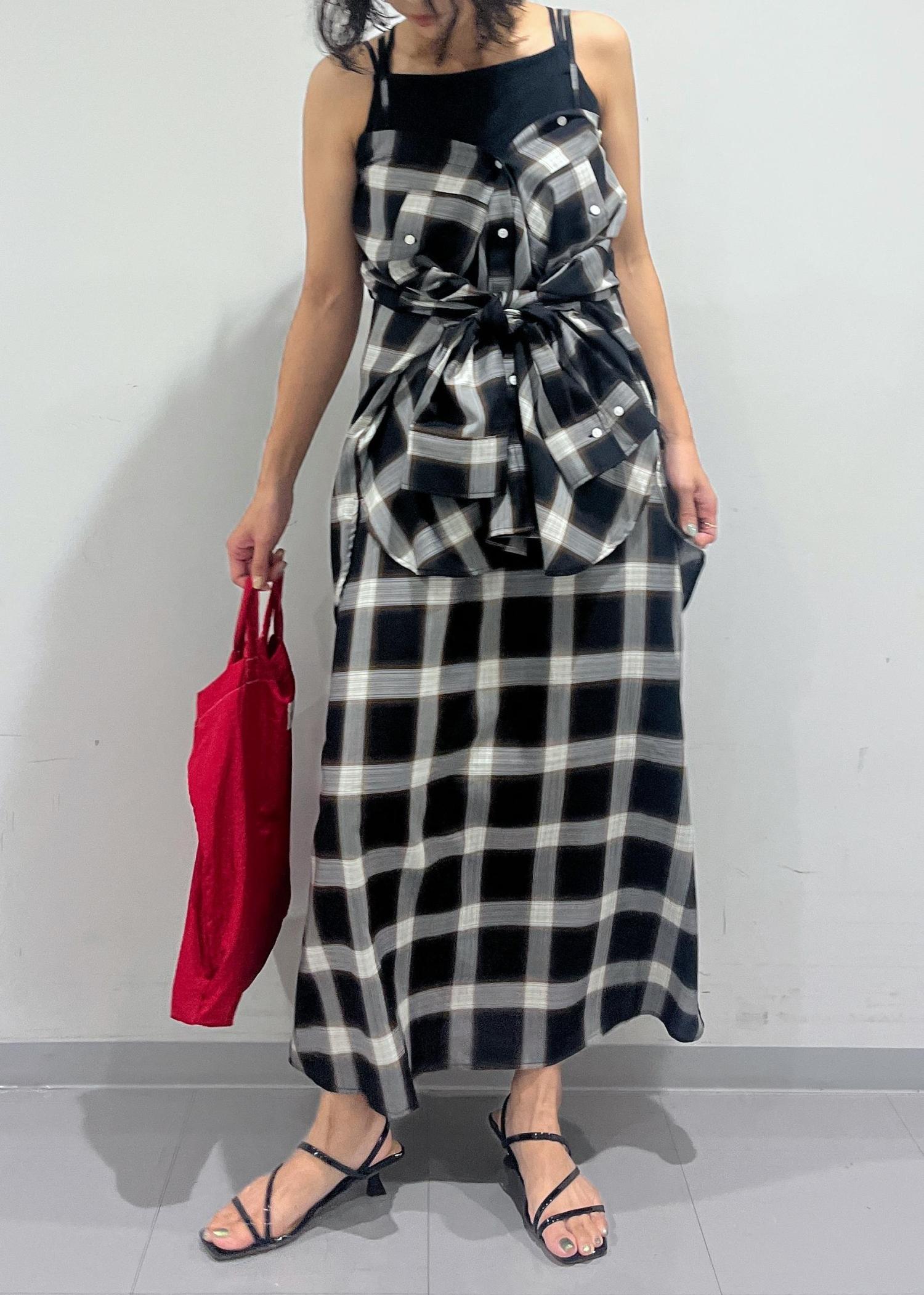 落ち着いた色味のチェック柄なので甘くなりすぎない大人なキャミワンピースなので、どの世代の方にも使いやすくおすすめです。 -