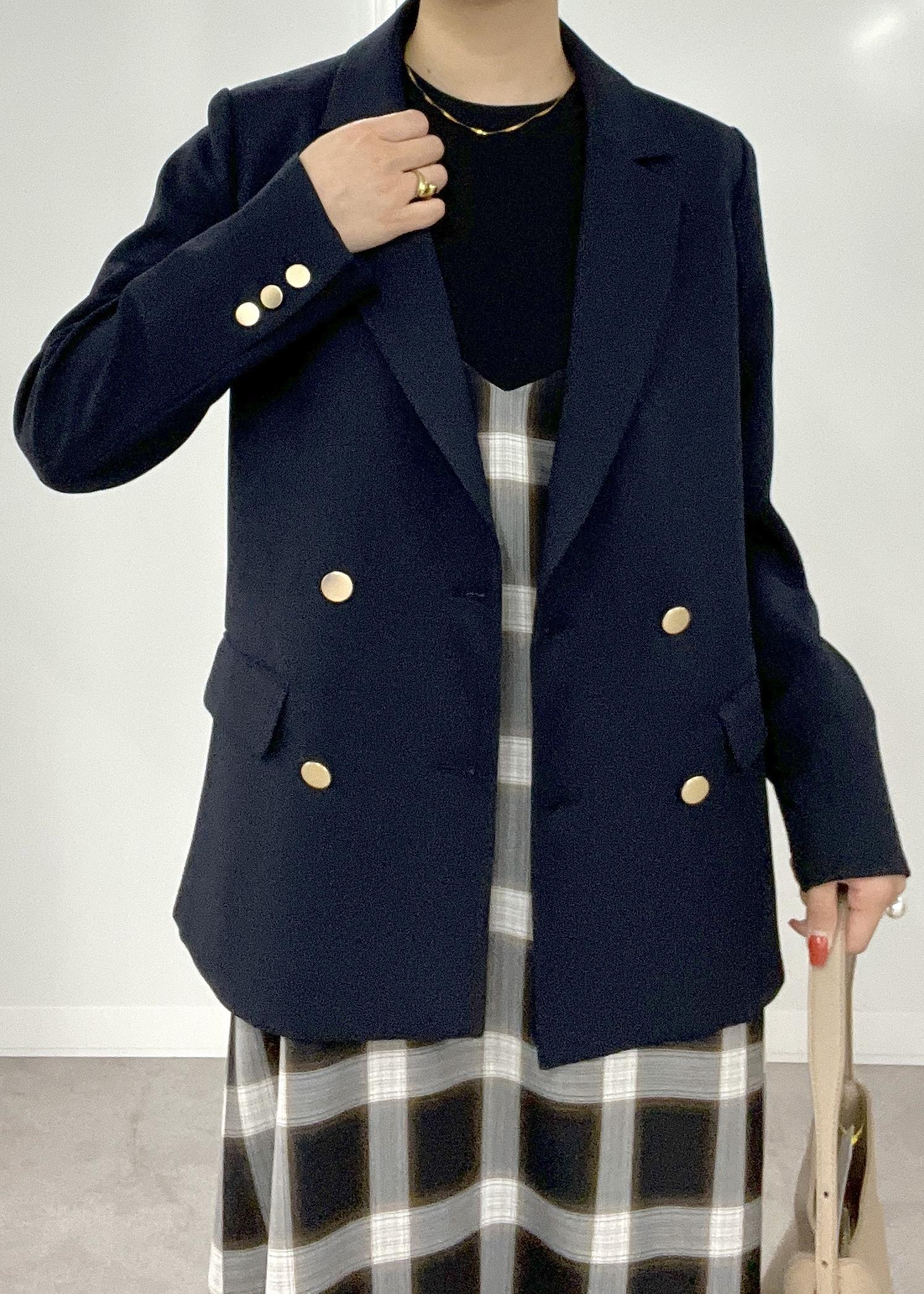 ジャケットを羽織るだけで、カチッとした雰囲気も出るので