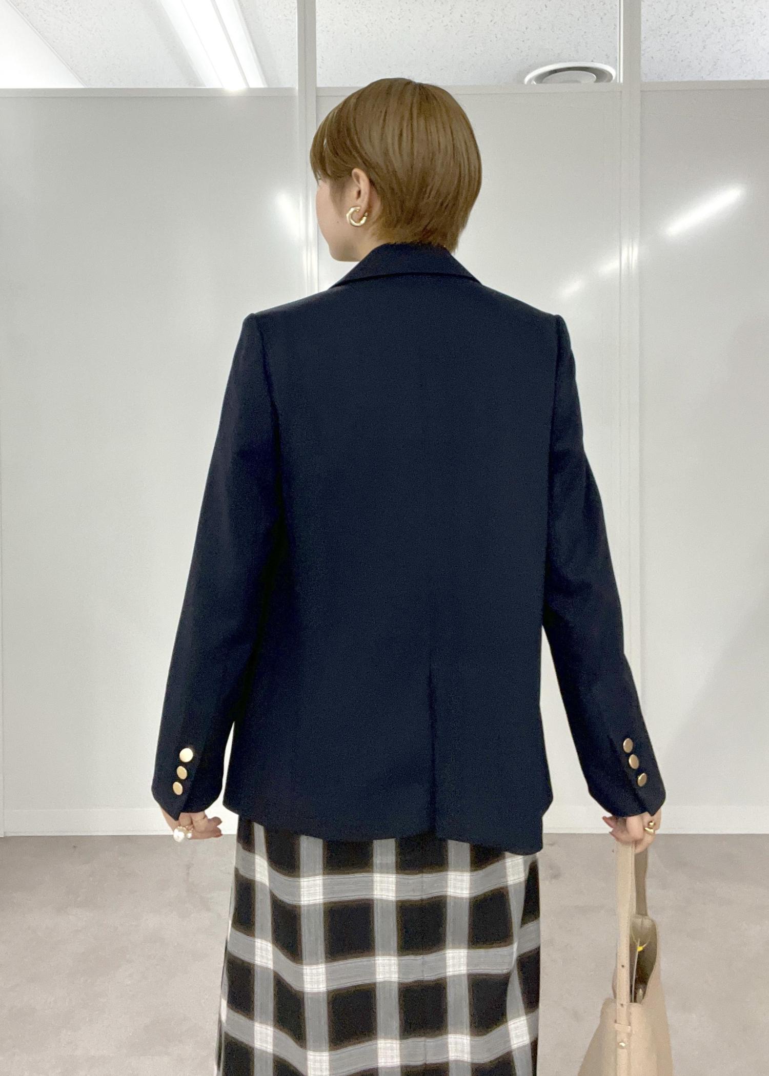 【WEB限定・ミドル丈】レディハンサムシリーズ ウールライク金ボタンジャケット(半裏地)/通勤対応