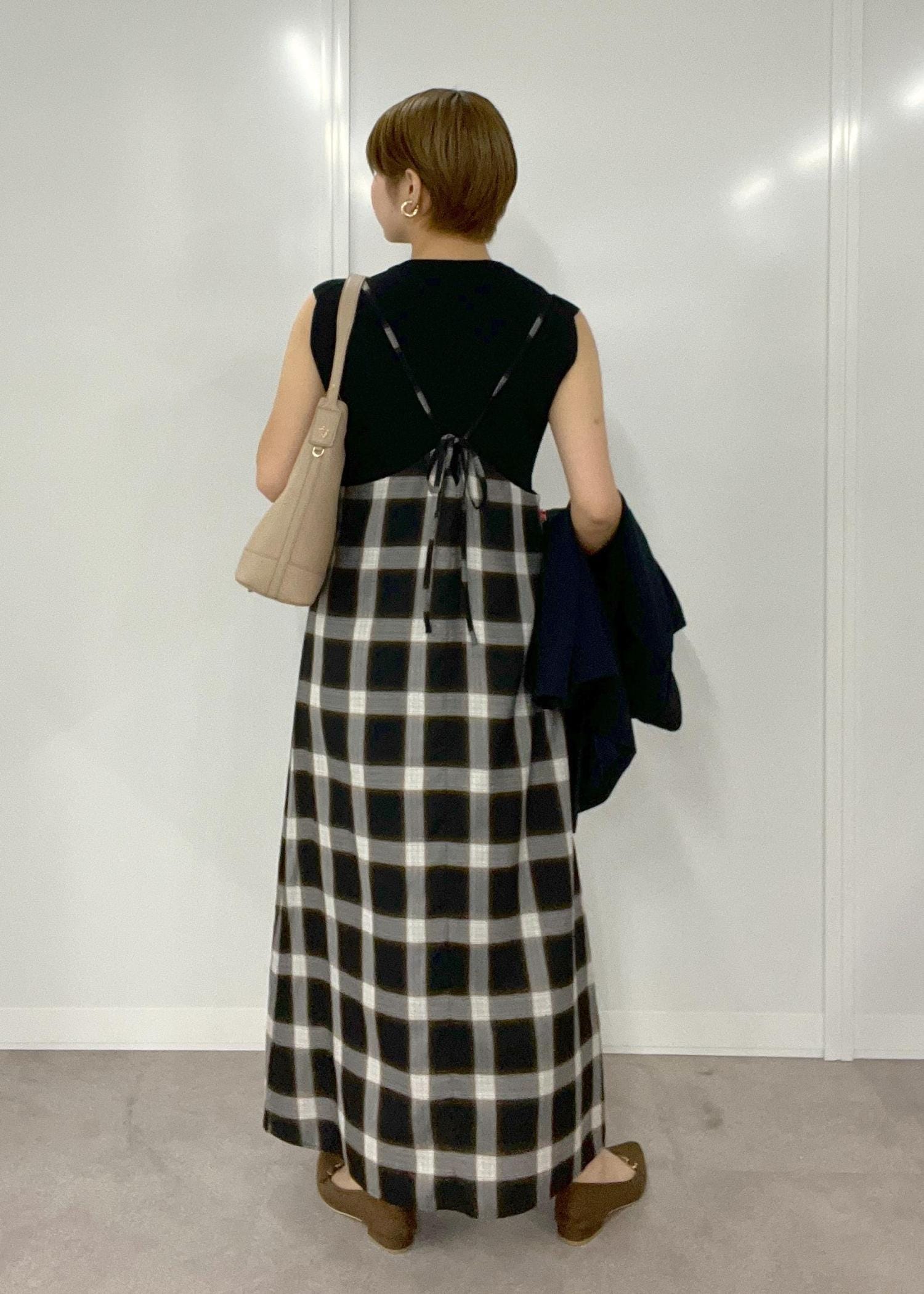 肩紐は後ろで結ぶタイプなので、長さ調節も可能です。夏場の時期はタンクトップやTシャツを合わせる着こなしがオススメです◎