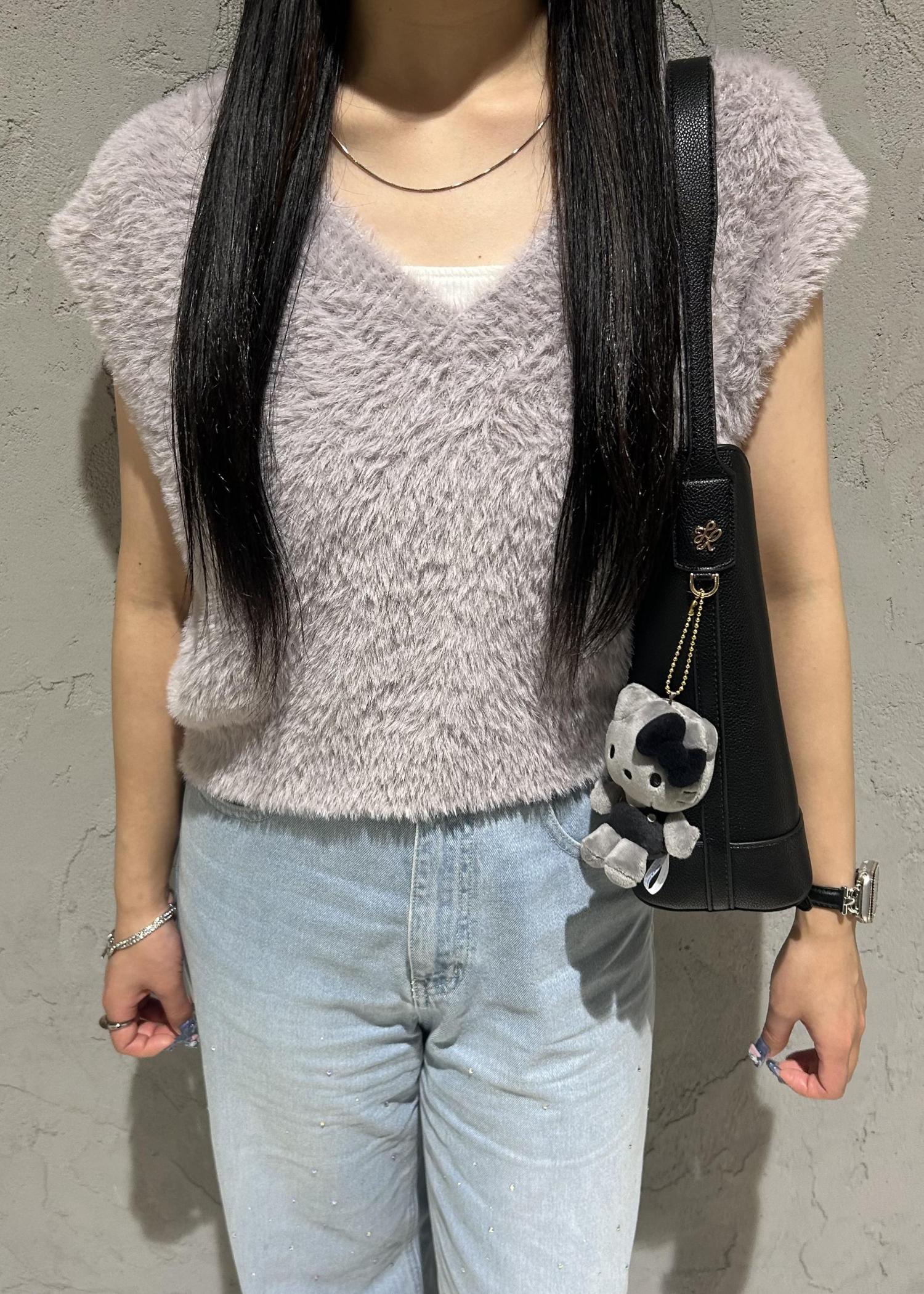 トップスの毛足のある素材感が見た目にもやさしい印象を与えてくれて、