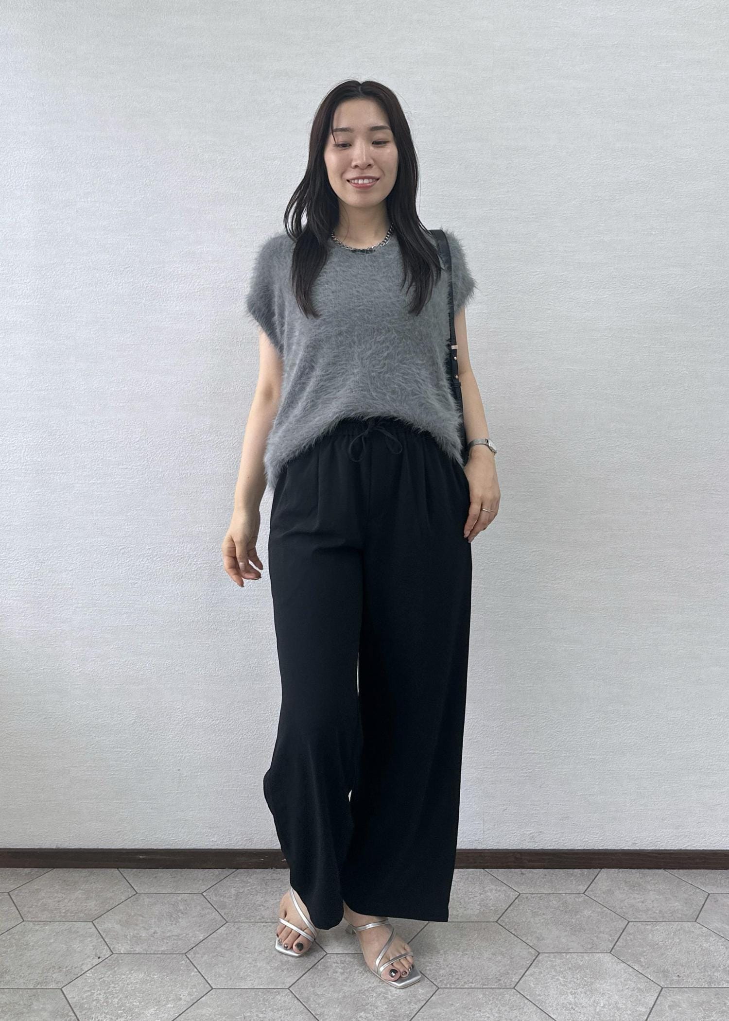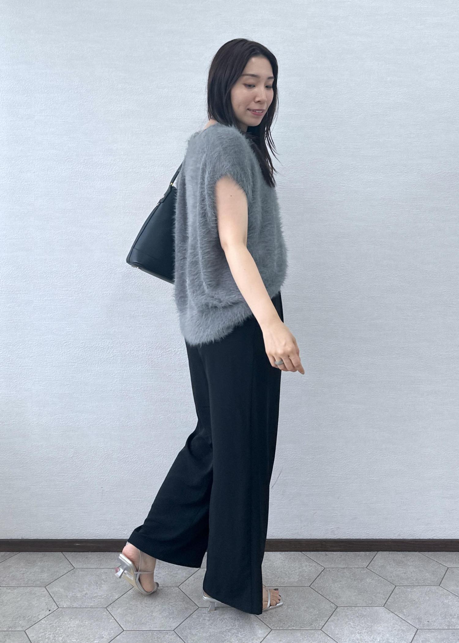 ブラックのパンツと合わせることでモードカジュアルな印象に仕上げました。