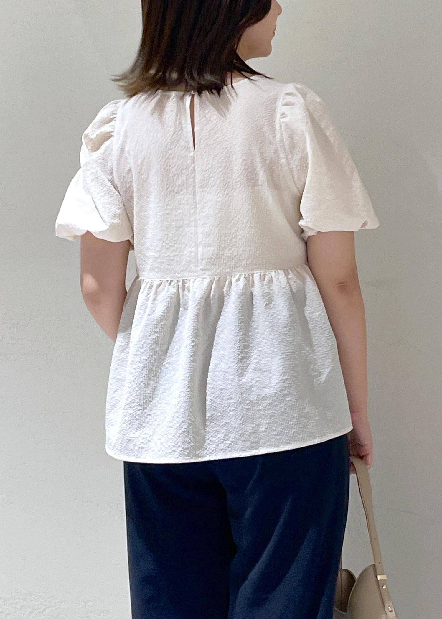 ROPÉ PICNICバルーンペプラムブラウスキナリ / 38¥2,250レビューバルーン袖が二の腕をカバーしてくれます✨️