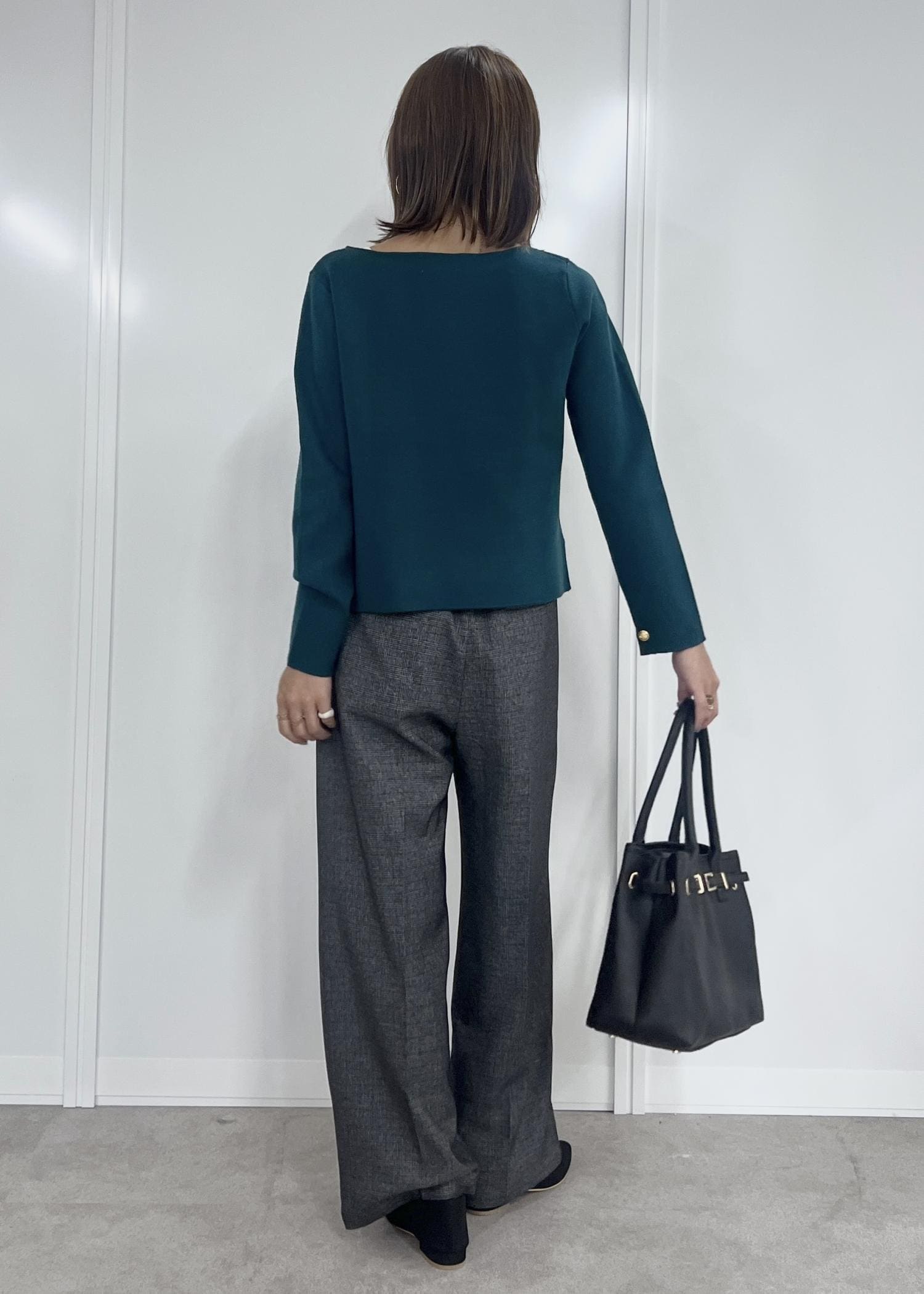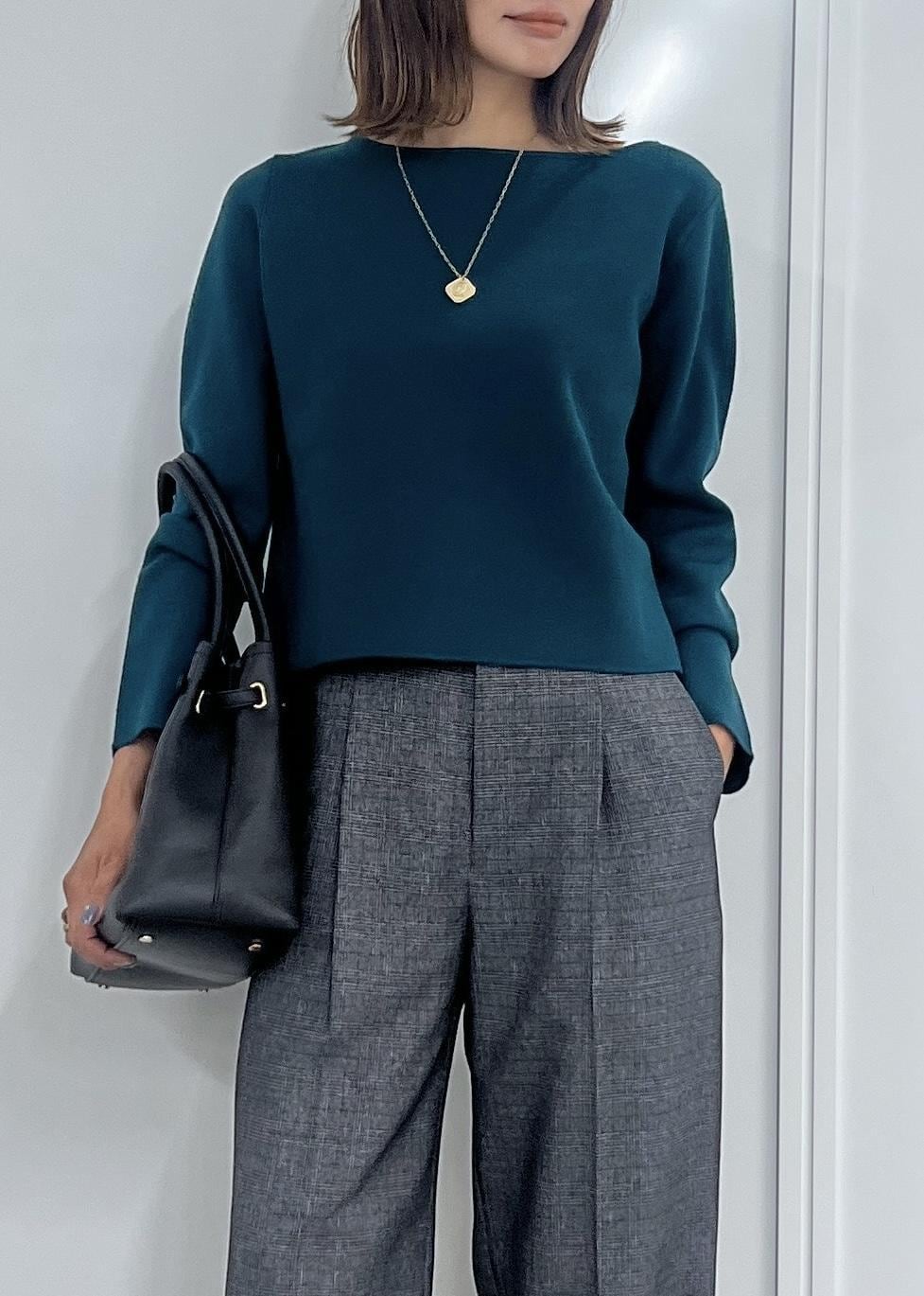 柔らかくしなやかなミラノリブニットは、ボートネックでスッキリ感のあるデザイン。