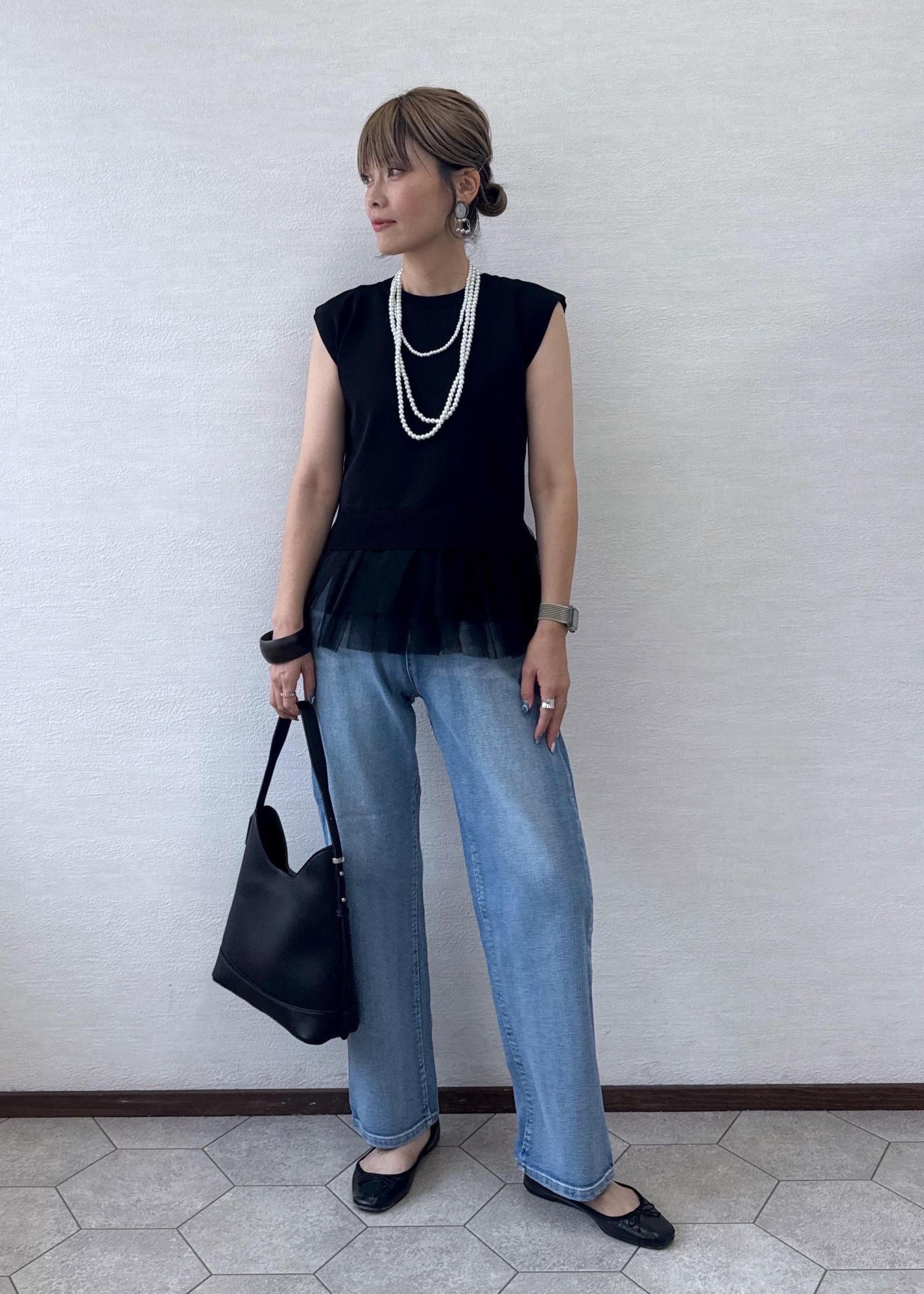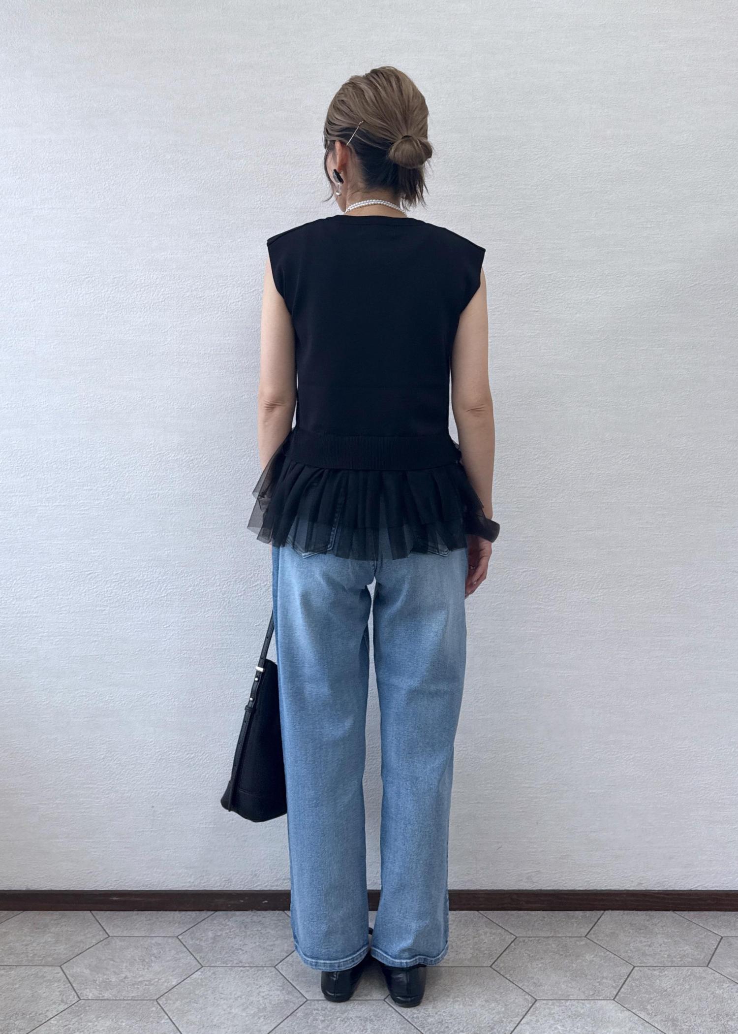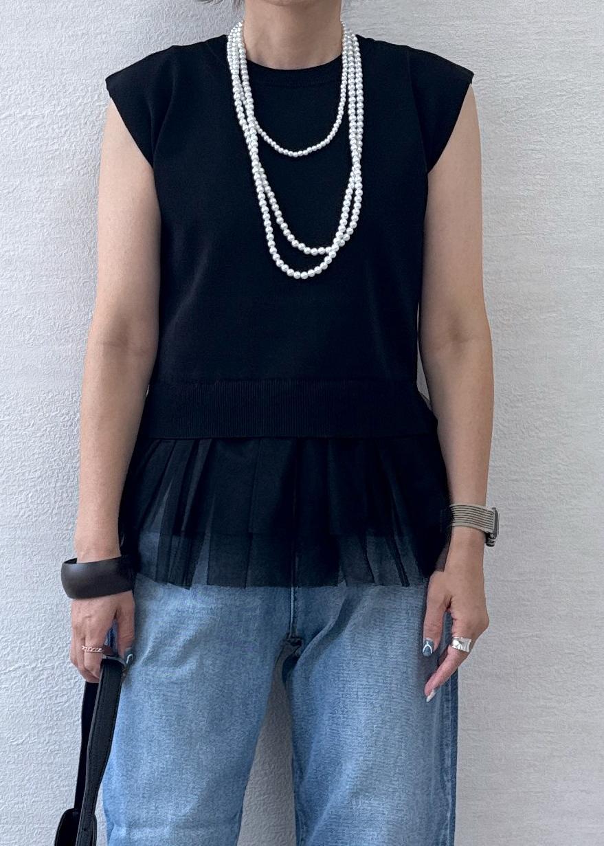 ROPÉ PICNICチュールドッキングプルオーバーブラック / F¥2,992レビューシャリ感のある素材で、夏場でも涼しく着心地がいいです。裾のフリルがポイント。