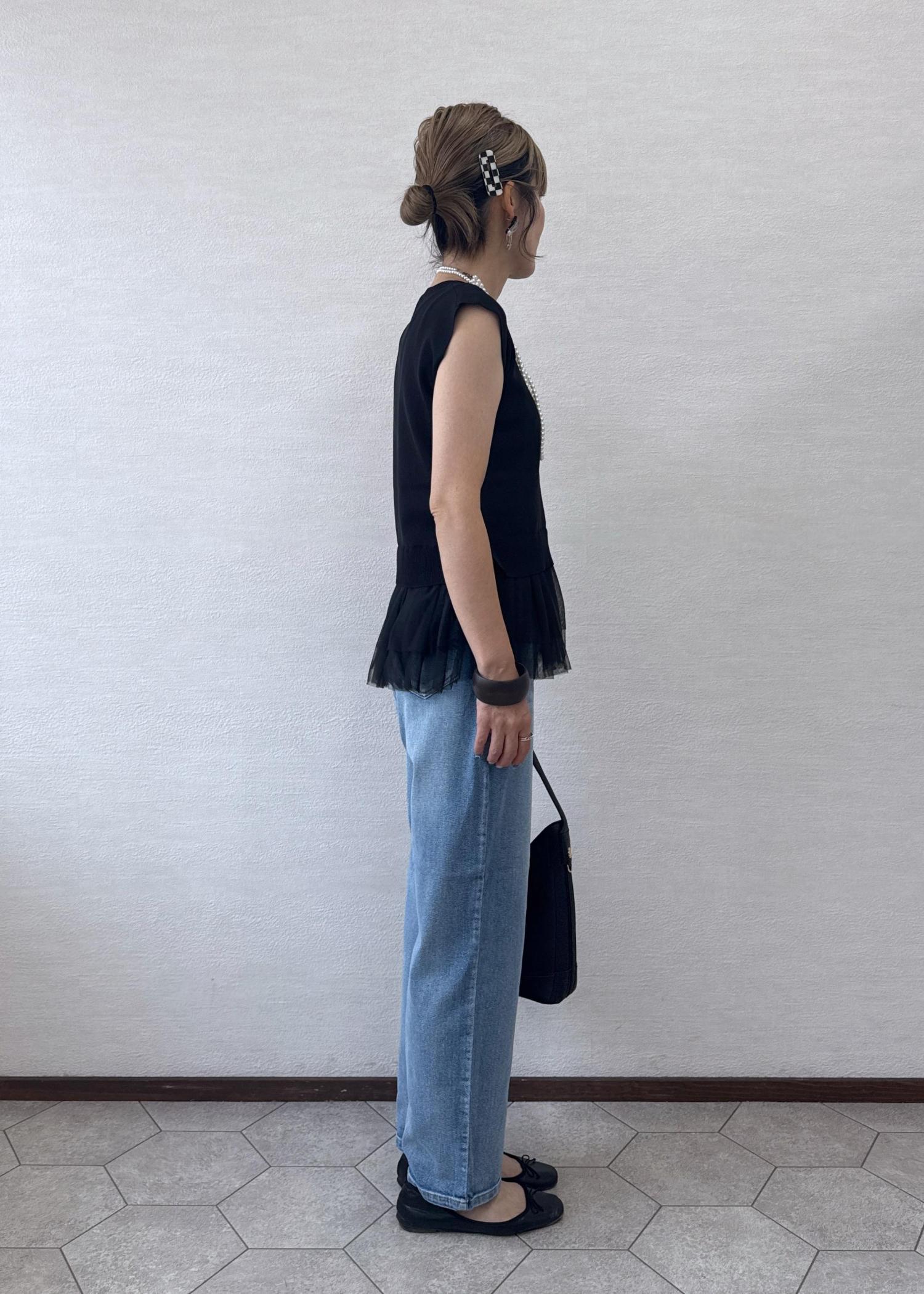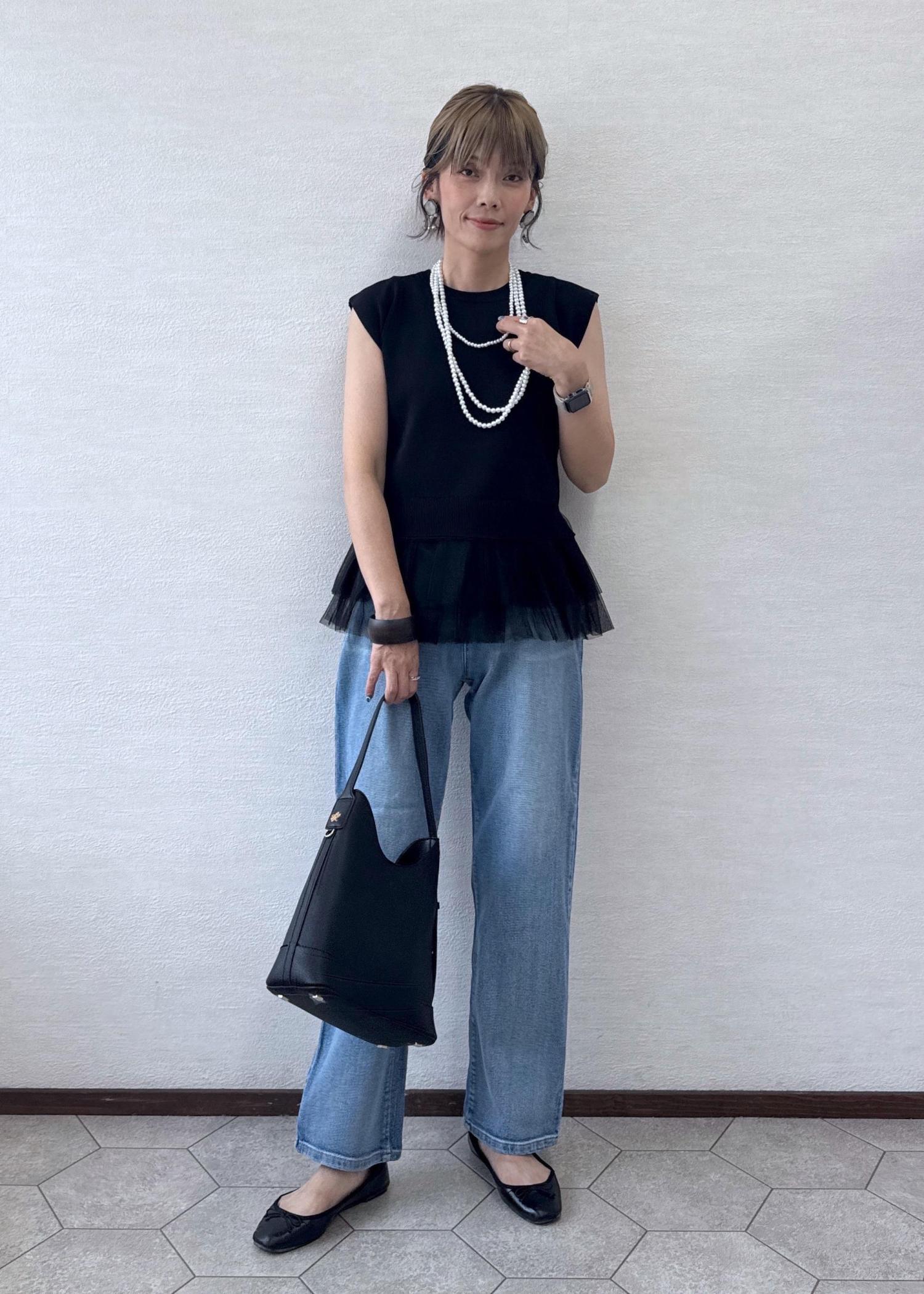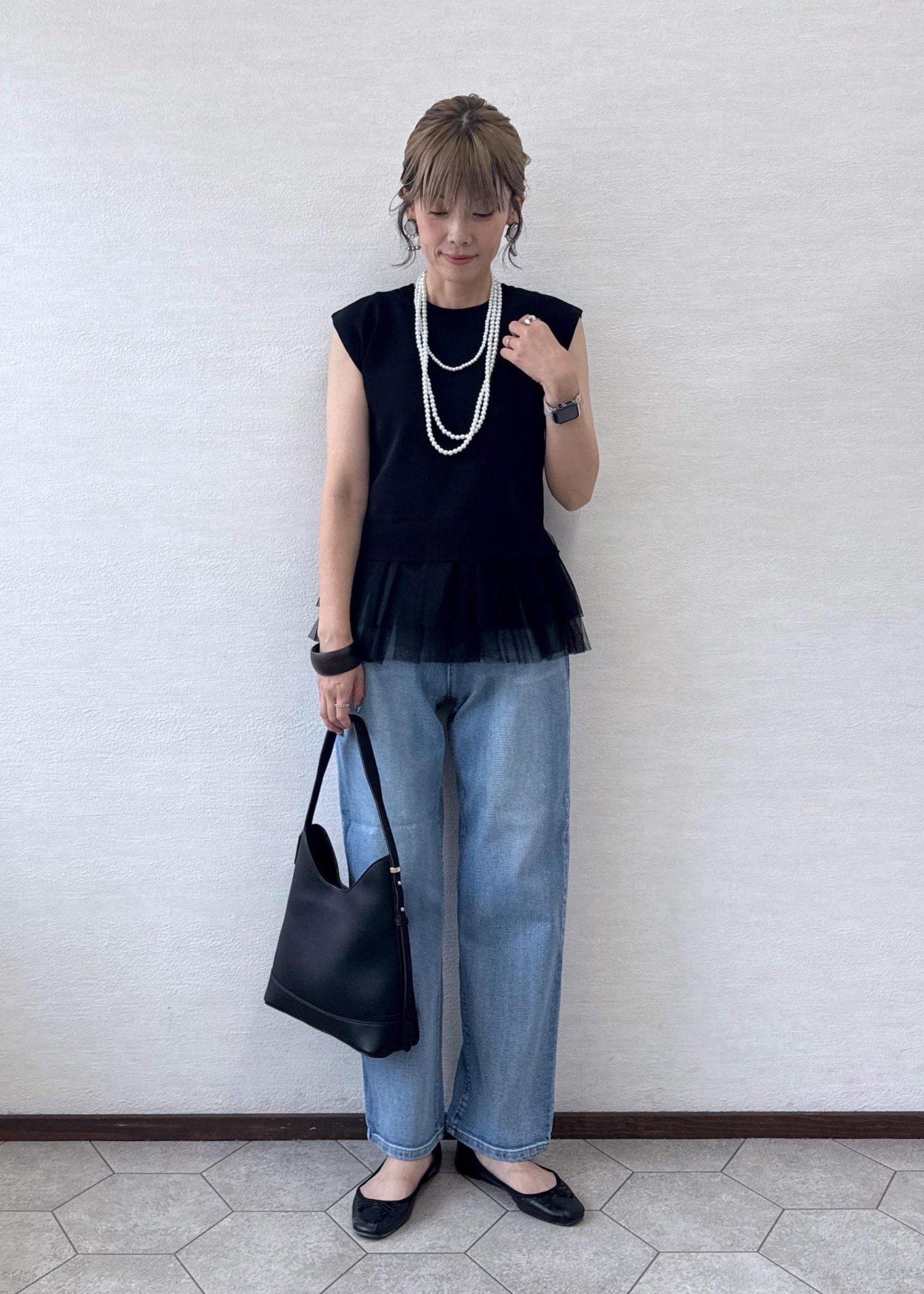 ROPÉ PICNICチュールドッキングプルオーバーブラック / F¥2,992レビューシャリ感のある素材で、夏場でも涼しく着心地がいいです。裾のフリルがポイント。