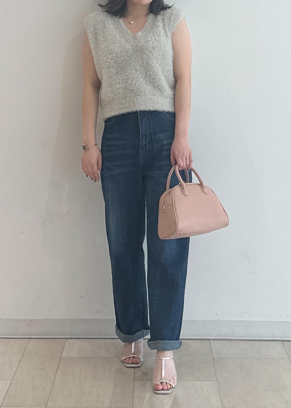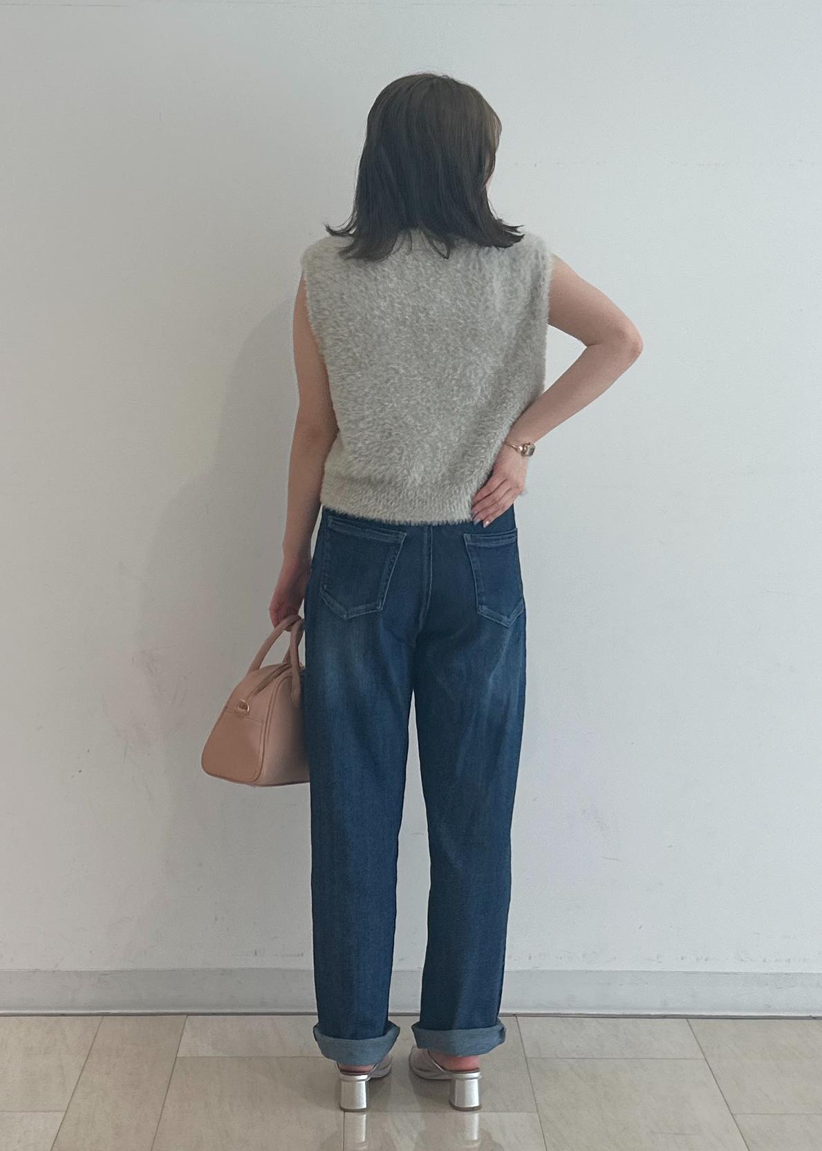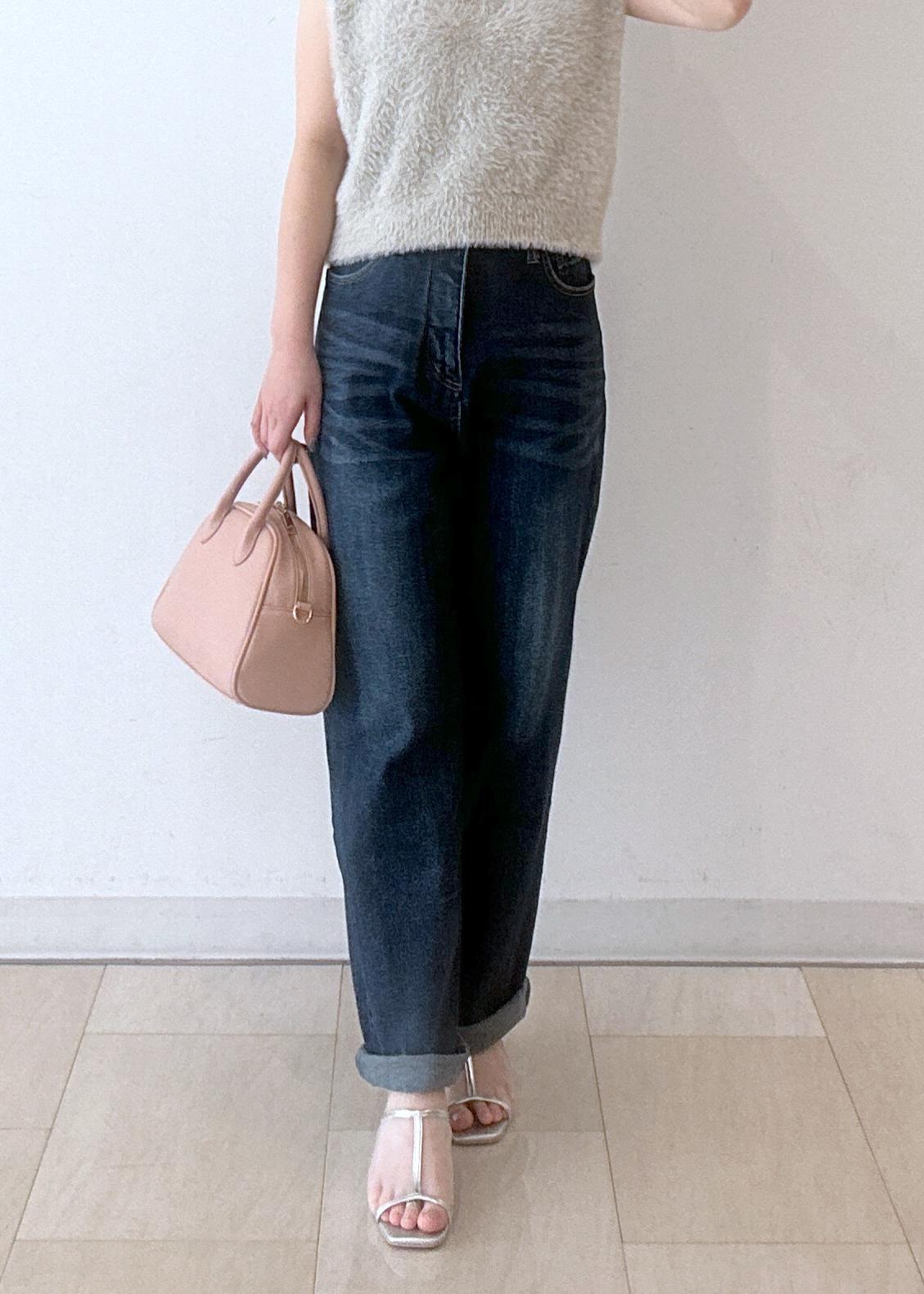 濃いめの色なのであえて裾を折ると抜け感が出て重くならないのでワンサイズ上げてあげるのがオススメです! -