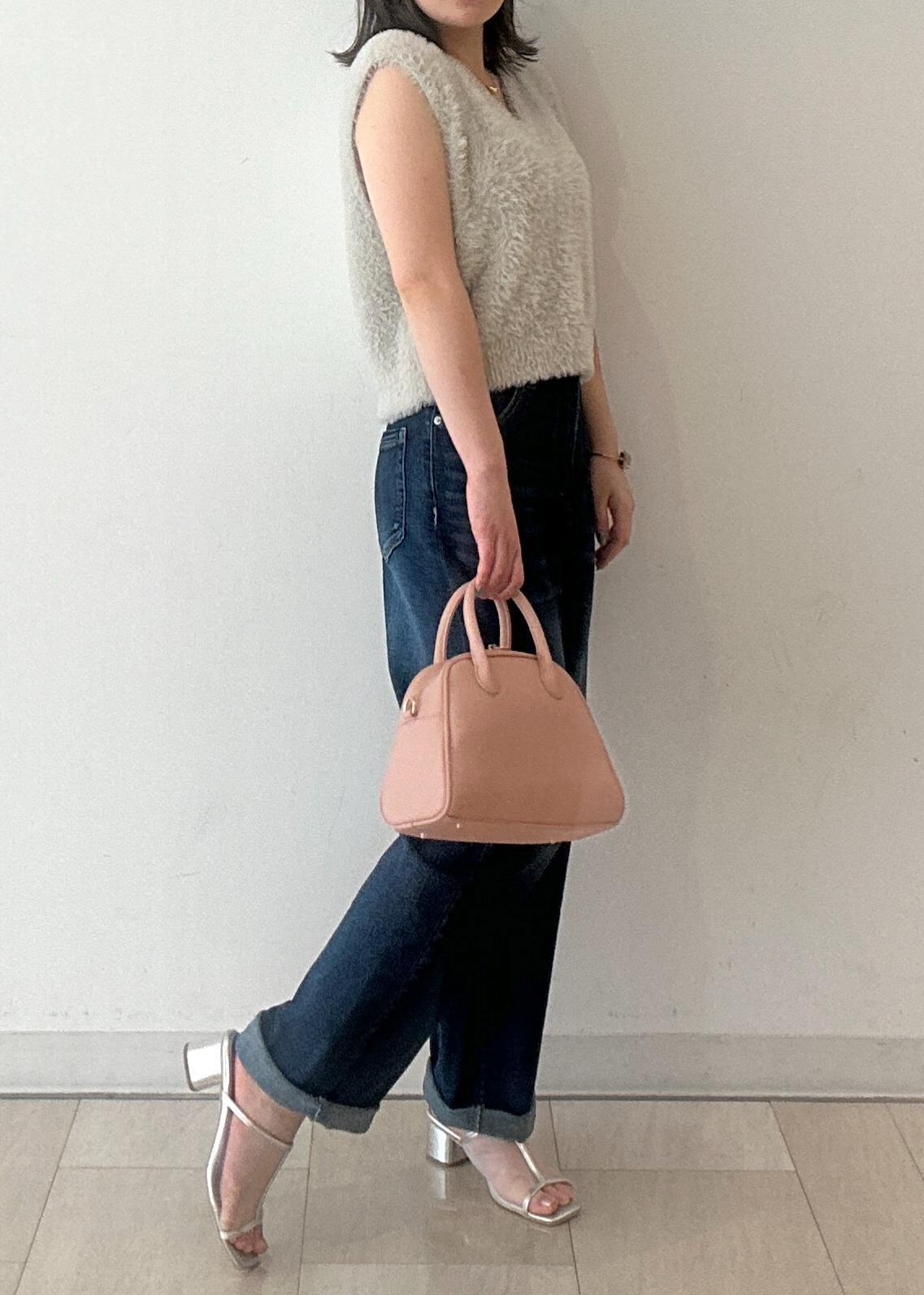 シンプルなコーディネートだけど、ピンクのバッグ合わせでデートにも行ける組み合わせです!