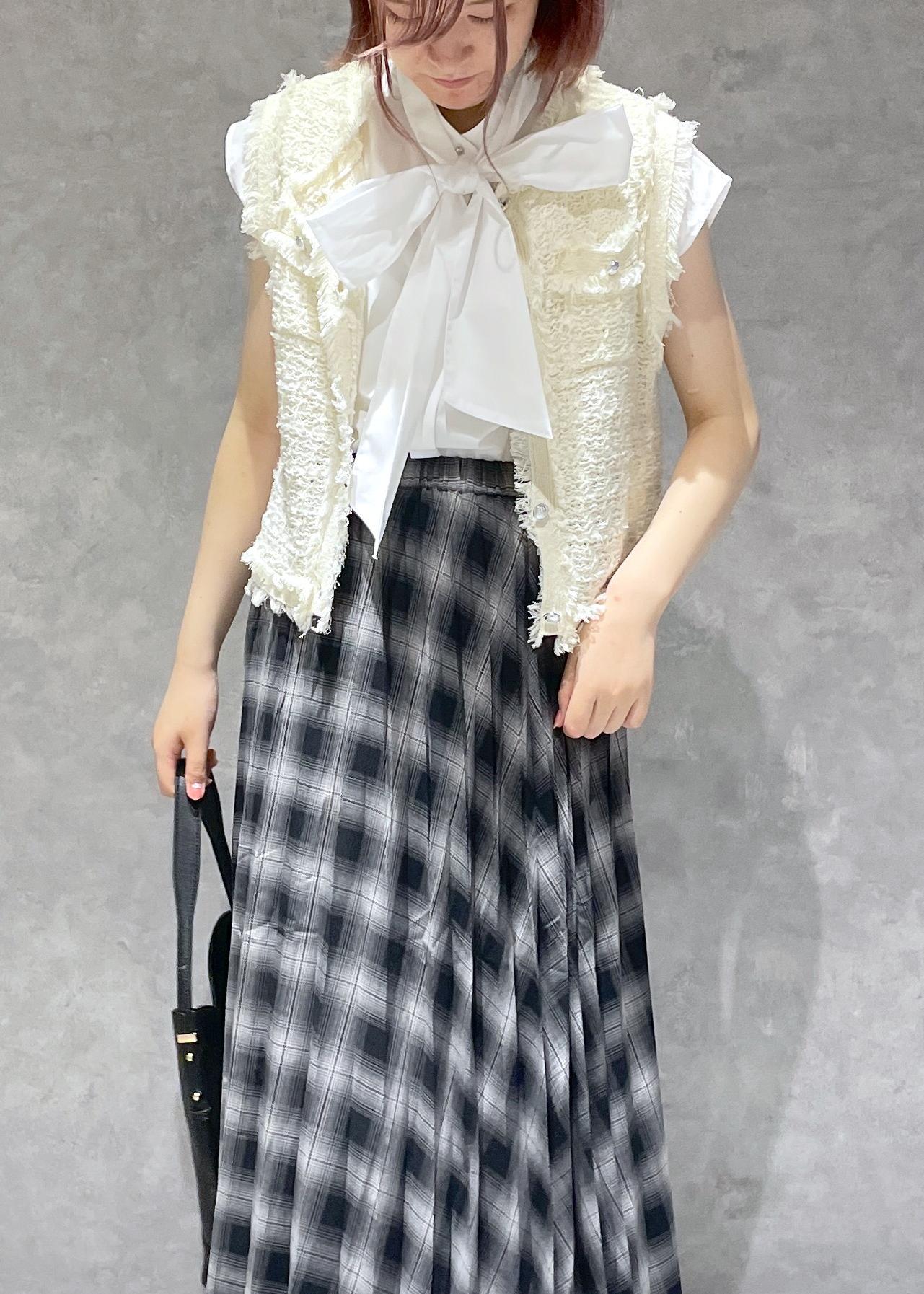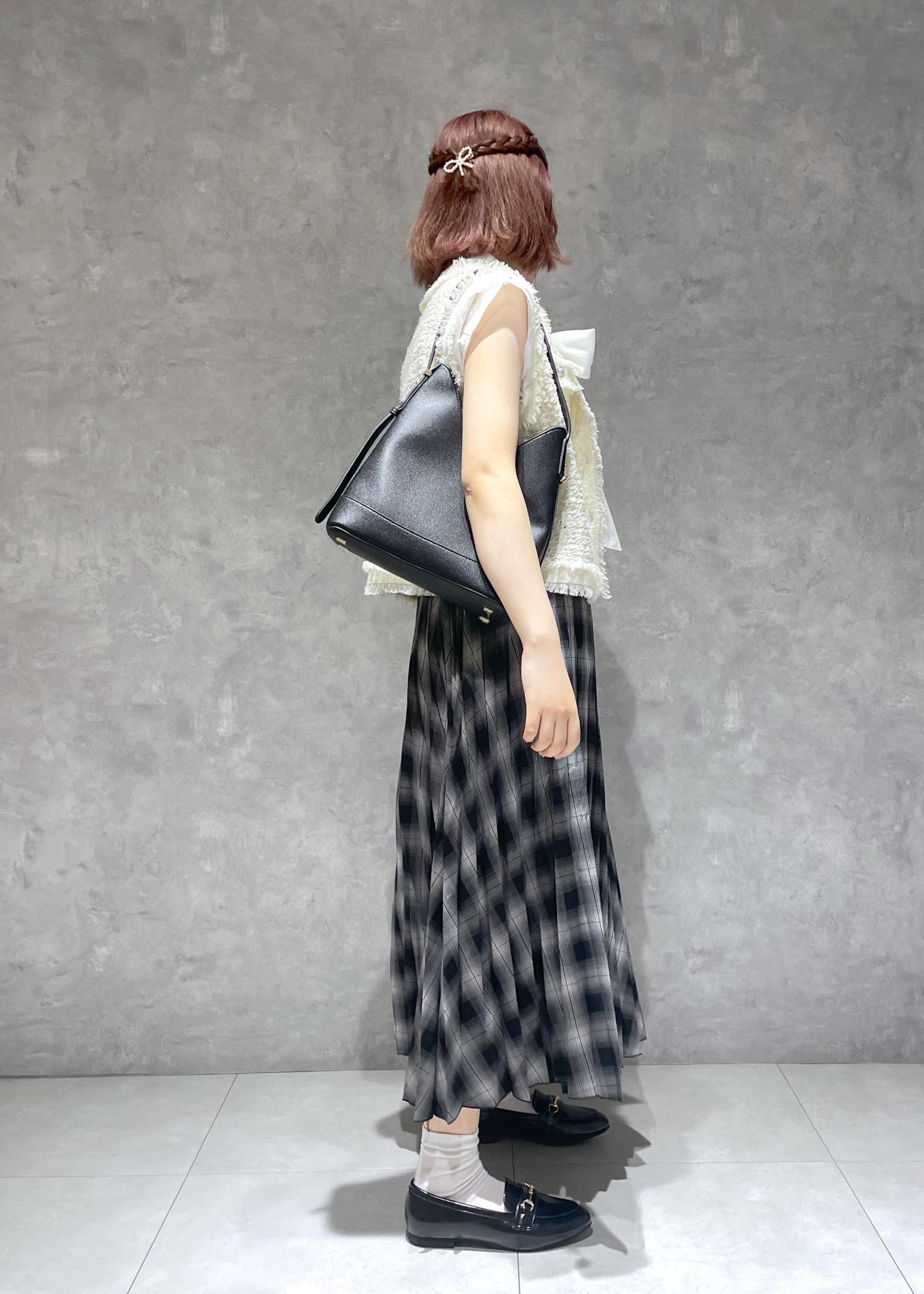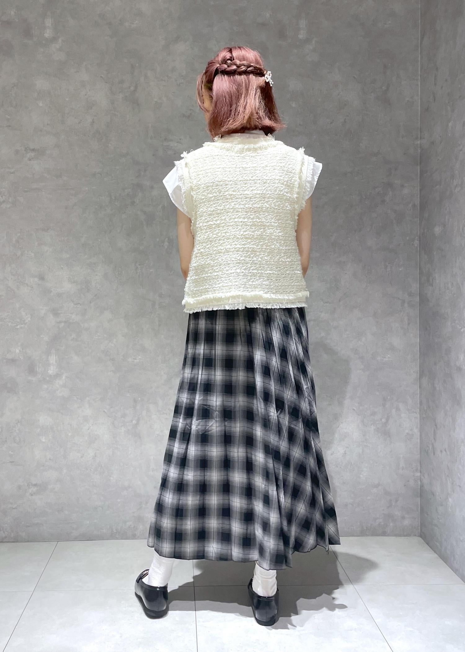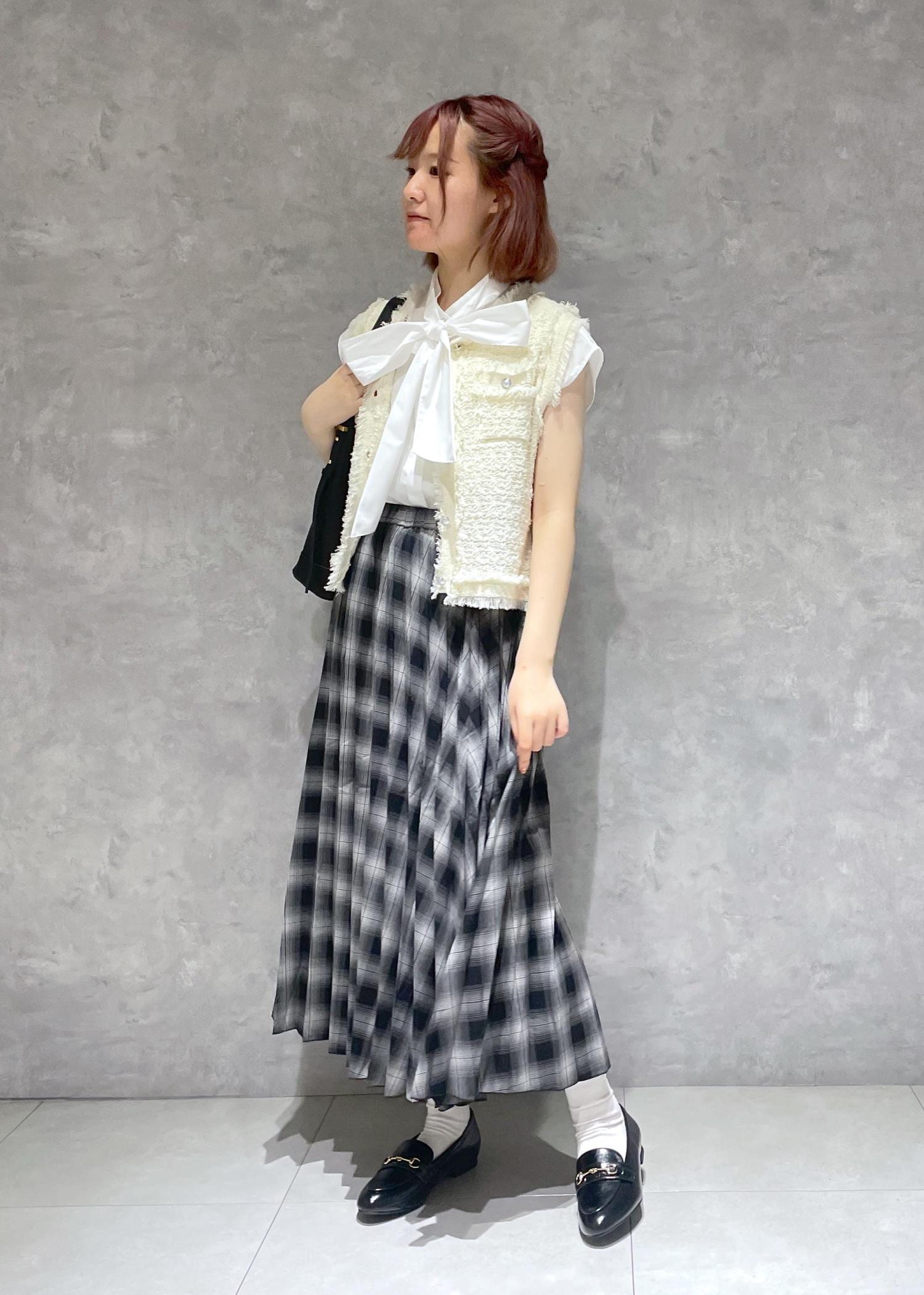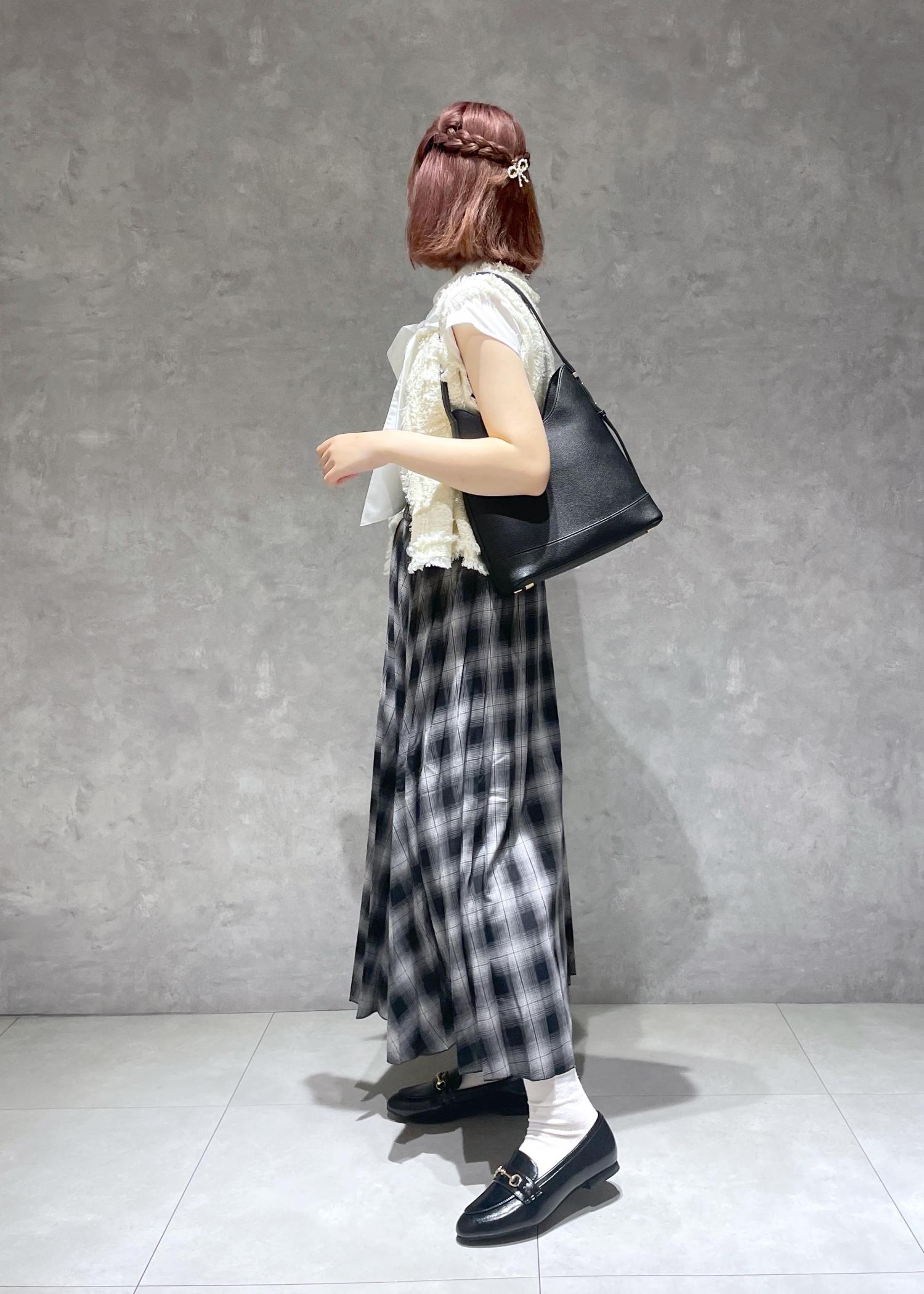 チェックのスカートはTシャツでも、寒くなってきたらニットで合わせても可愛く仕上がります!