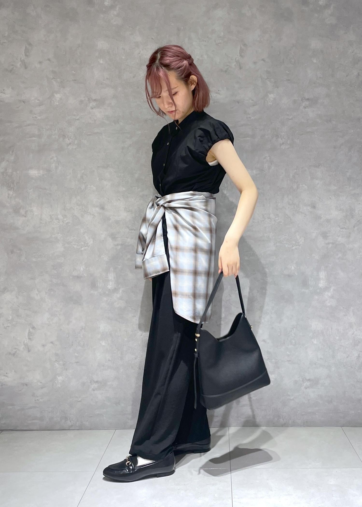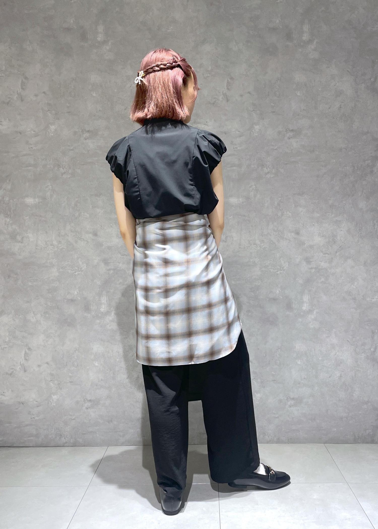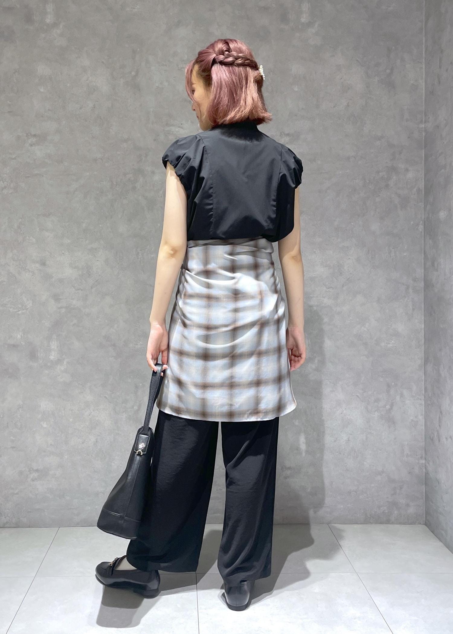 ワントーンカラー+チェックアイテムの相性が抜群でオシャレ度をより演出できます!