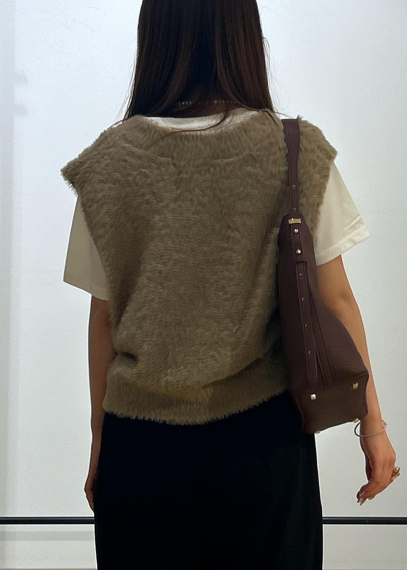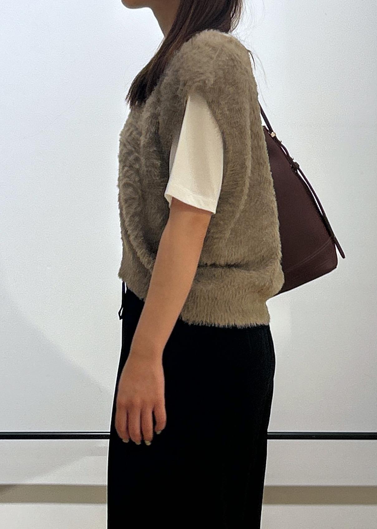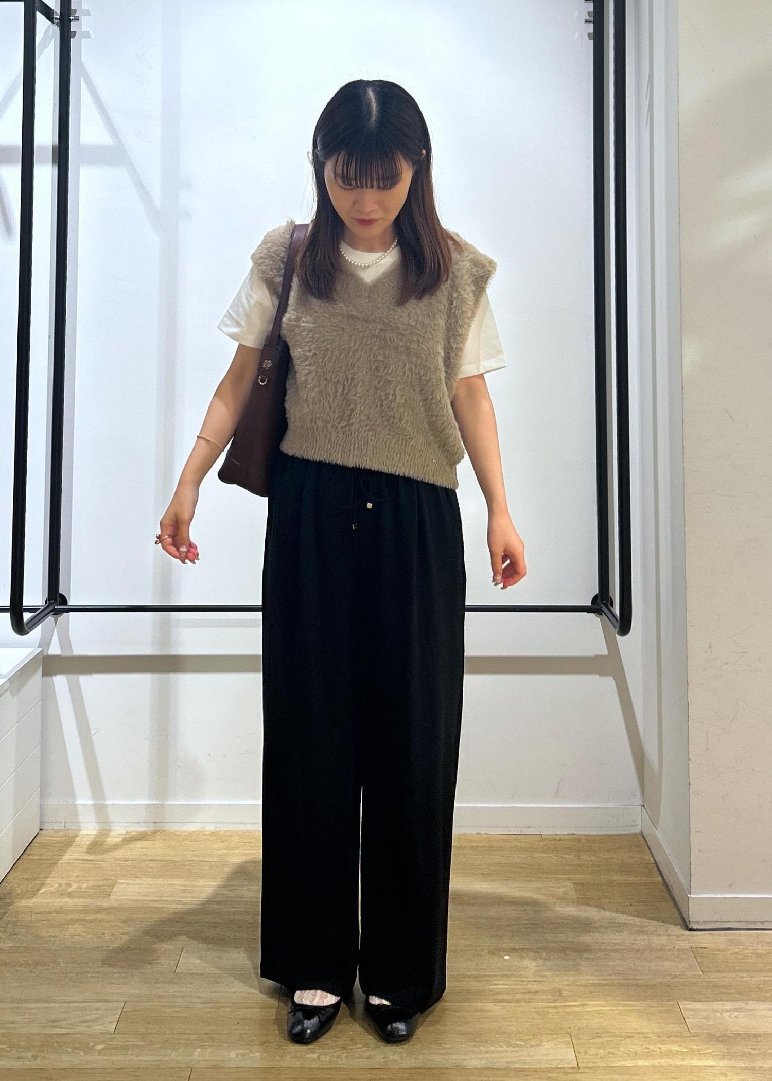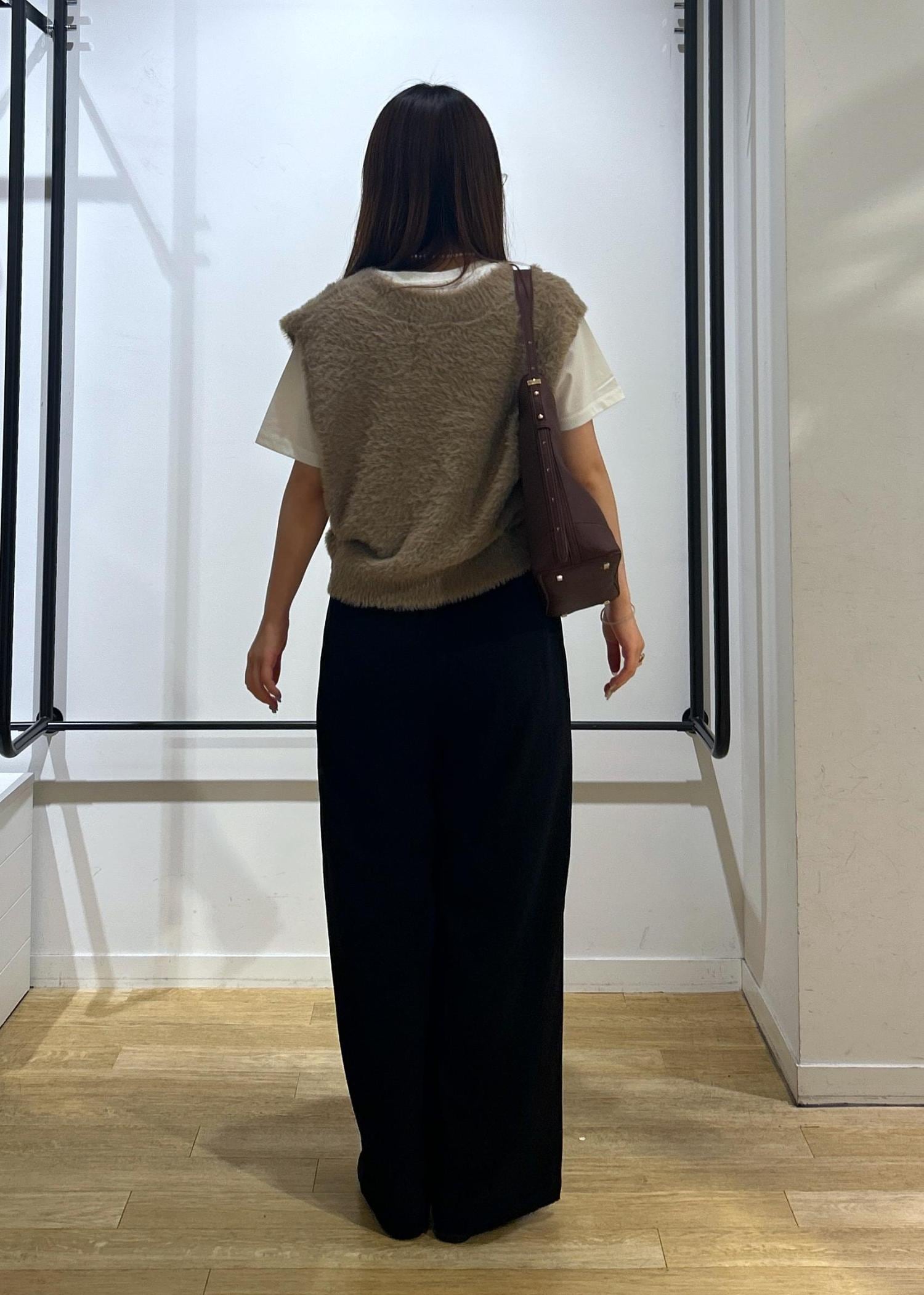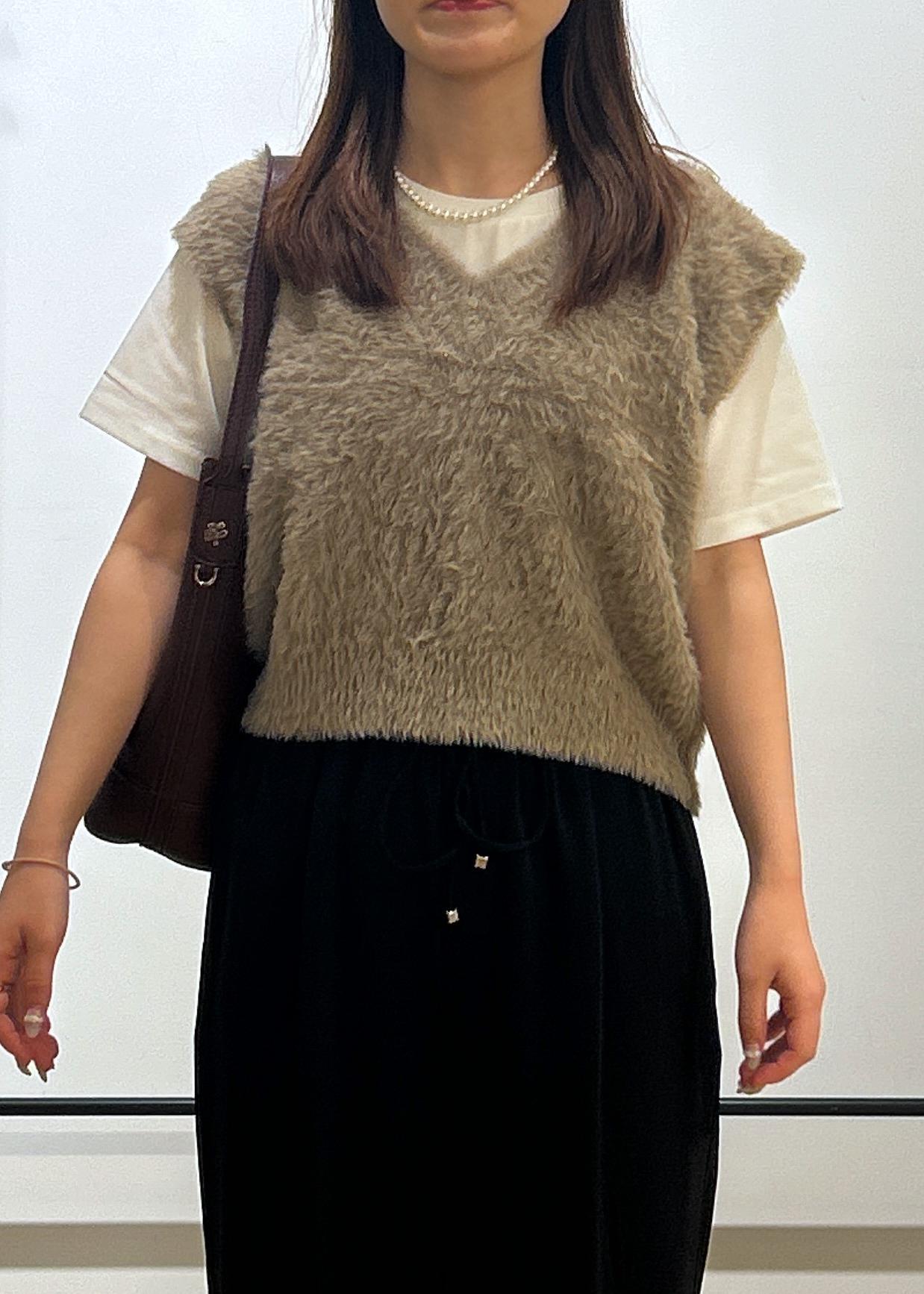 ニットベストはゆったりとしたサイズ感で厚すぎず、半袖Tシャツとの合わせや1枚着としてもお召し頂けます◎